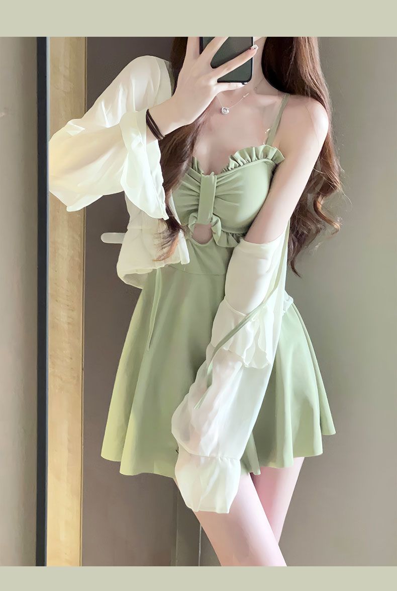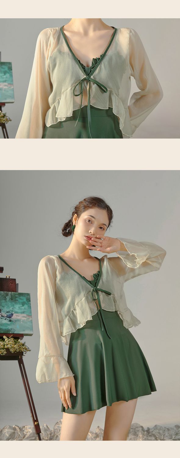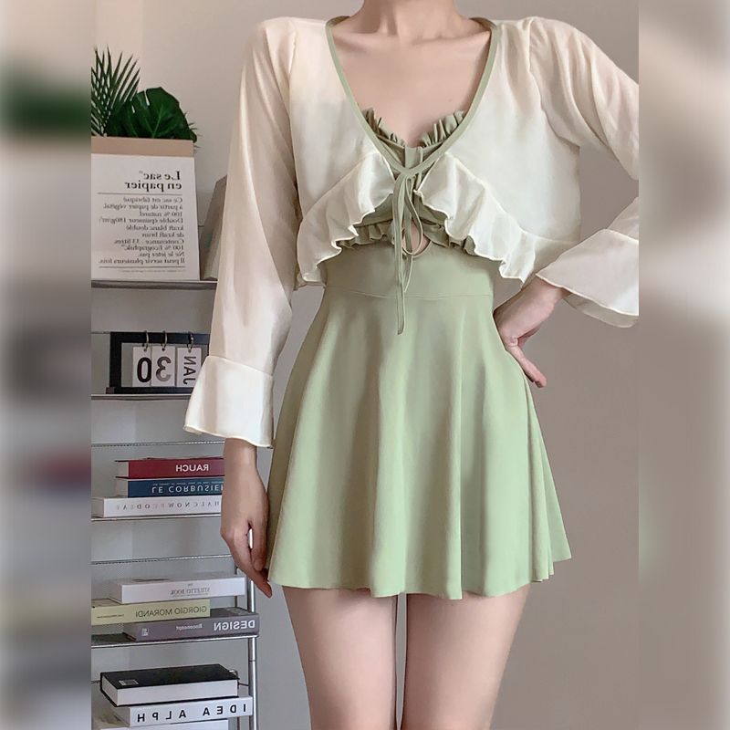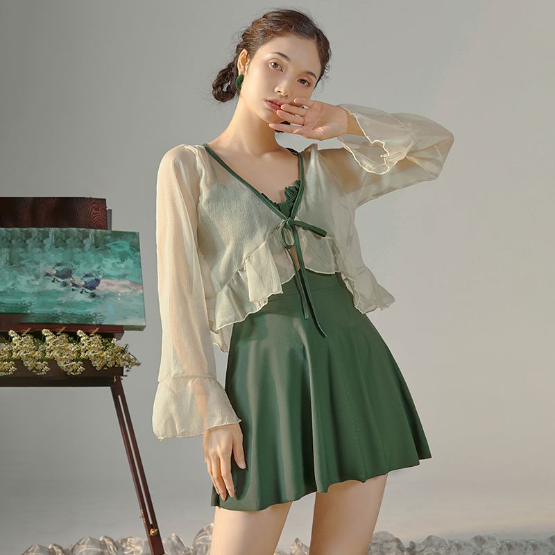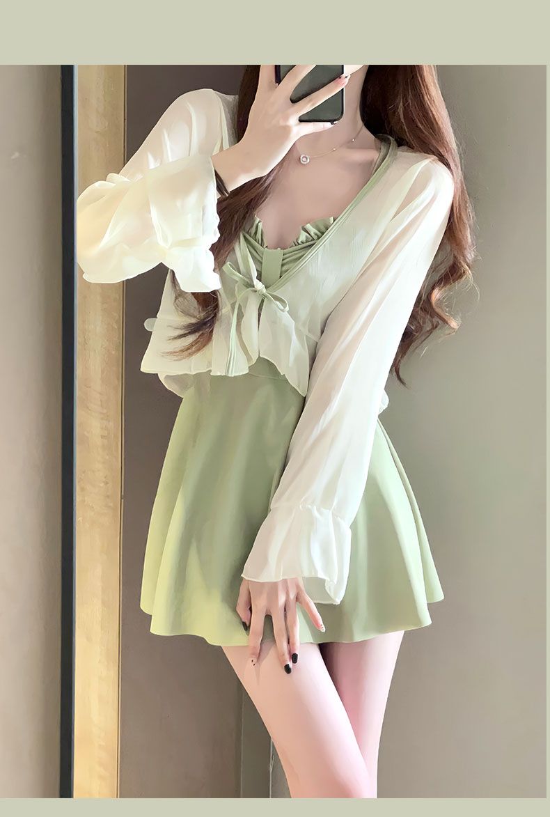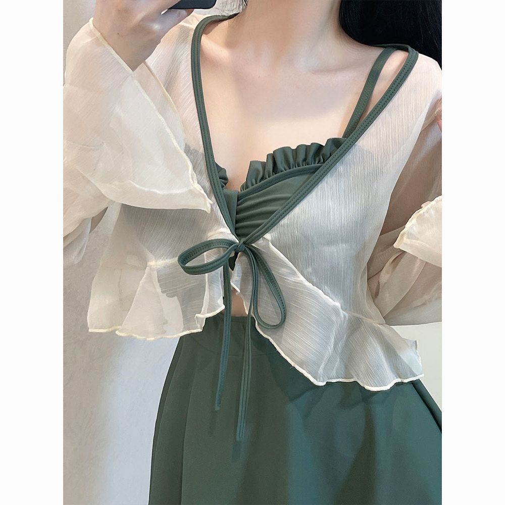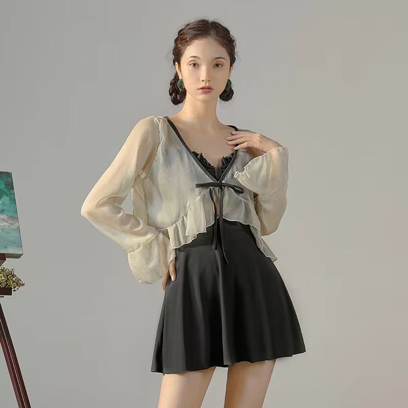 超仙游泳衣女连体夏长袖防晒温泉遮肚显瘦遮肉罩衫年轻漂亮洋气装