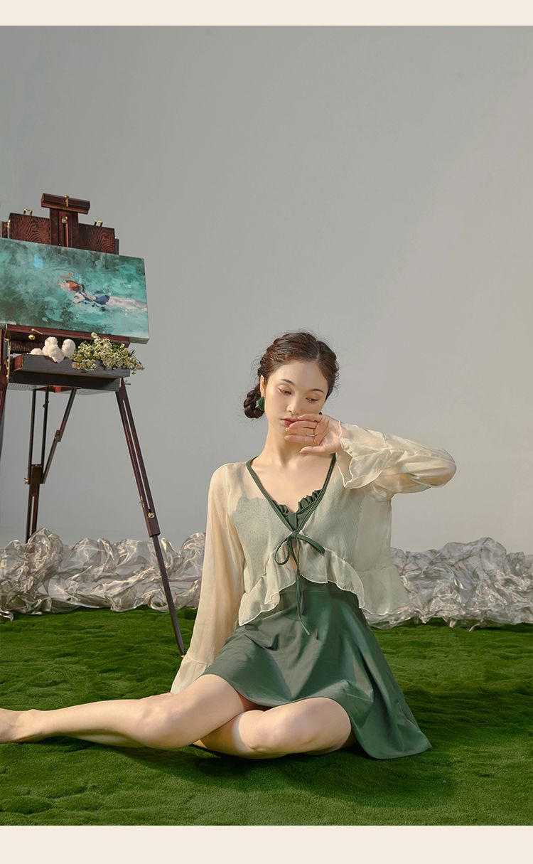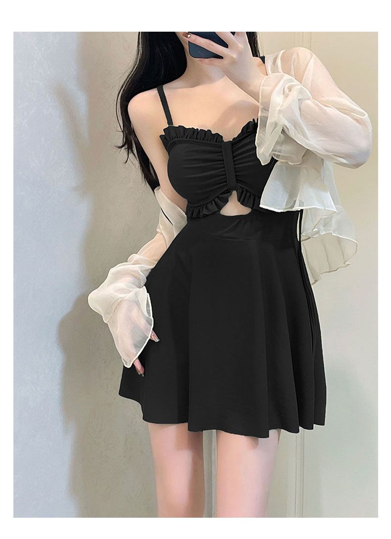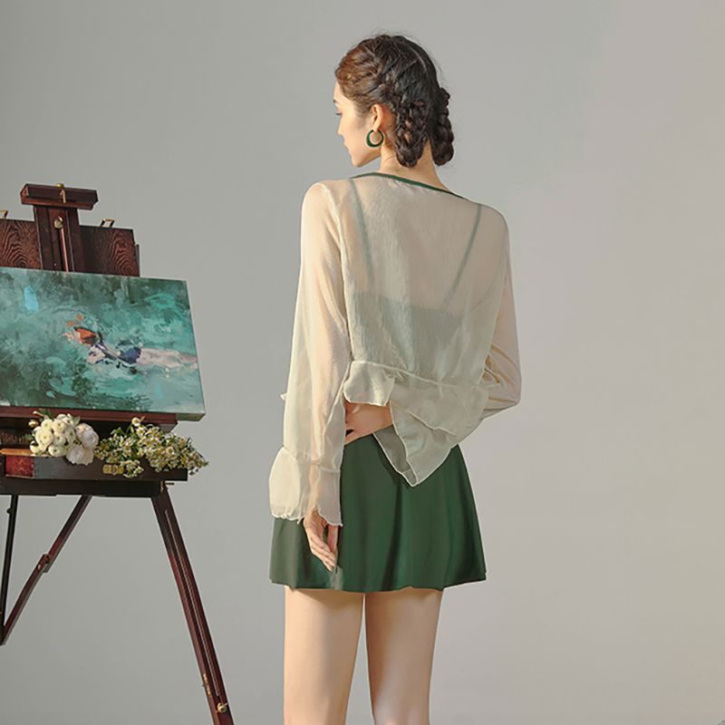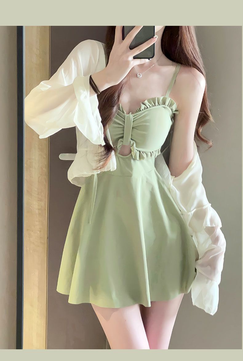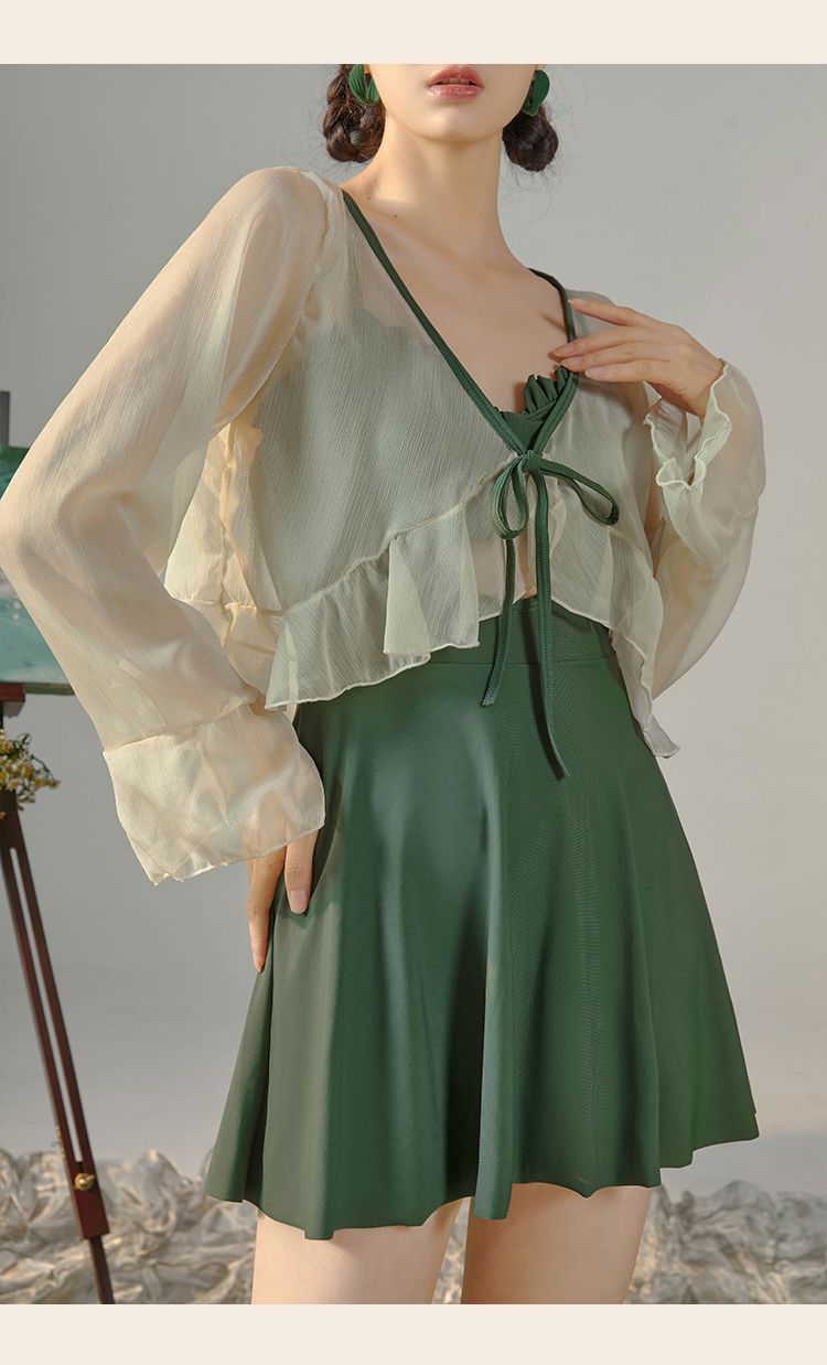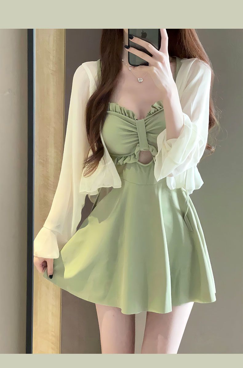 超仙游泳衣女连体夏长袖防晒温泉遮肚显瘦遮肉罩衫年轻漂亮洋气装