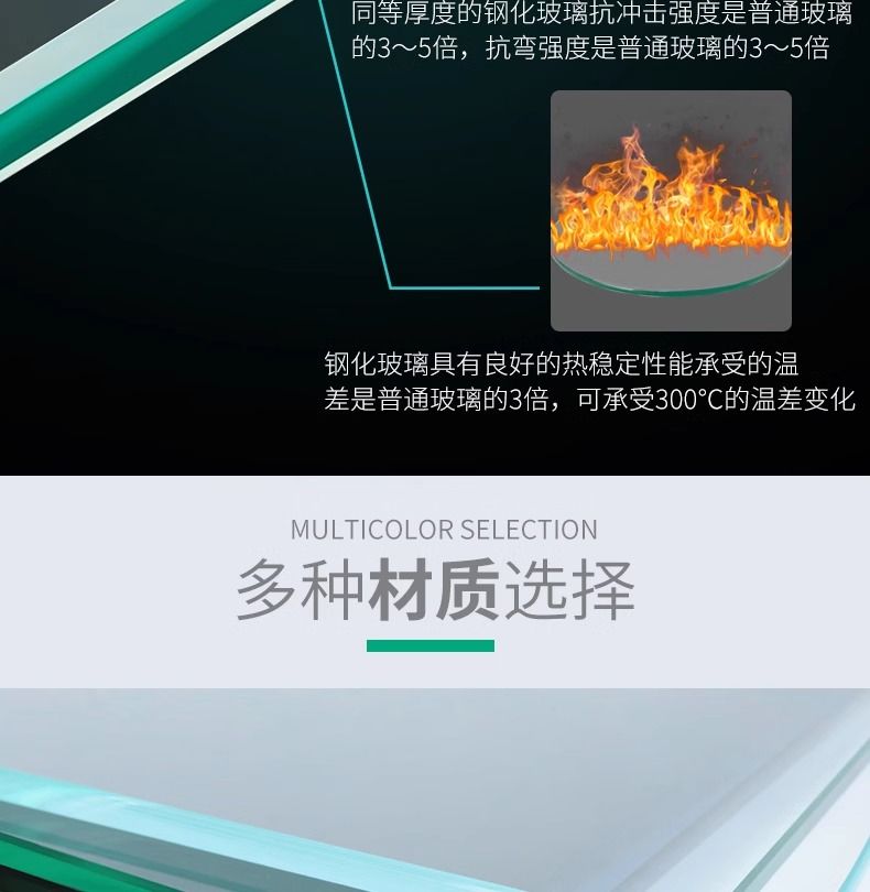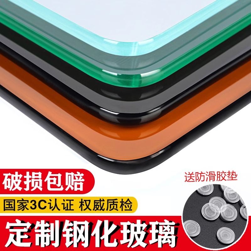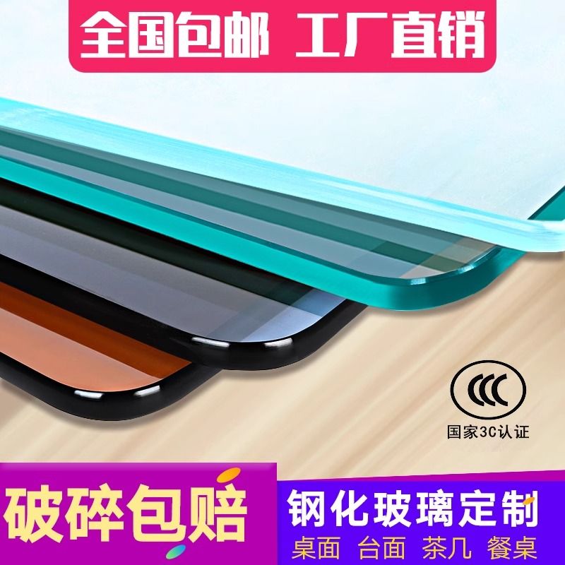 钢化玻璃桌面圆形折叠餐桌长方形茶桌茶几方形玻璃面耐热现货秒发