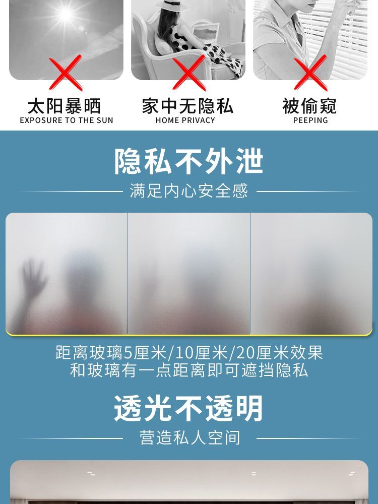 窗户磨砂玻璃贴纸透光不透人卫生间浴室防窥视遮走光不透明自粘膜