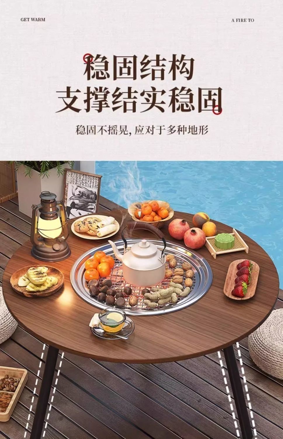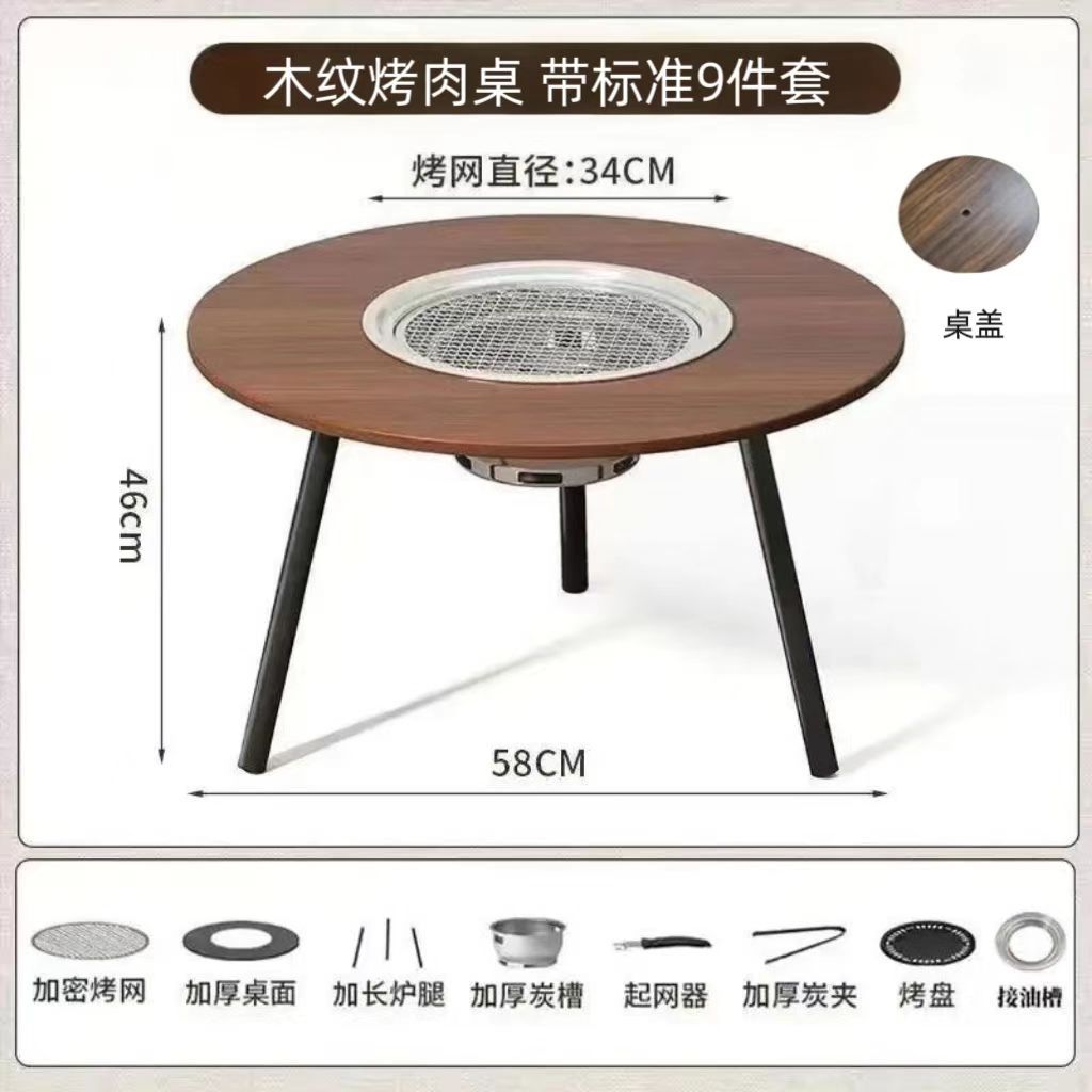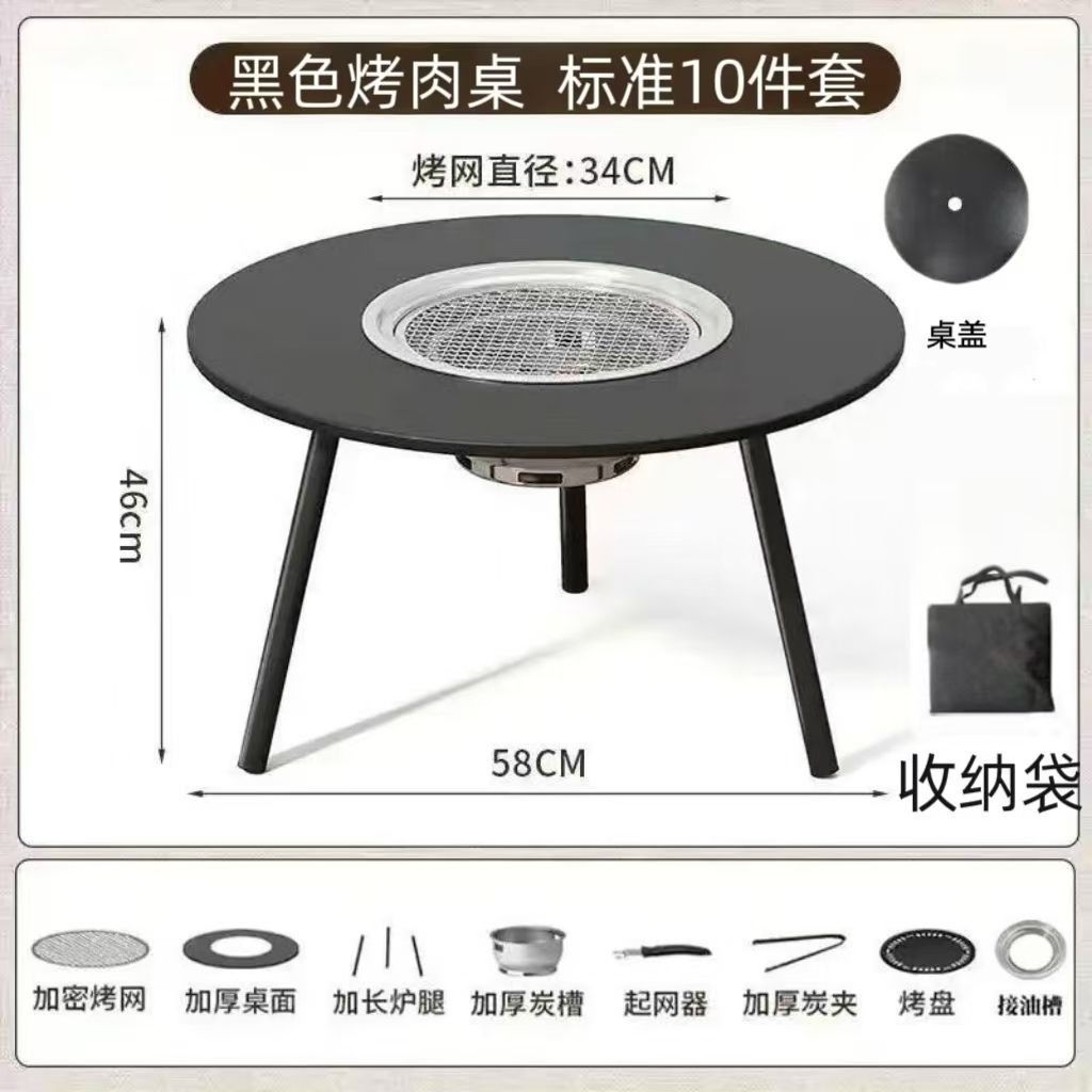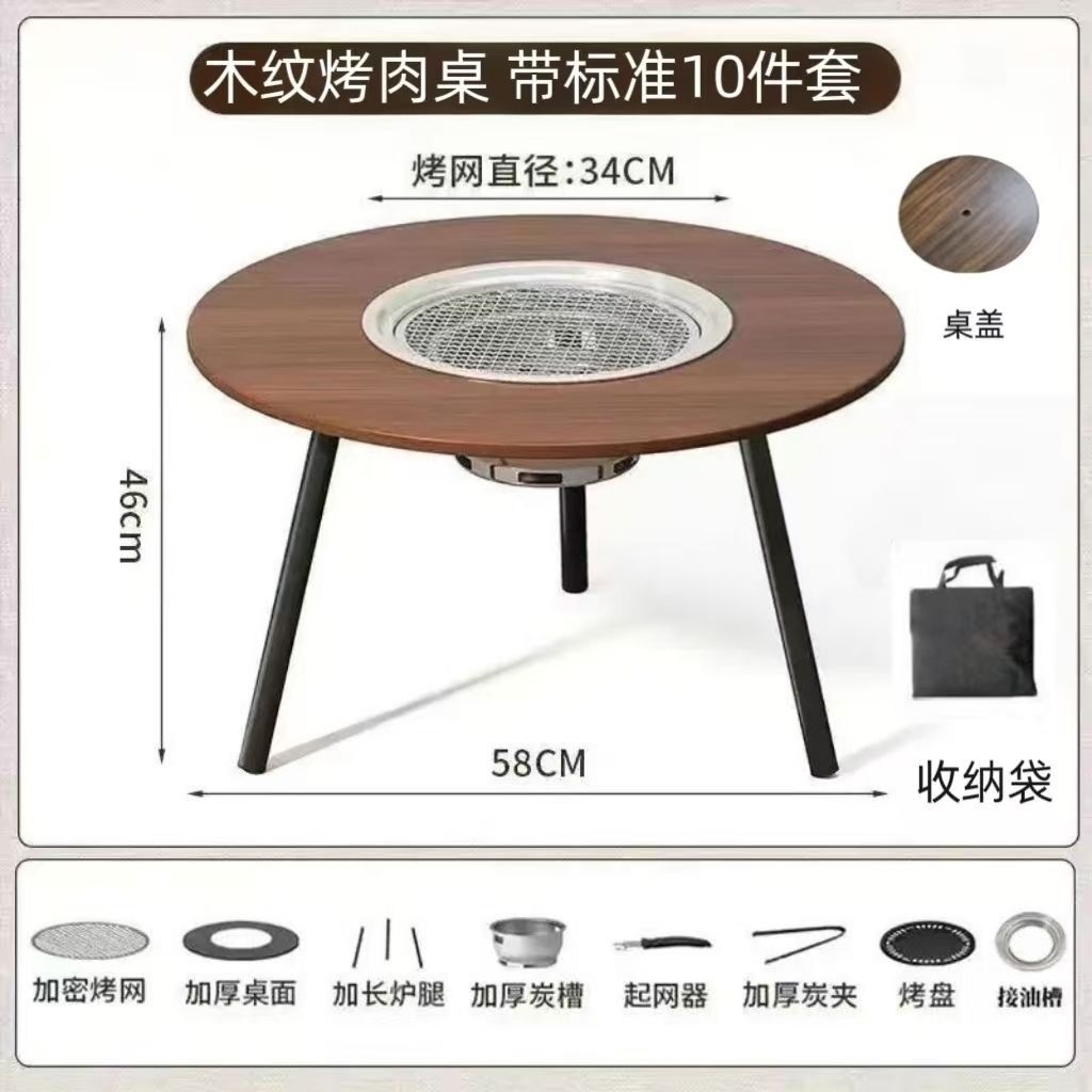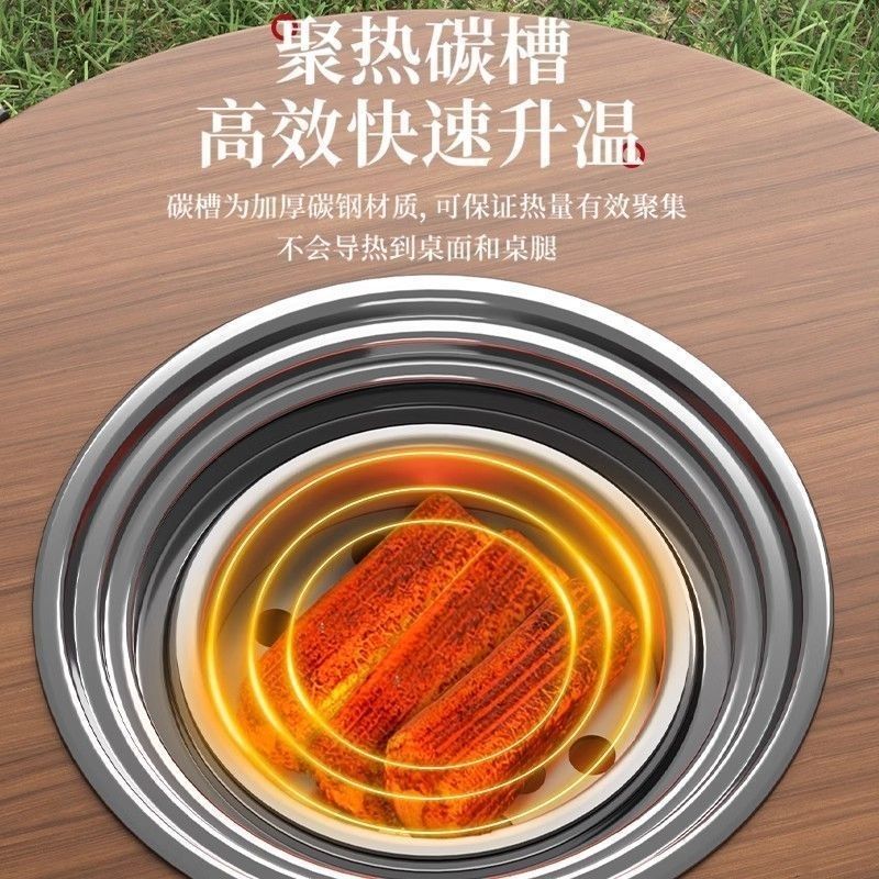 冬季专用围炉煮茶桌烧烤桌多功能户外烤肉桌便携可折叠露营野炊桌