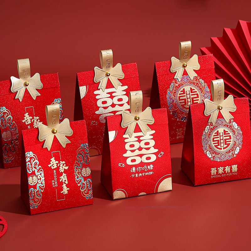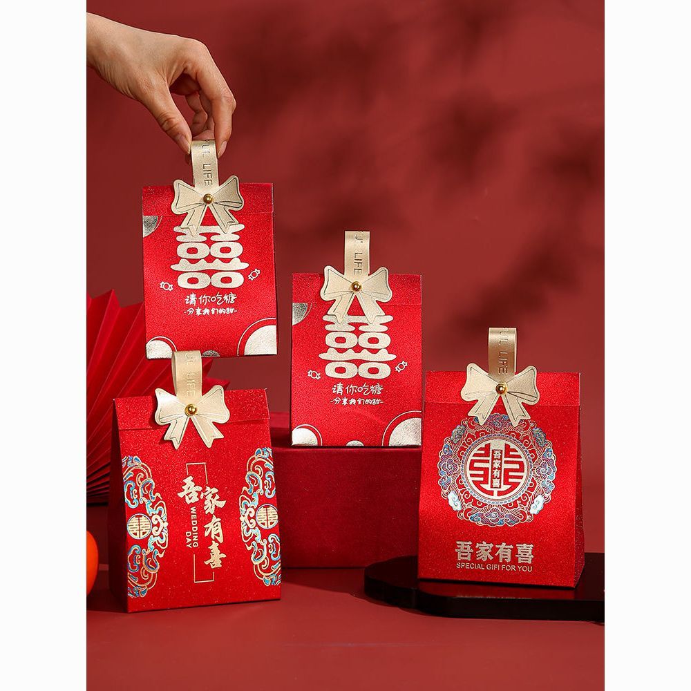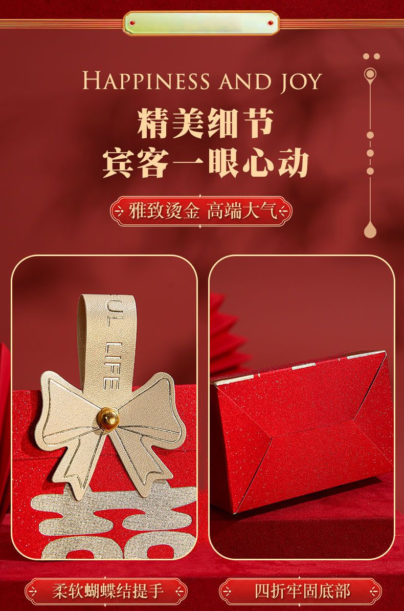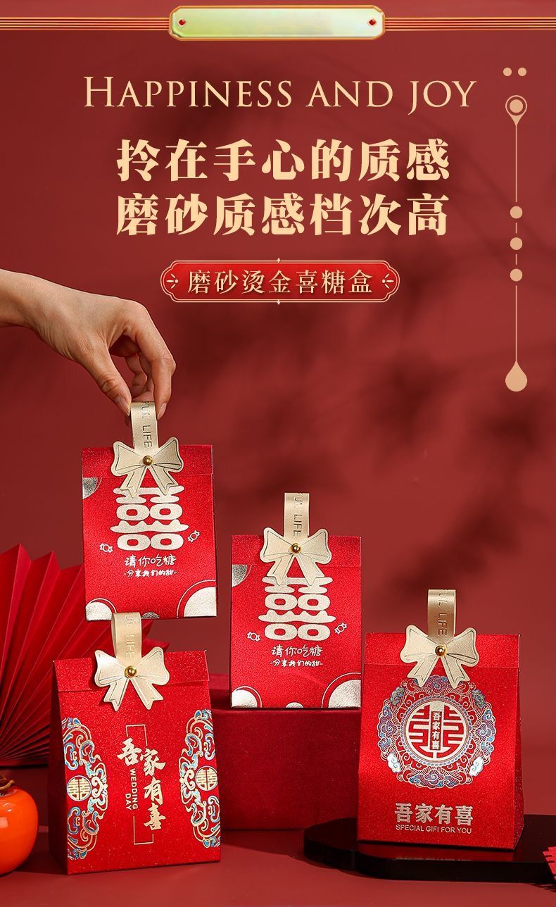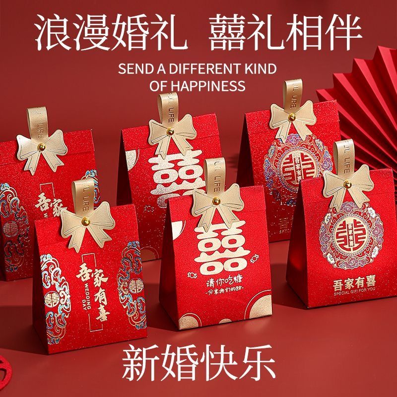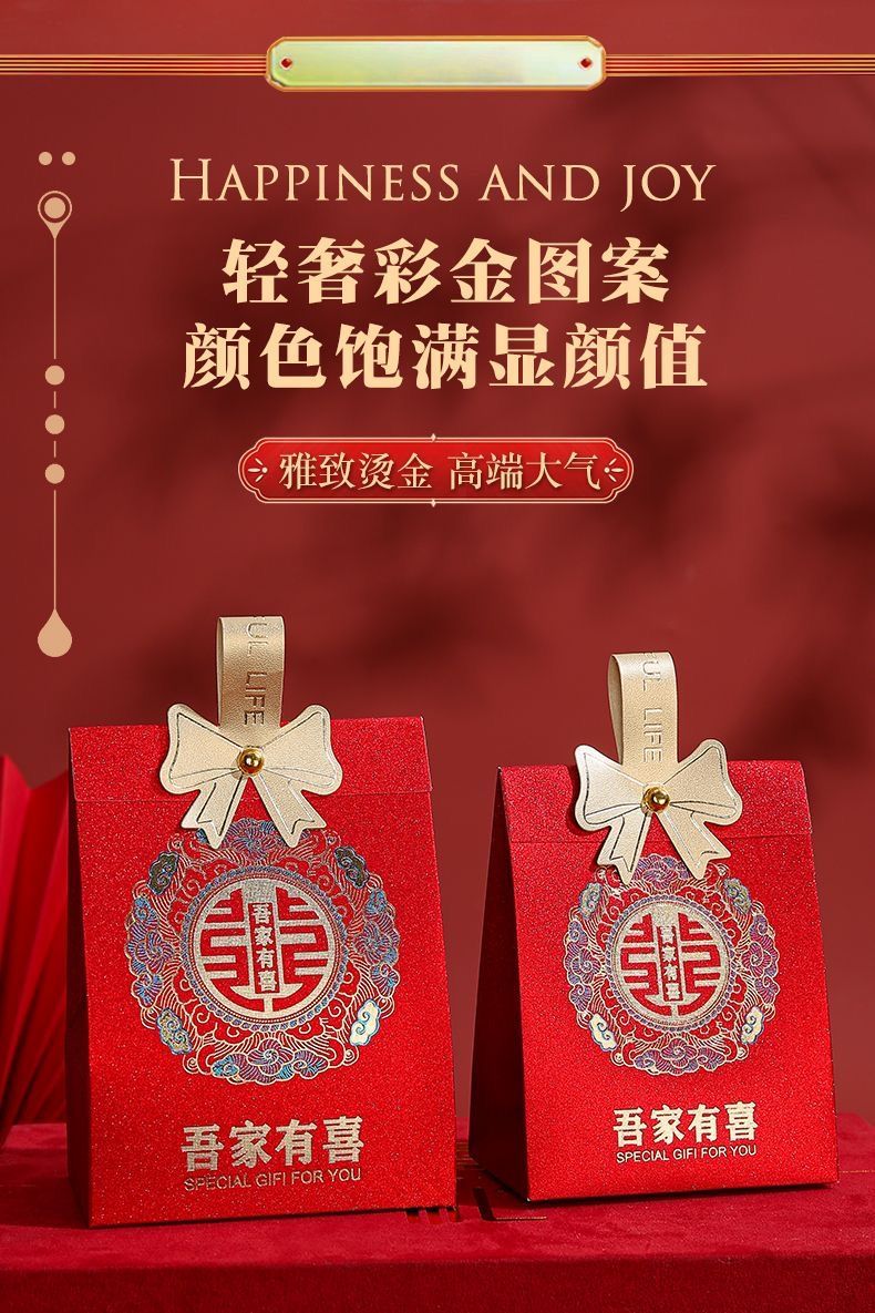 新磨砂中式伴手礼喜糖袋新款回礼盒创意婚礼订婚结婚手提喜糖盒子
