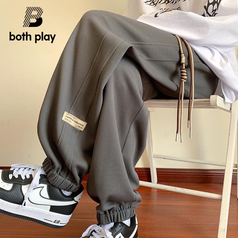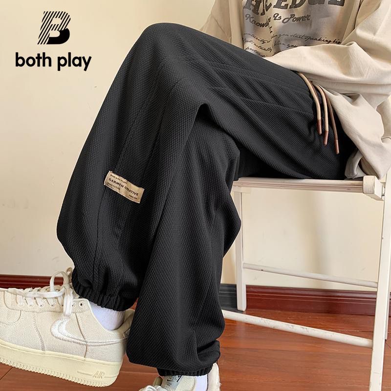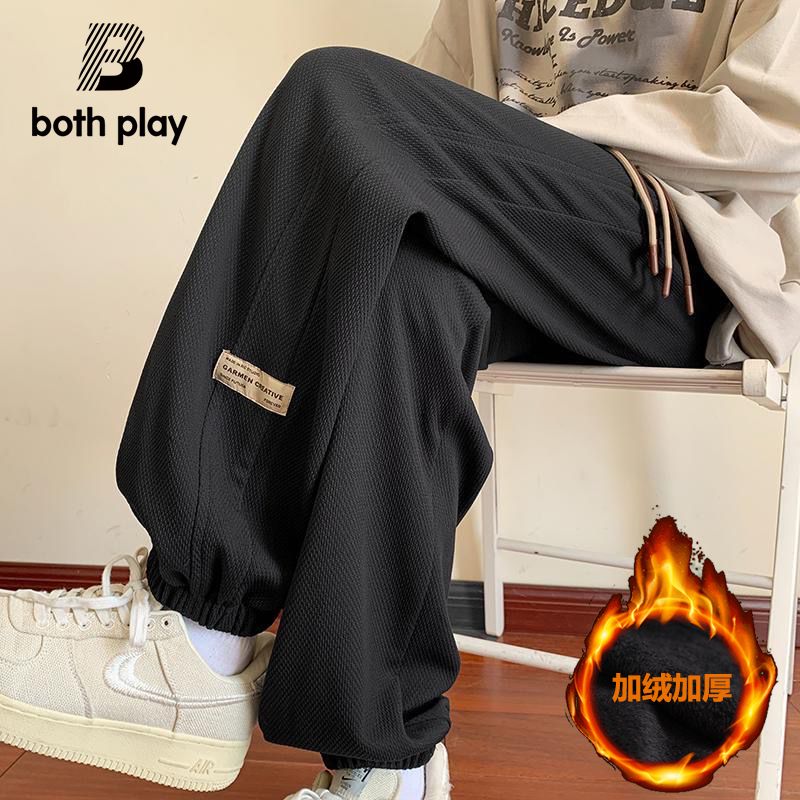 BOTH PLAY加绒加厚裤子男秋冬男士束脚长裤百搭斜纹宽松运动裤