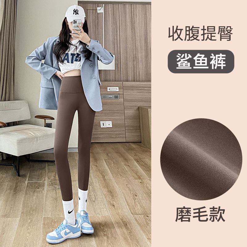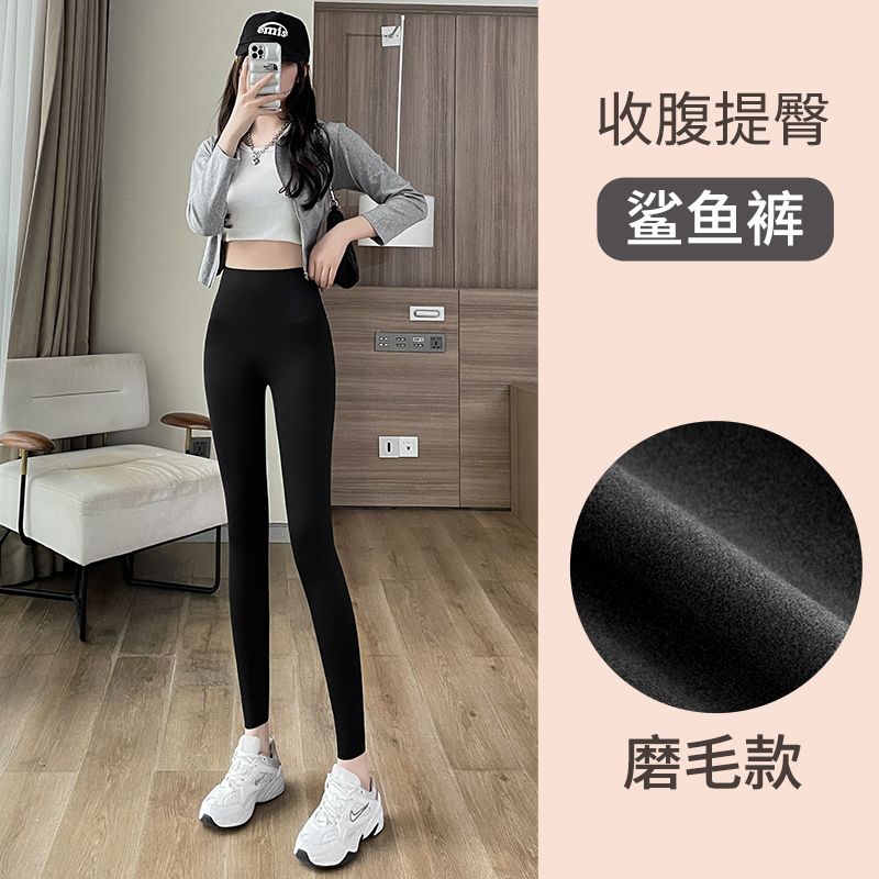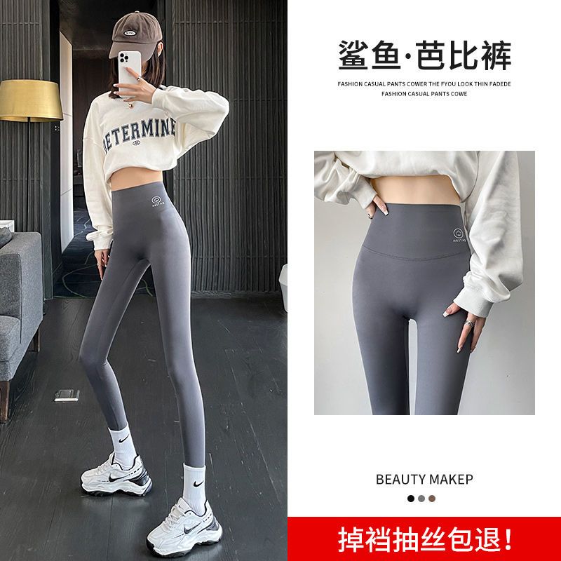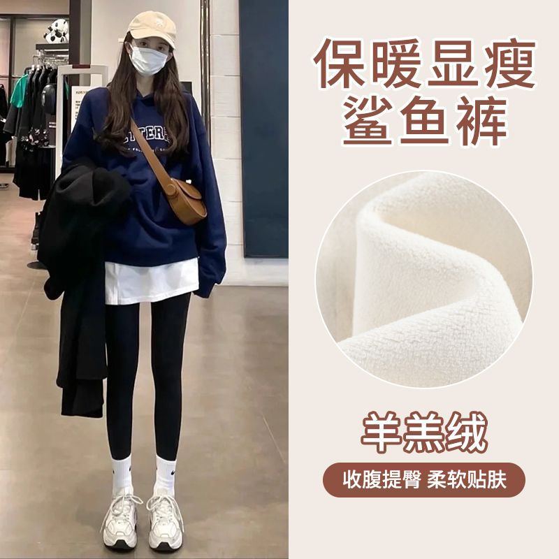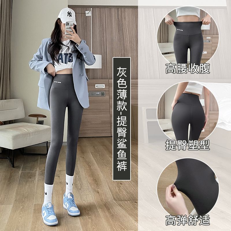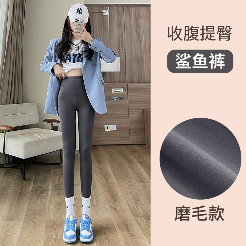 灰色鲨鱼裤女外穿加绒高腰沙鱼打底裤秋冬季加厚鱼鲨芭比裤春秋款