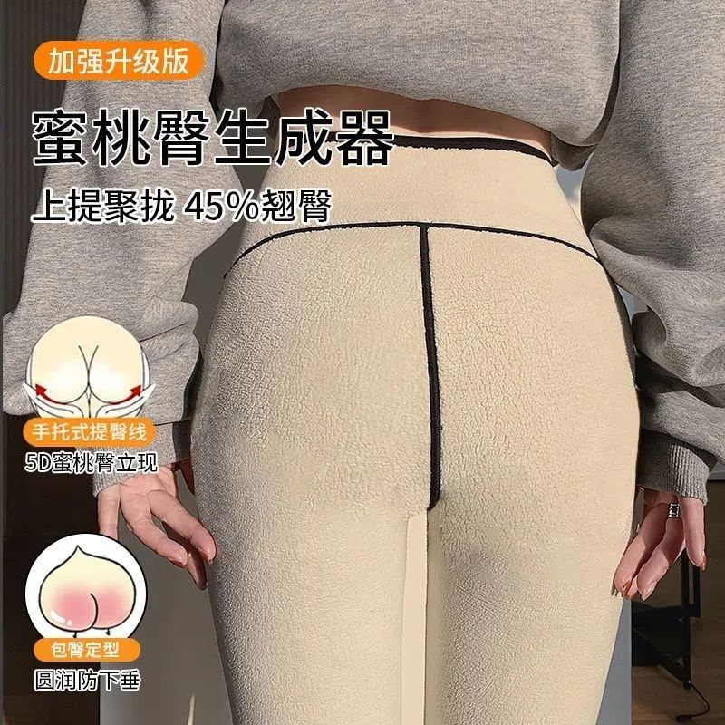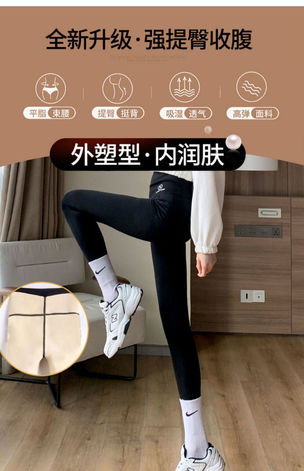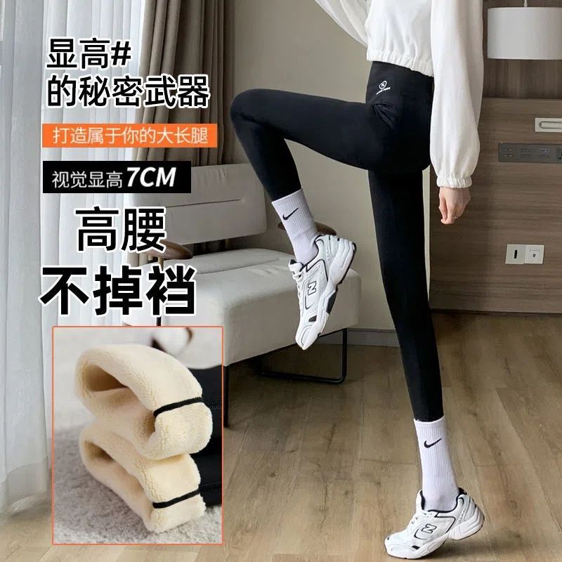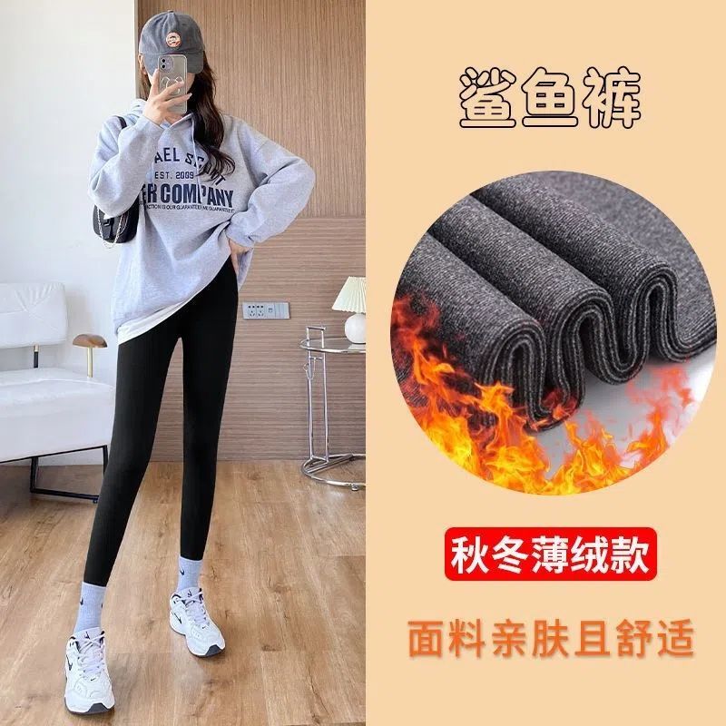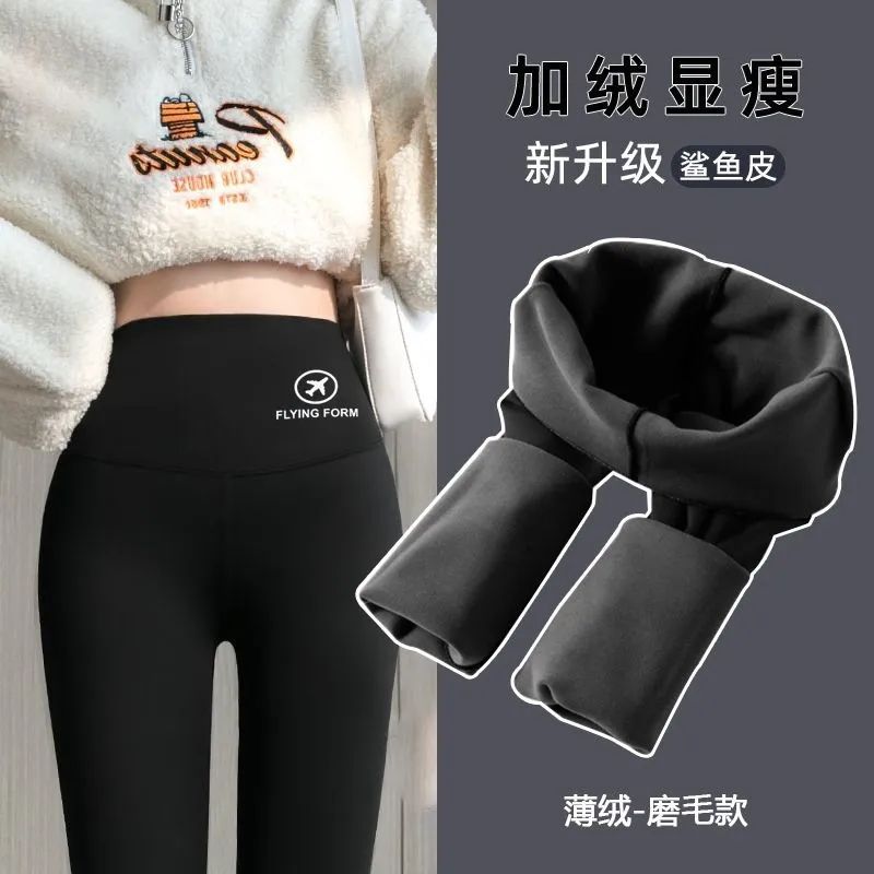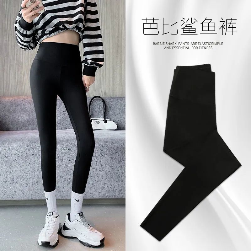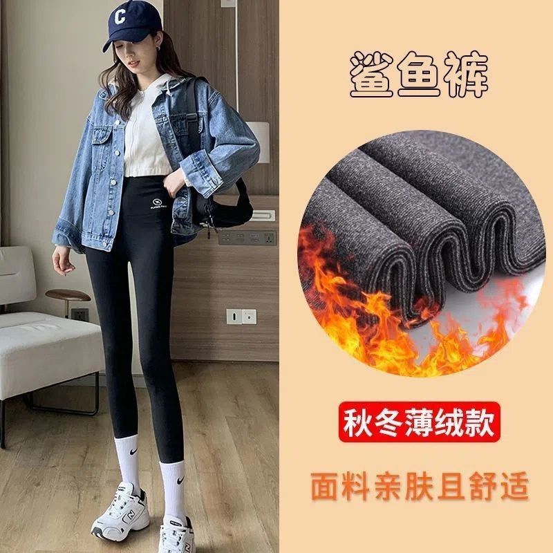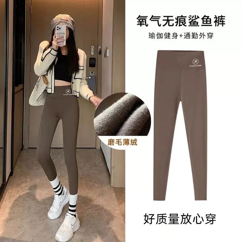 加绒鲨鱼裤女外穿薄绒高腰芭比瑜伽裤秋冬季加厚保暖羊羔绒打底裤