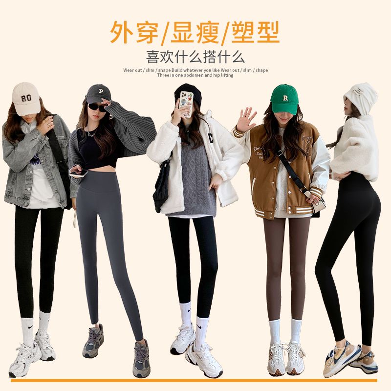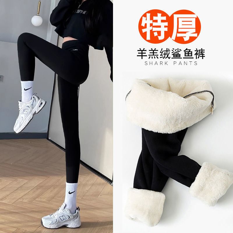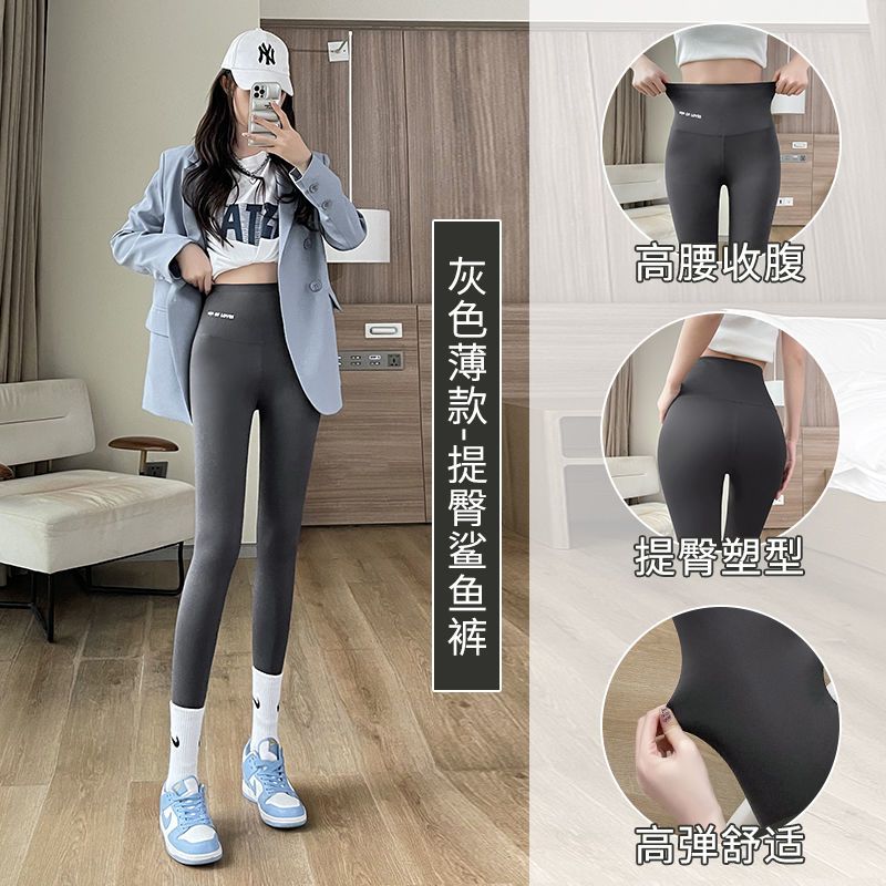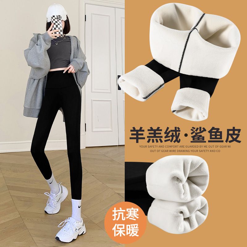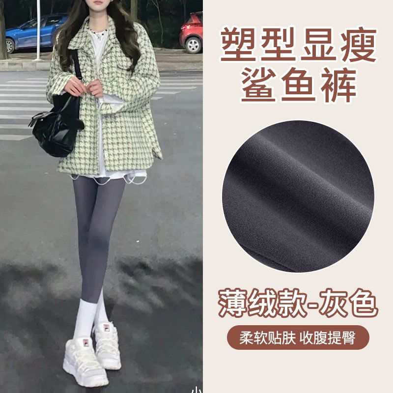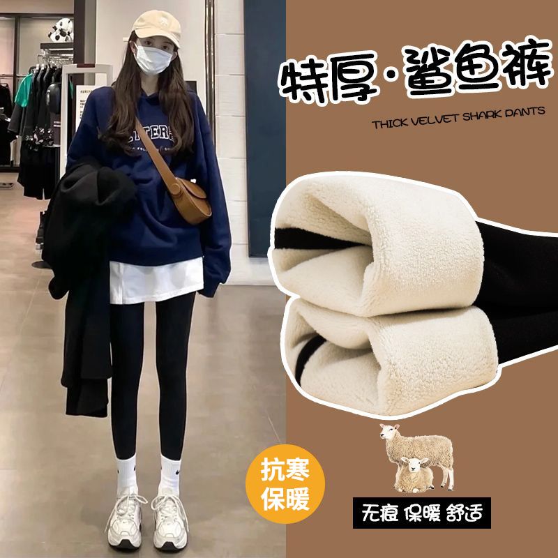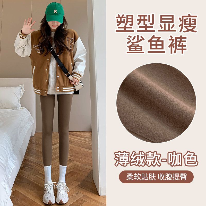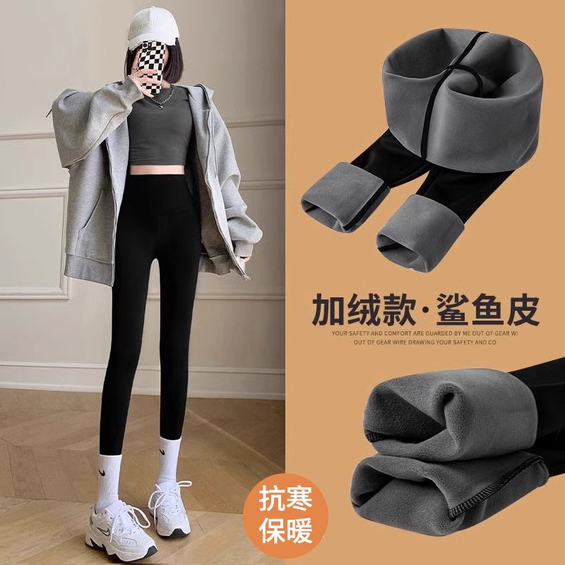 加绒鲨鱼裤打底裤女外穿秋冬2023新款加厚紧身高腰收腹瑜伽芭比裤