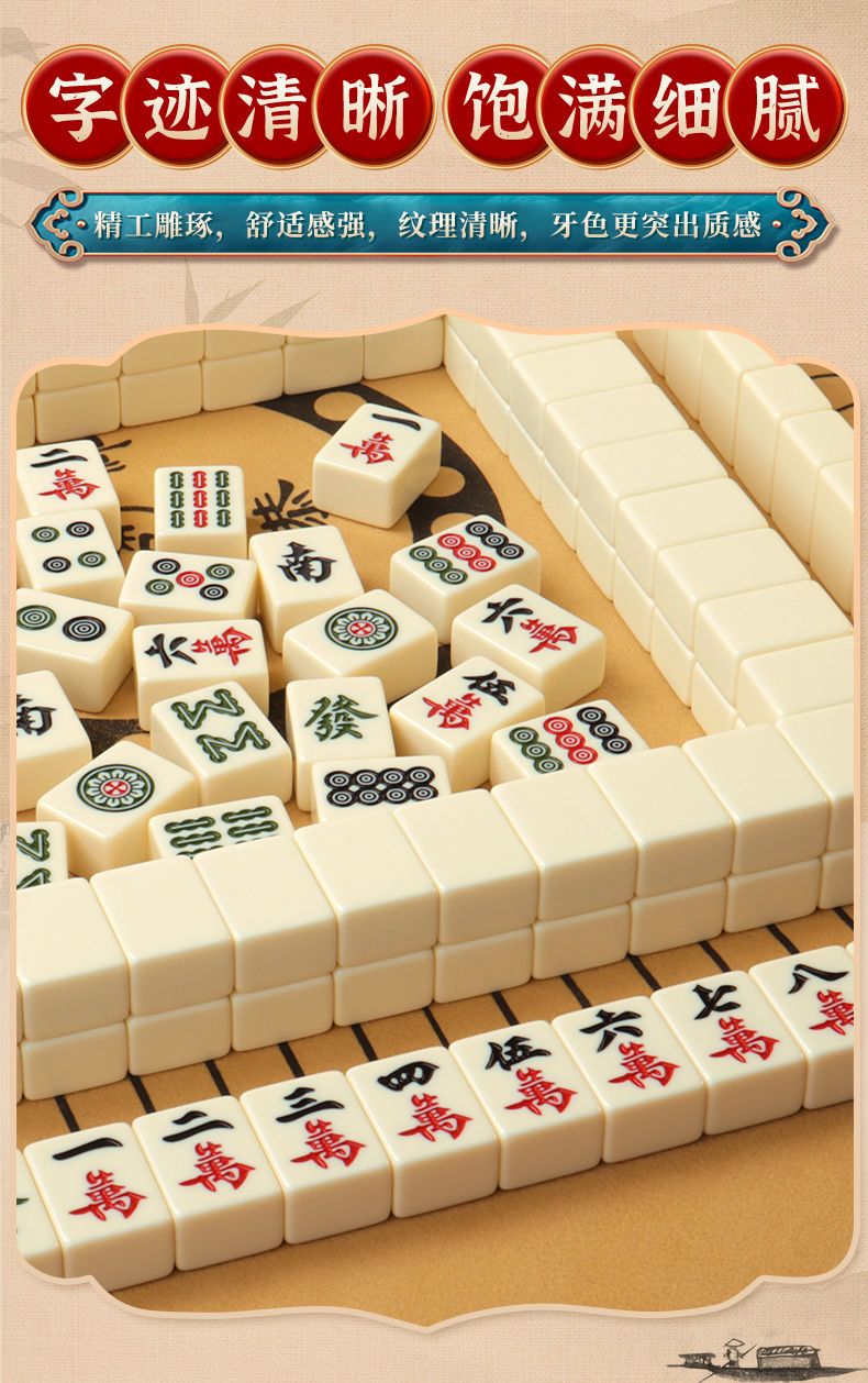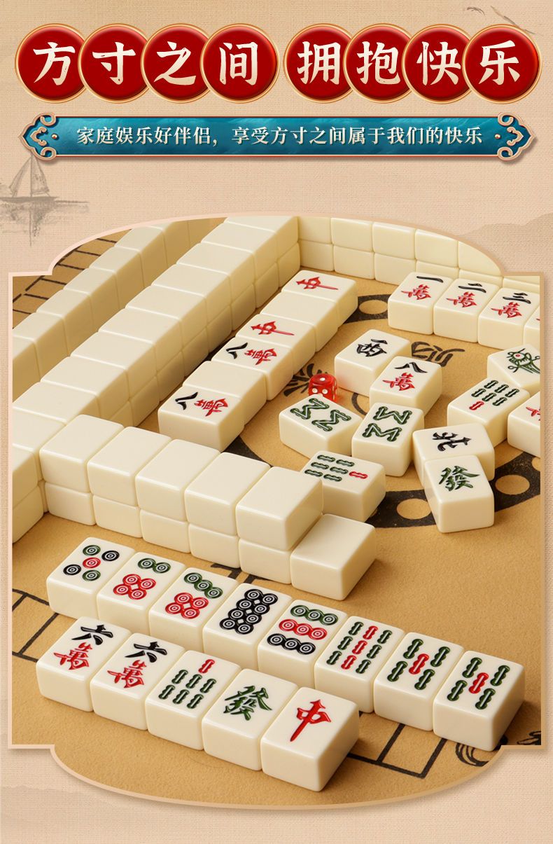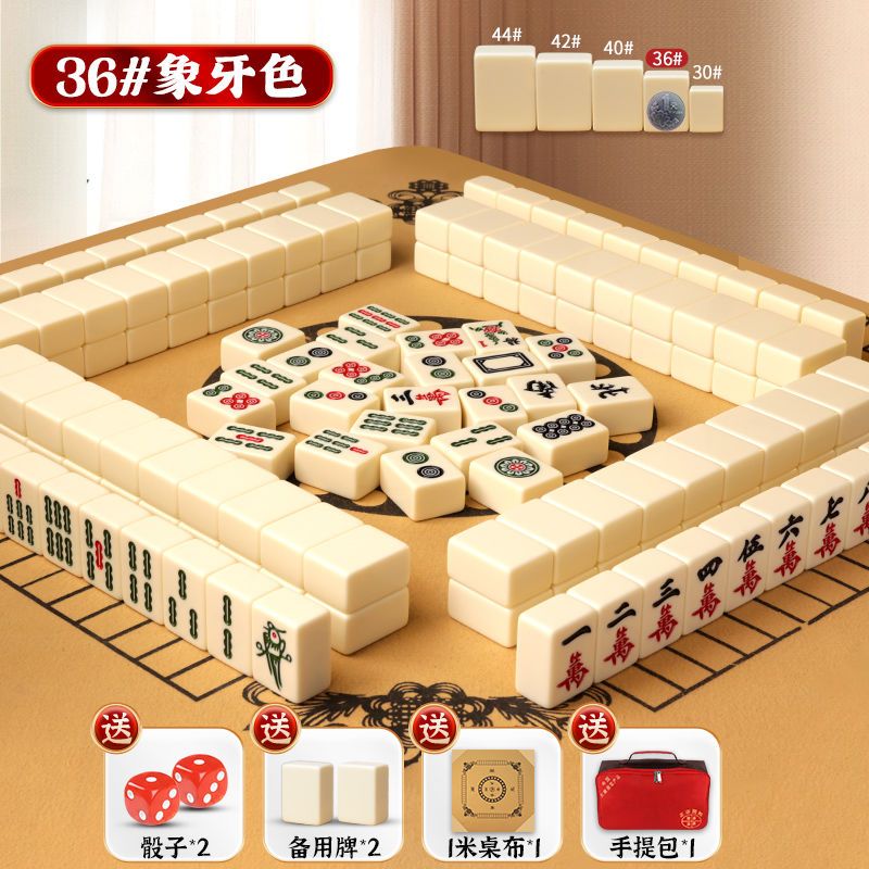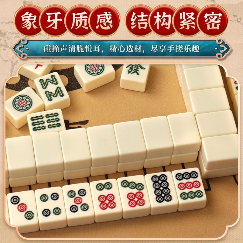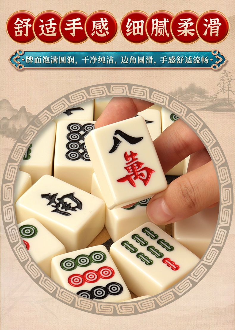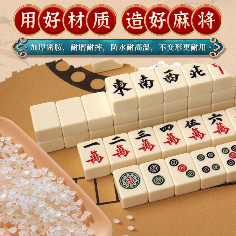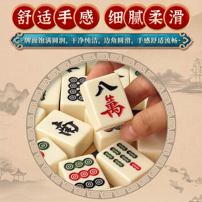 手搓麻将麻将牌家用四川仿玉石麻将牌迷你麻将大号便宜收纳盒中款