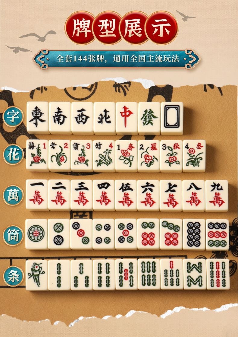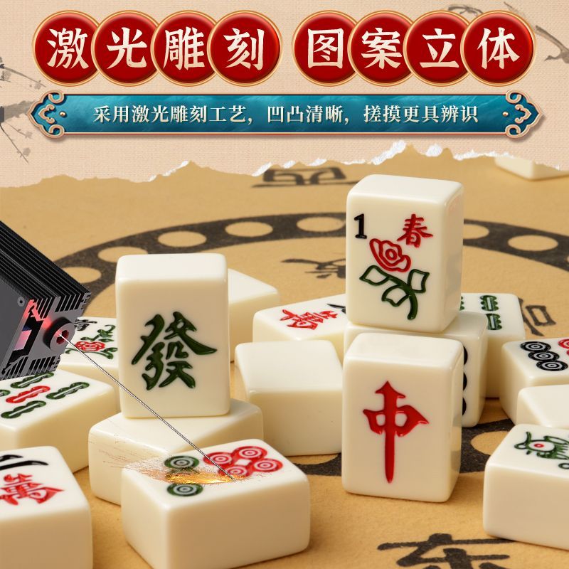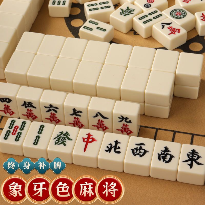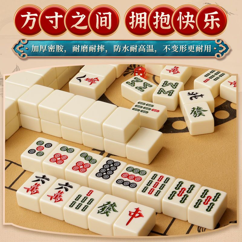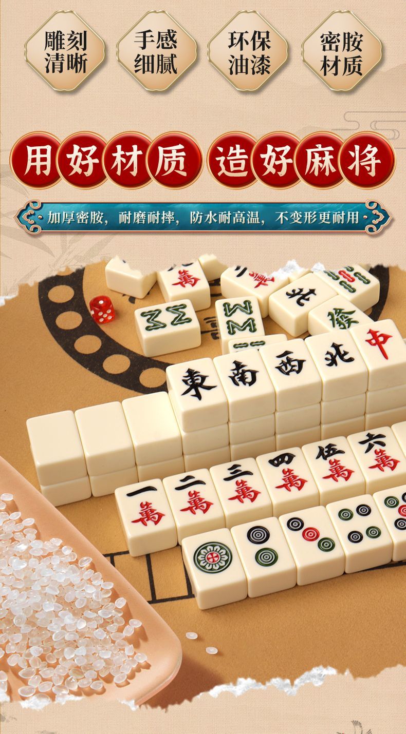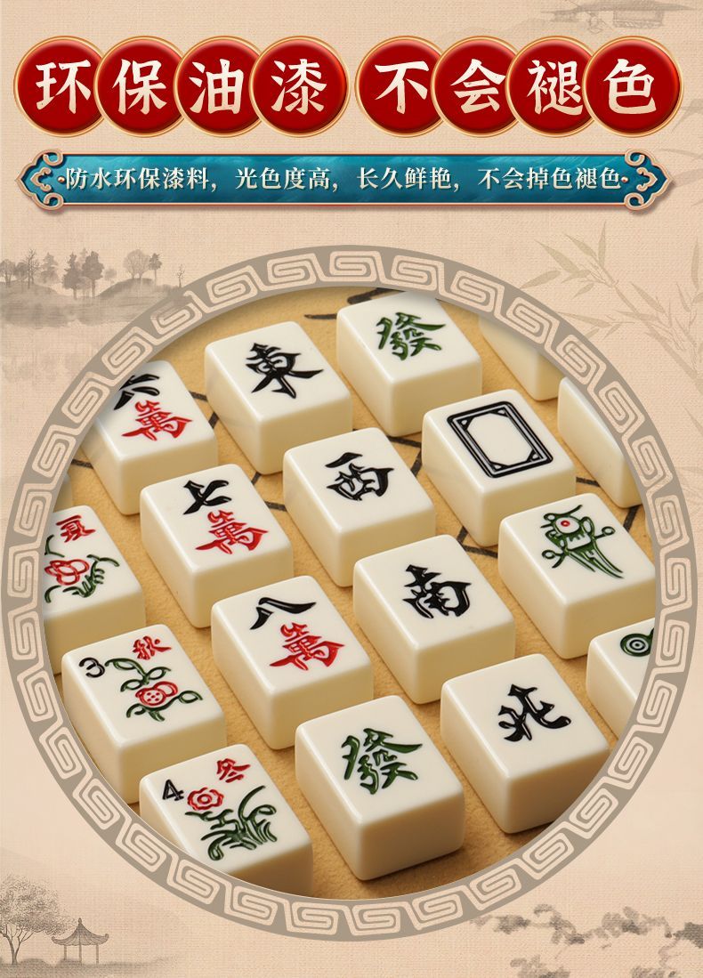 手搓麻将麻将牌家用四川仿玉石麻将牌迷你麻将大号便宜收纳盒中款