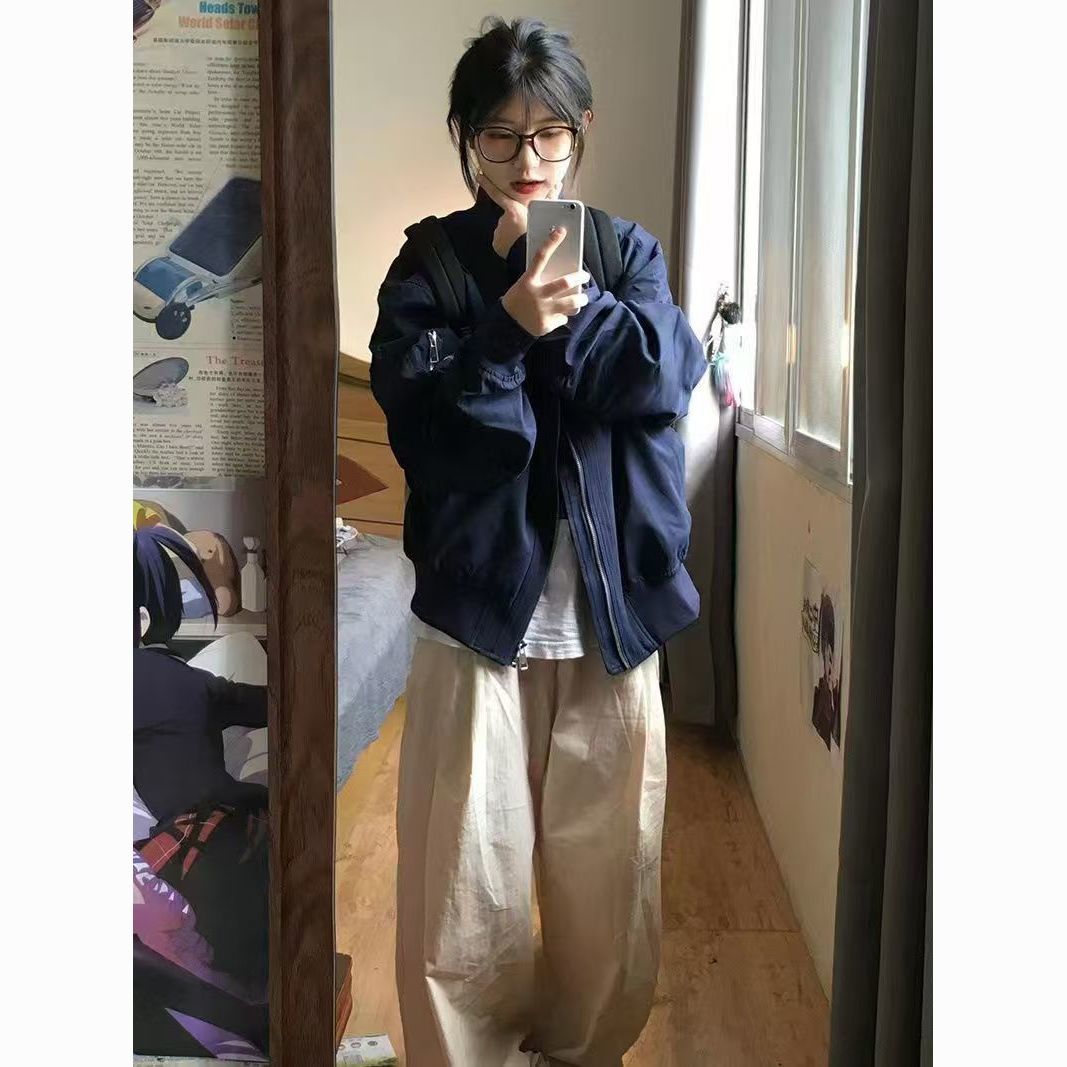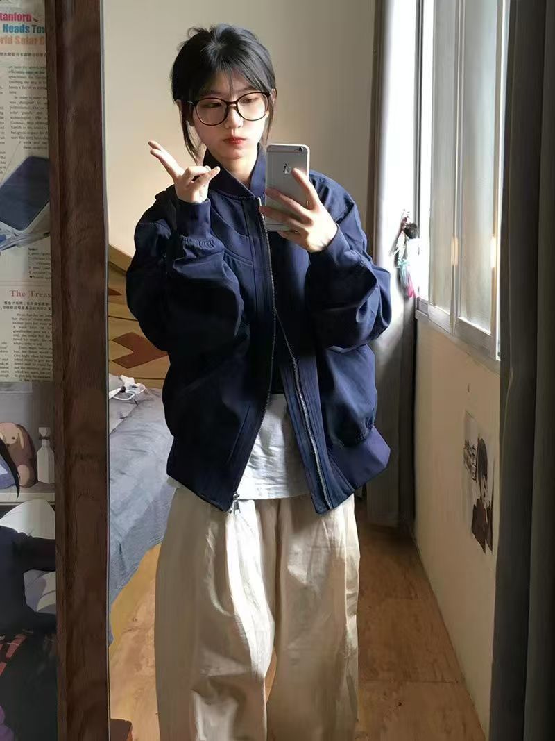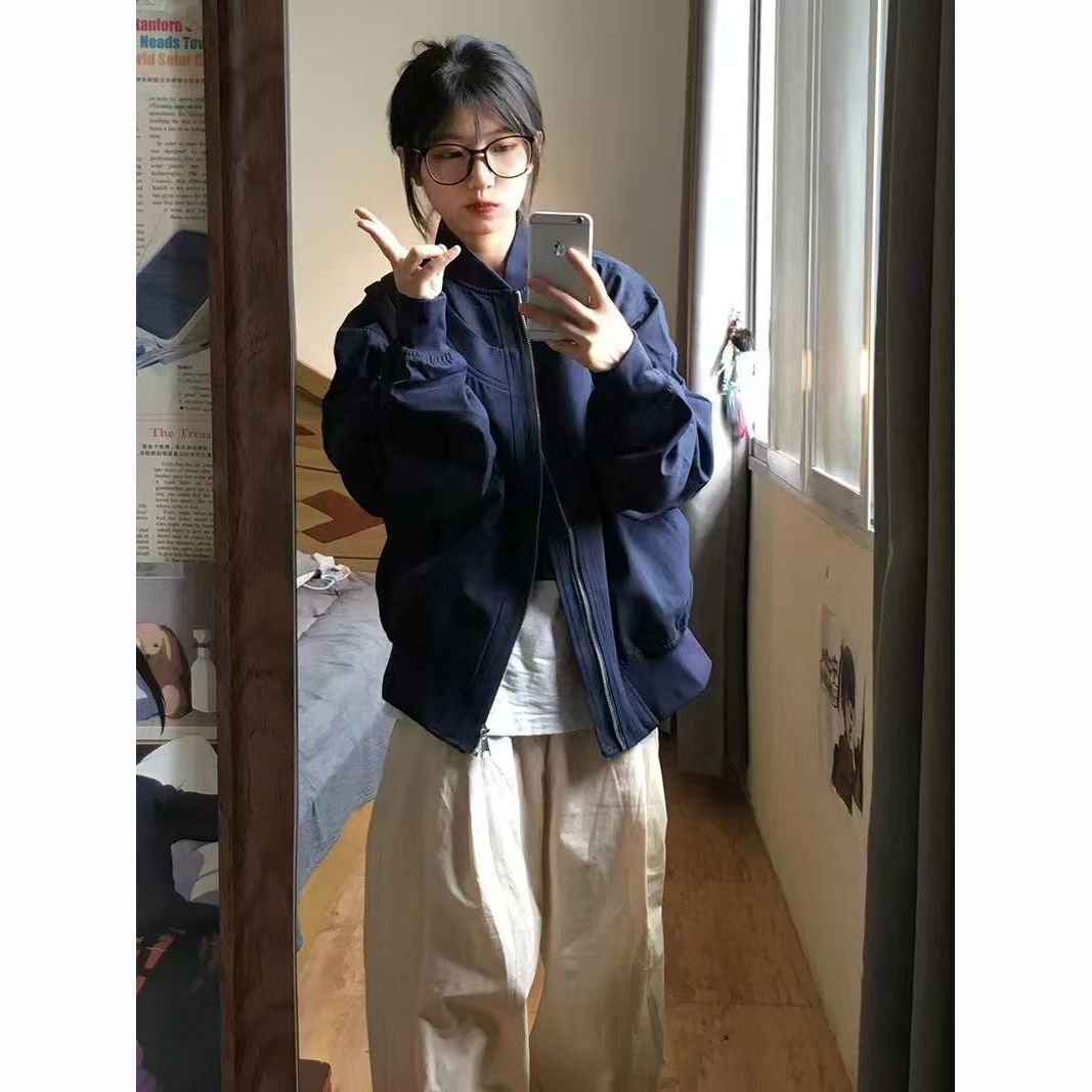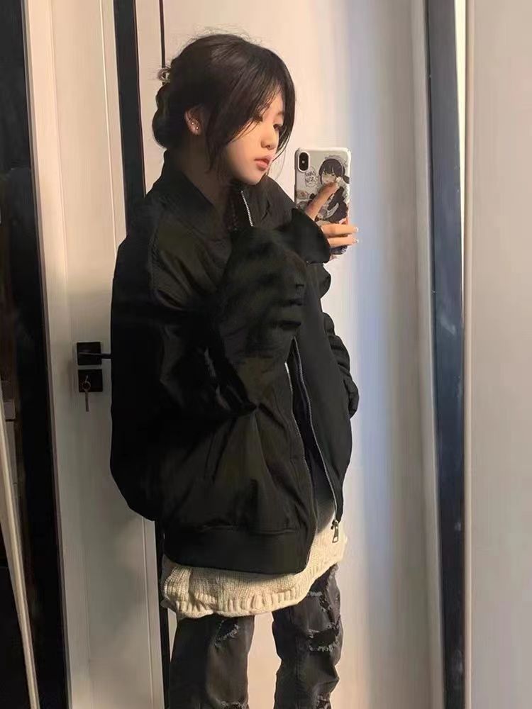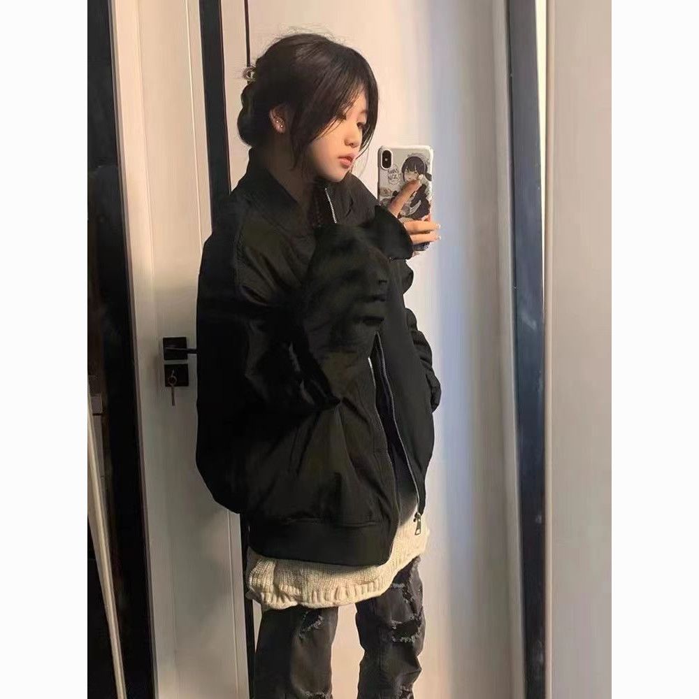 vintage美式高街飞行服外套女春秋设计感小众棒球服宽松夹克上衣