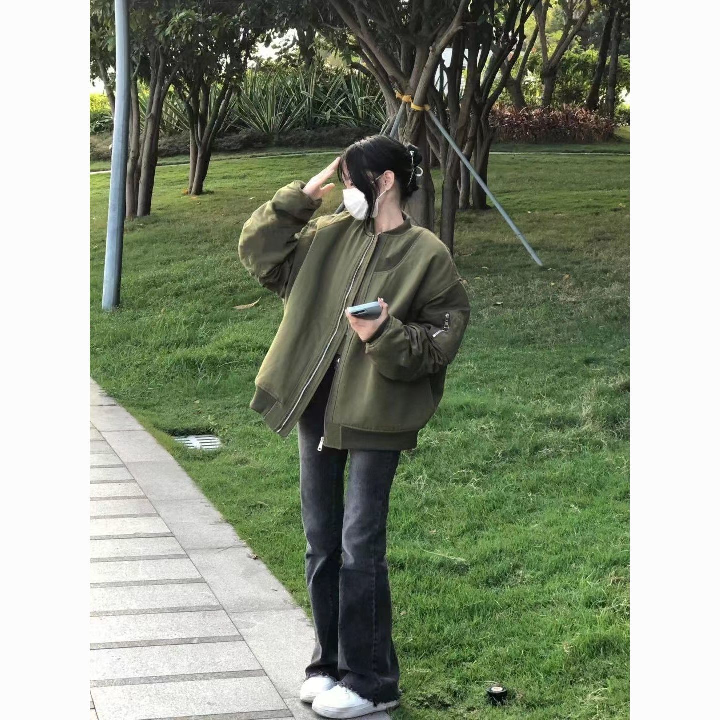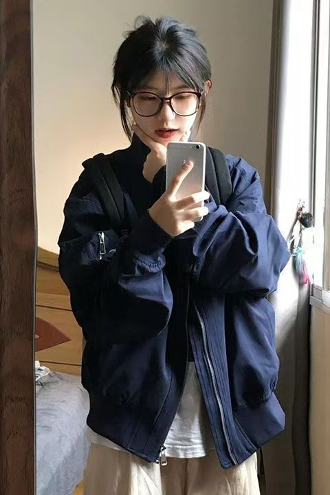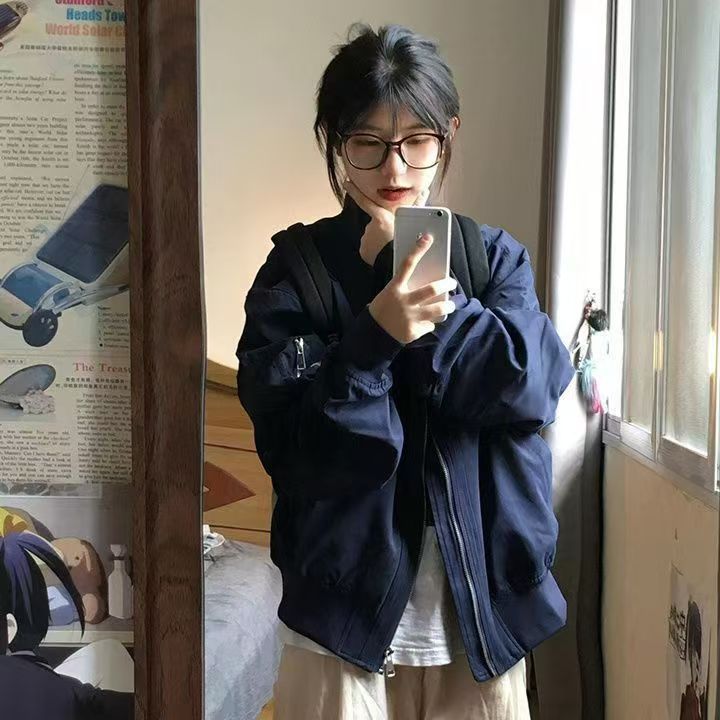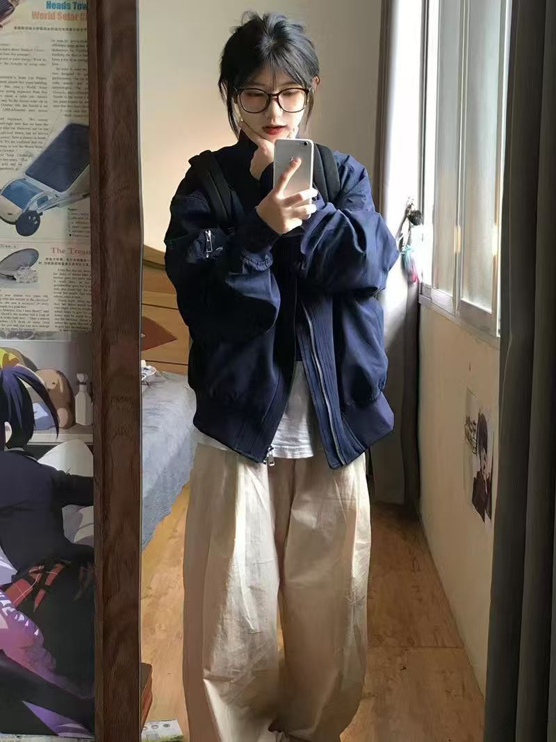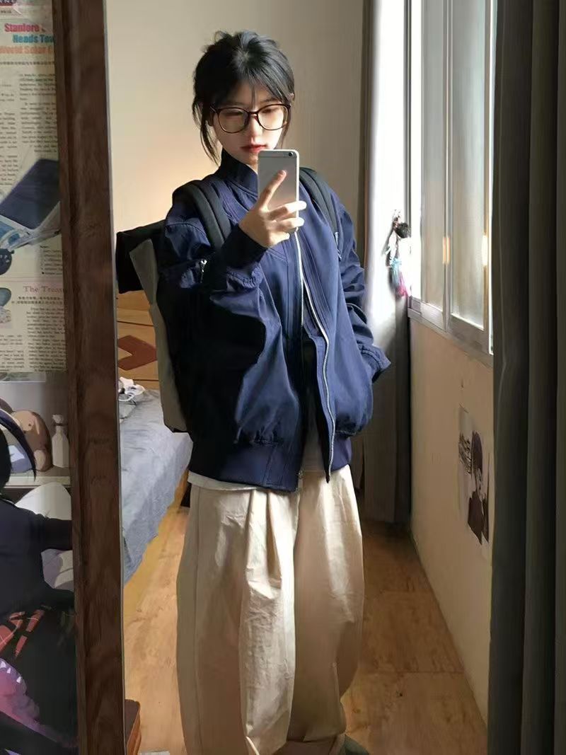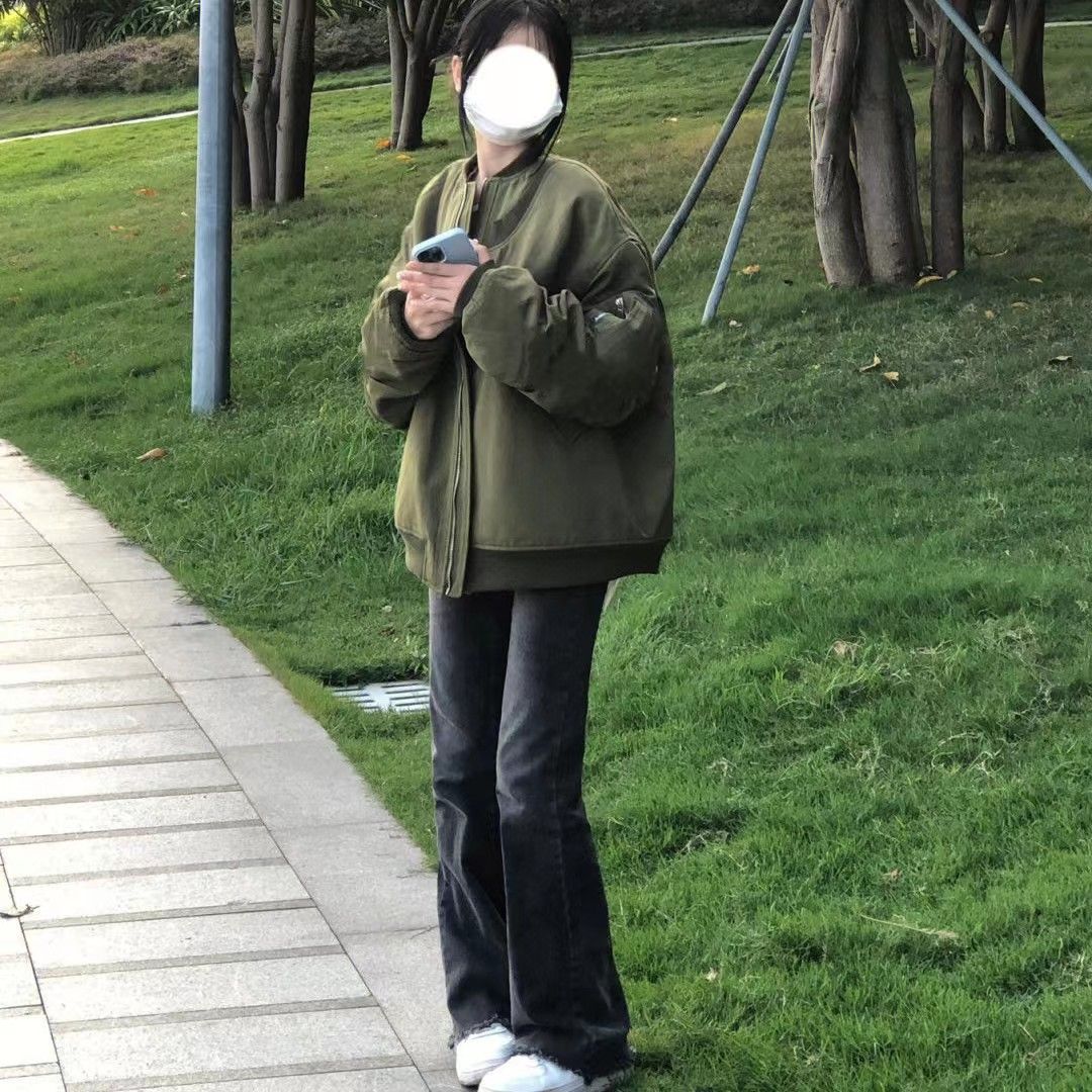 vintage美式高街飞行服外套女春秋设计感小众棒球服宽松夹克上衣