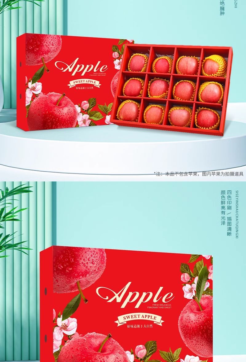 通用水果礼盒空盒子高档苹果礼盒包装盒12枚装空盒子红色礼盒定制