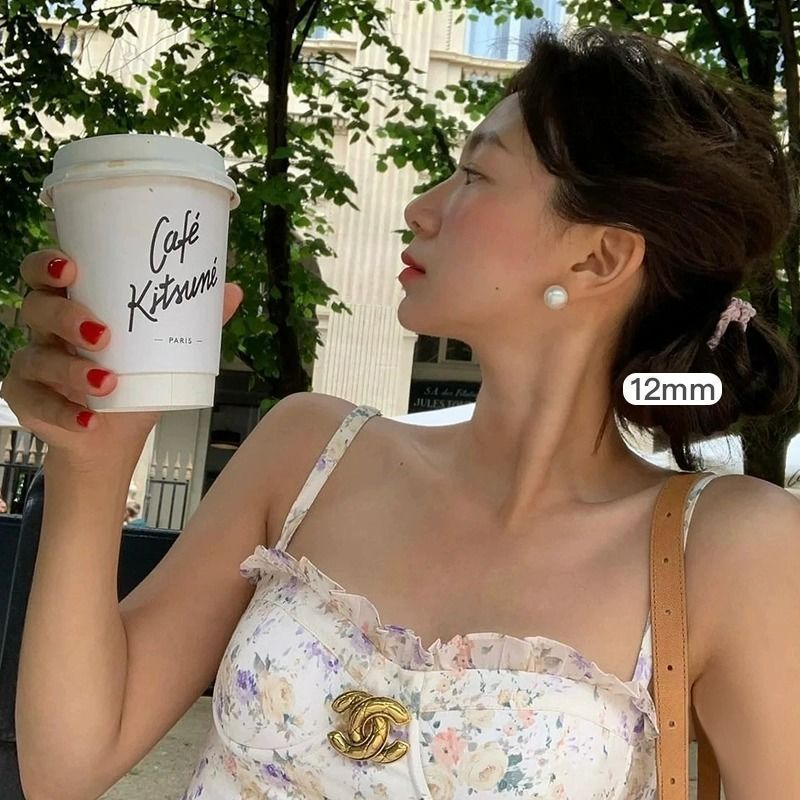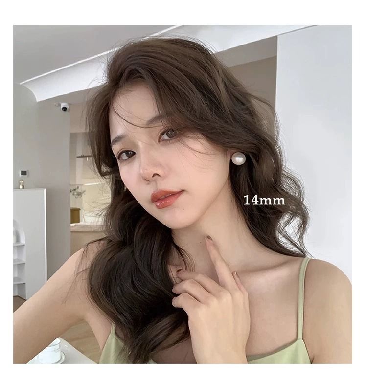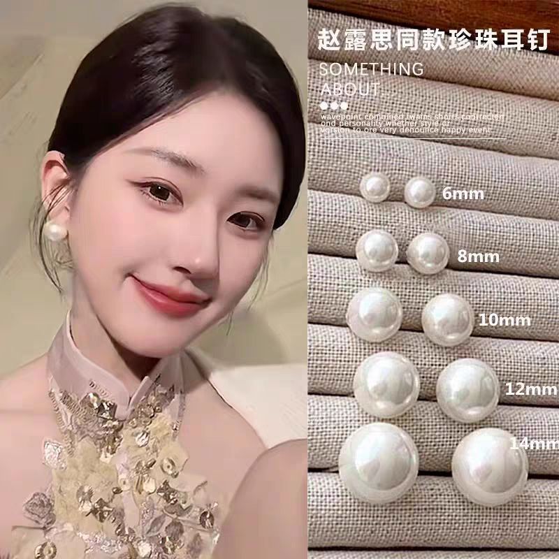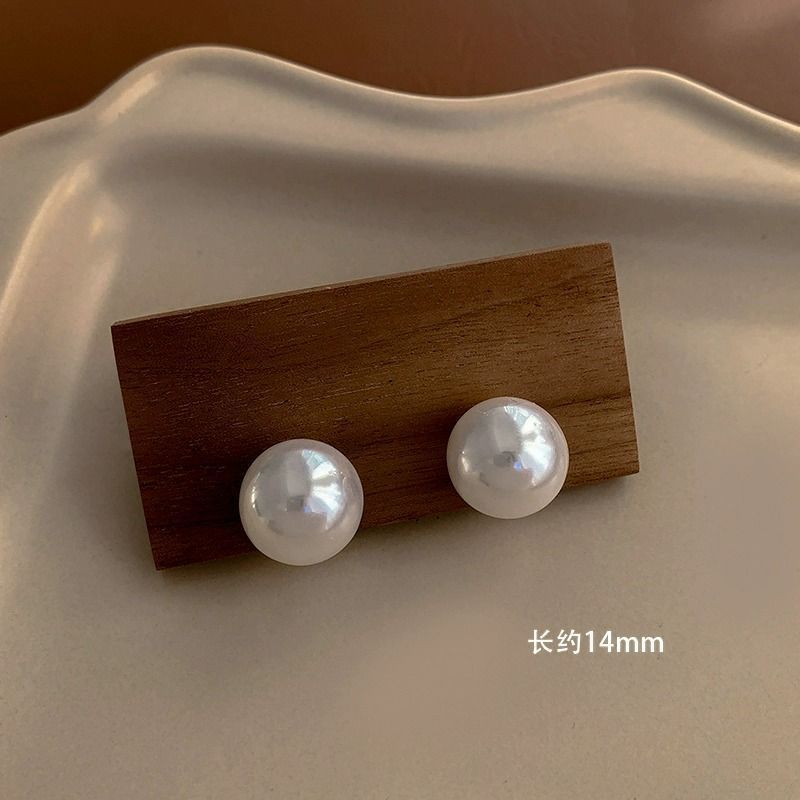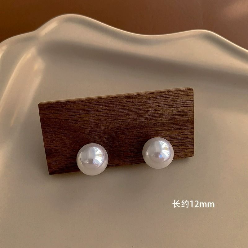 S925银针超大珍珠耳钉女时尚百搭同款2024轻奢小众高级感珍珠耳饰