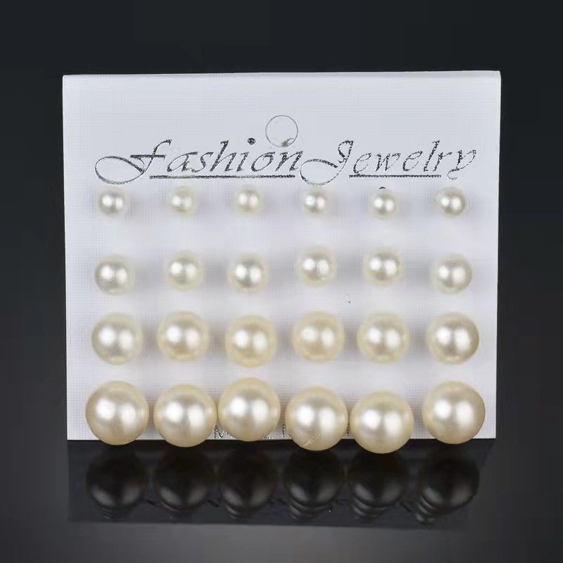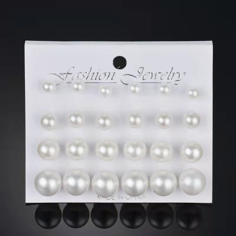 超值12对珍珠耳钉简约经典韩版时尚卡片装大小珠日常气质百搭组合