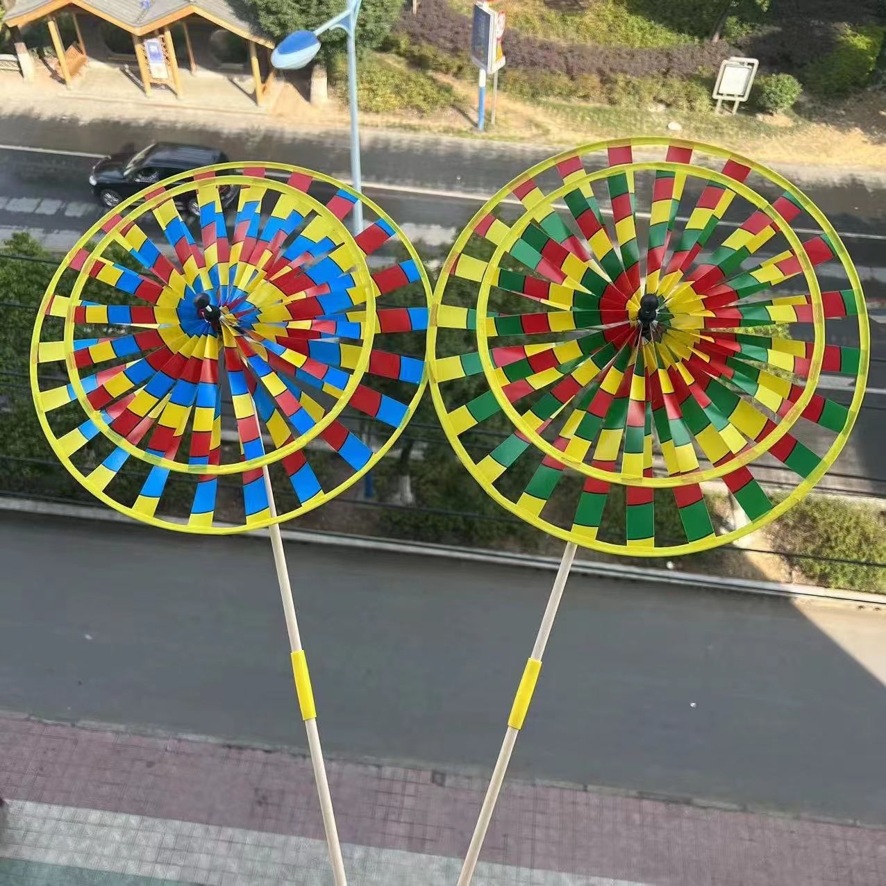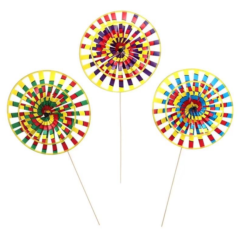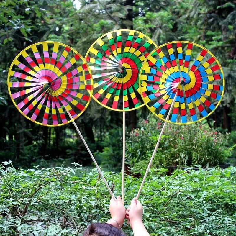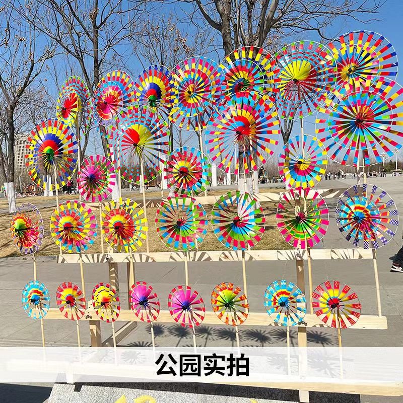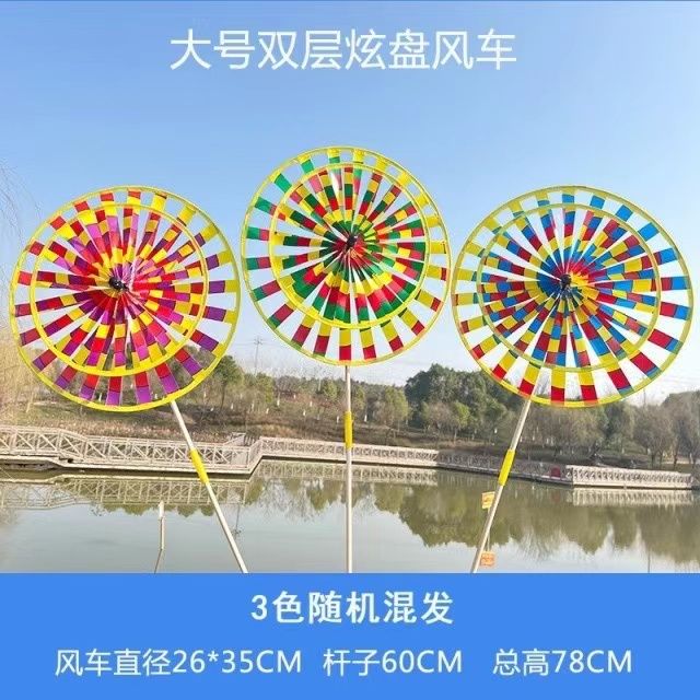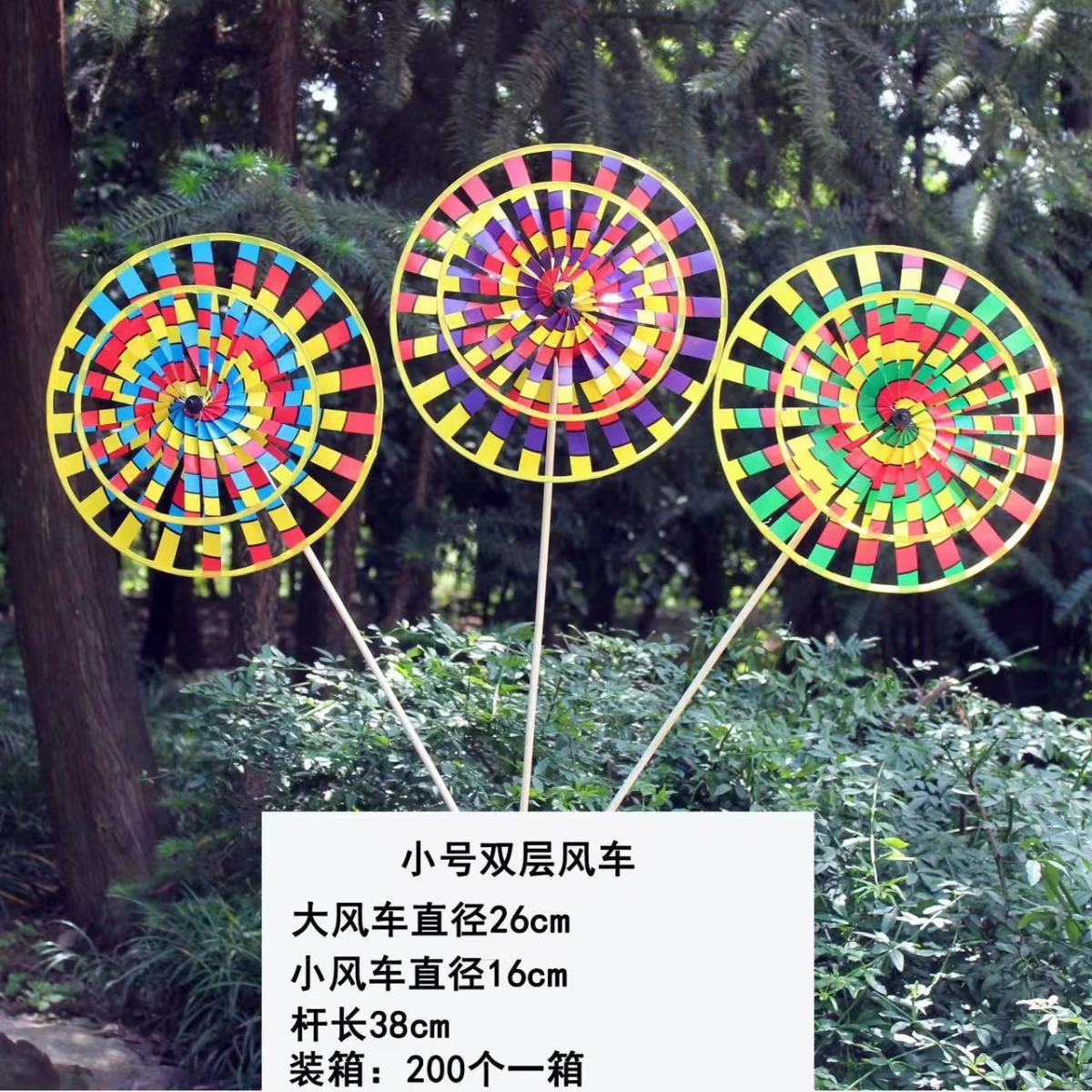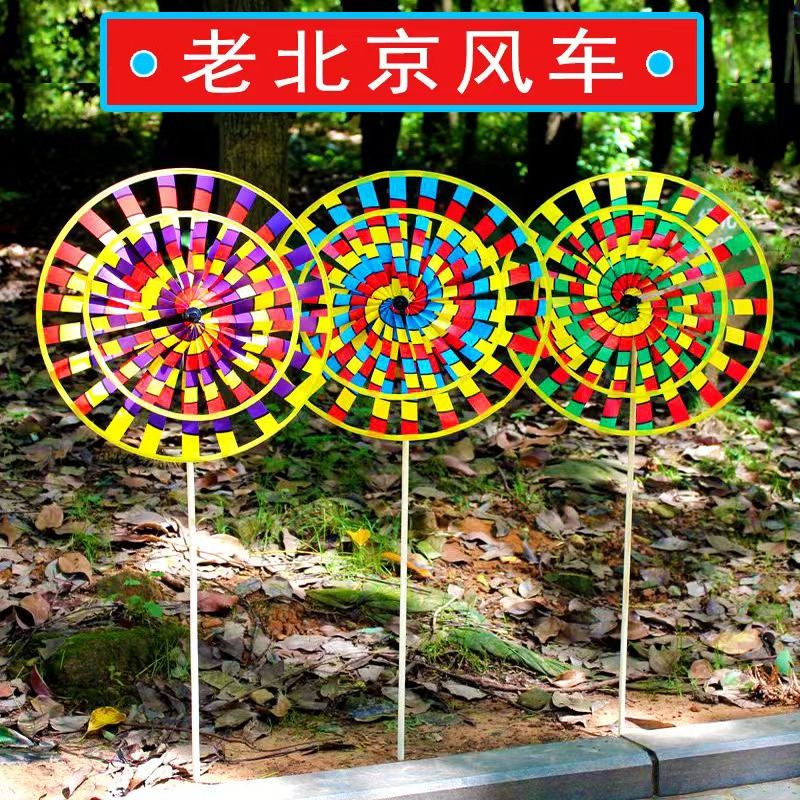 传统户外北京批发木杆七彩双层风车旋转儿童玩具儿童装饰景区热卖