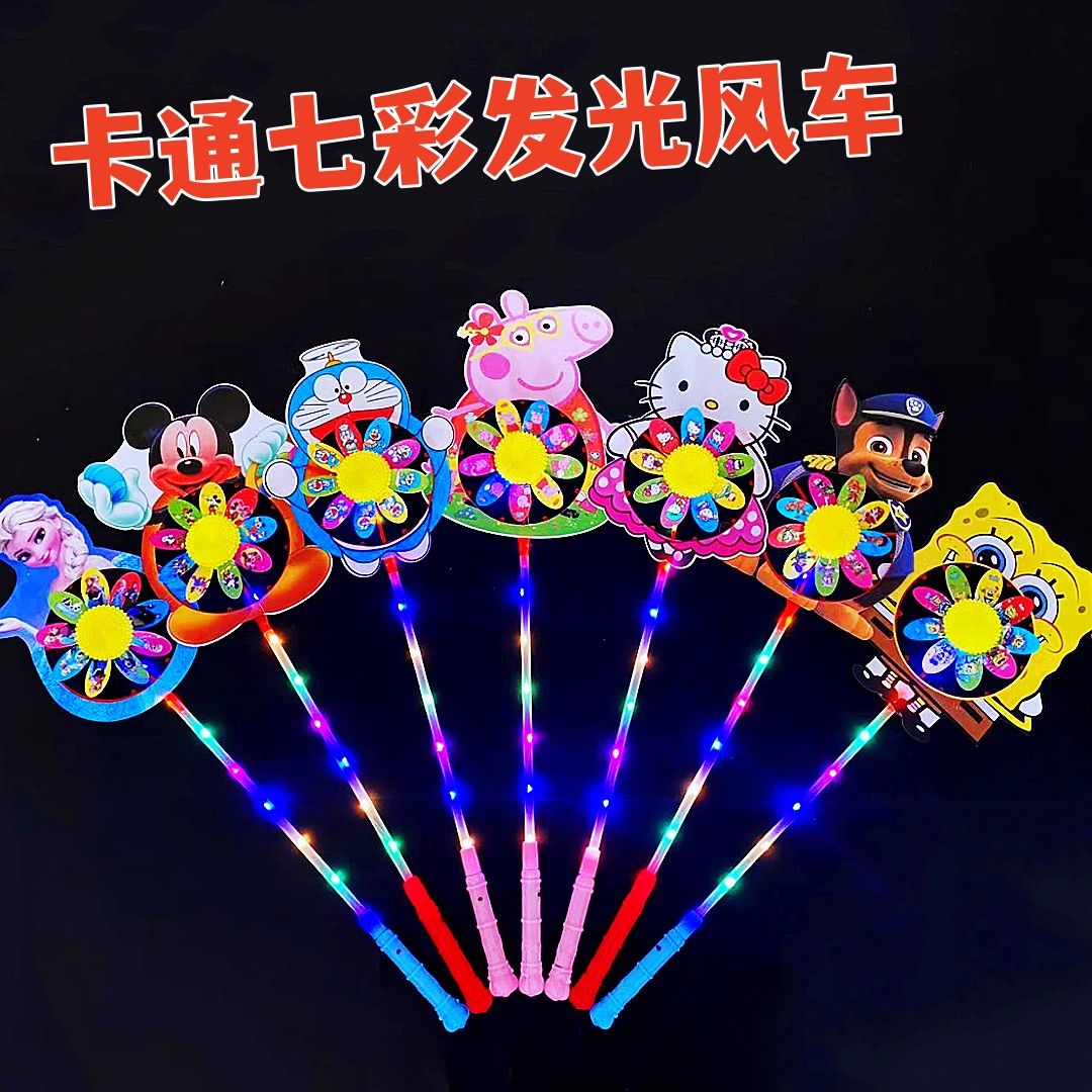 买一送一 儿童玩具创意发光风车led七彩闪光卡通风车地摊货源批发