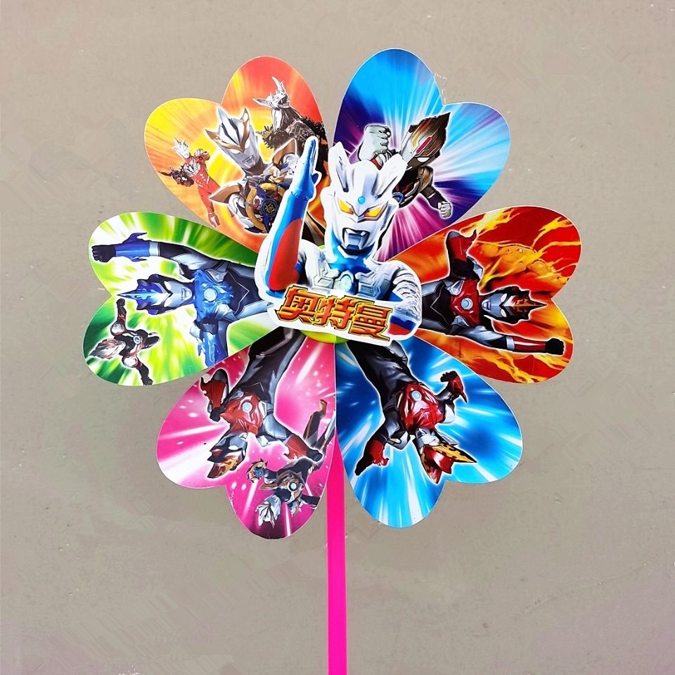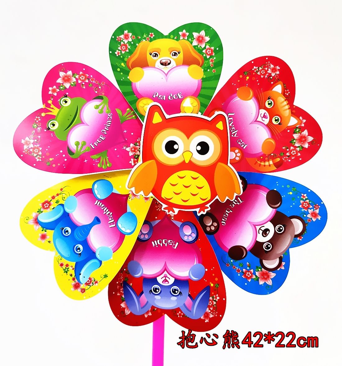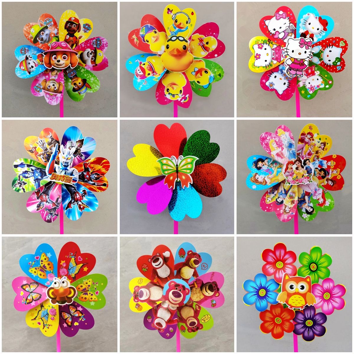 新款儿童卡通玩具大风车幼儿园装饰礼品摆摊庙会七彩小风车批发