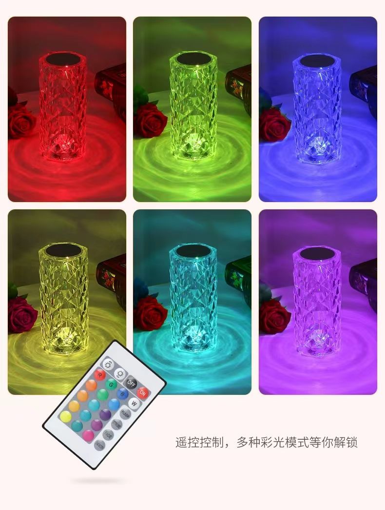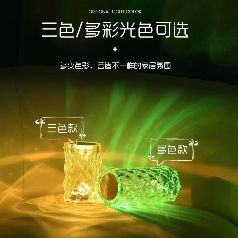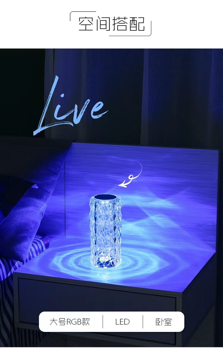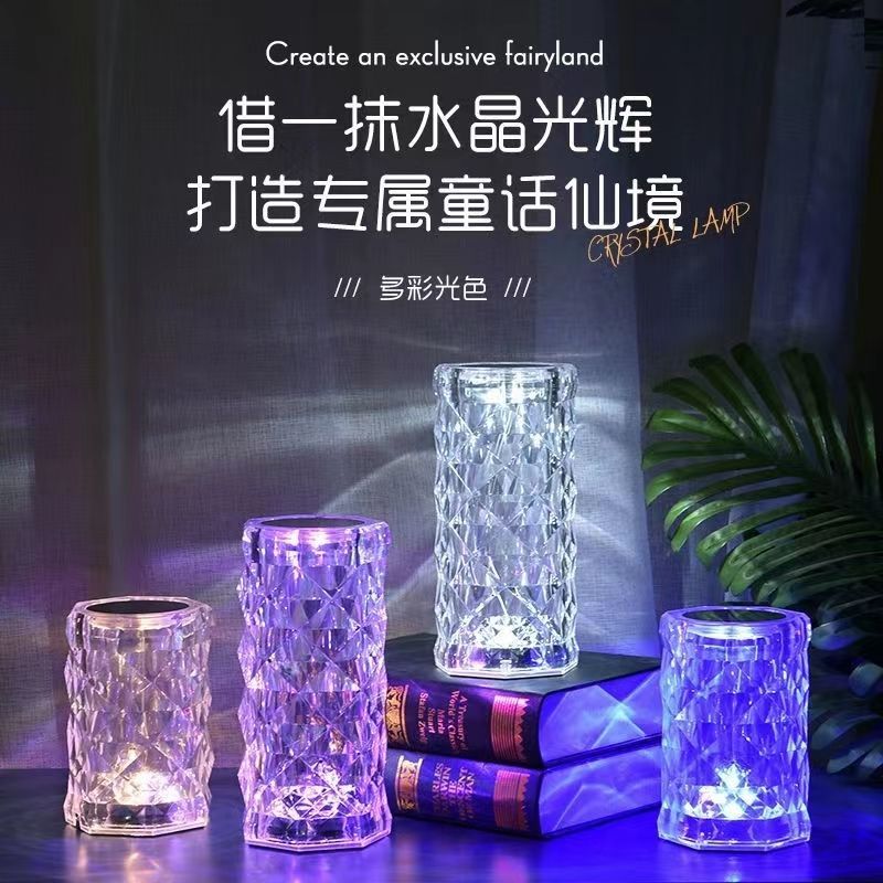 玫瑰水晶台灯网红钻石灯卧室浪漫床头氛围小夜灯灯光氛围灯