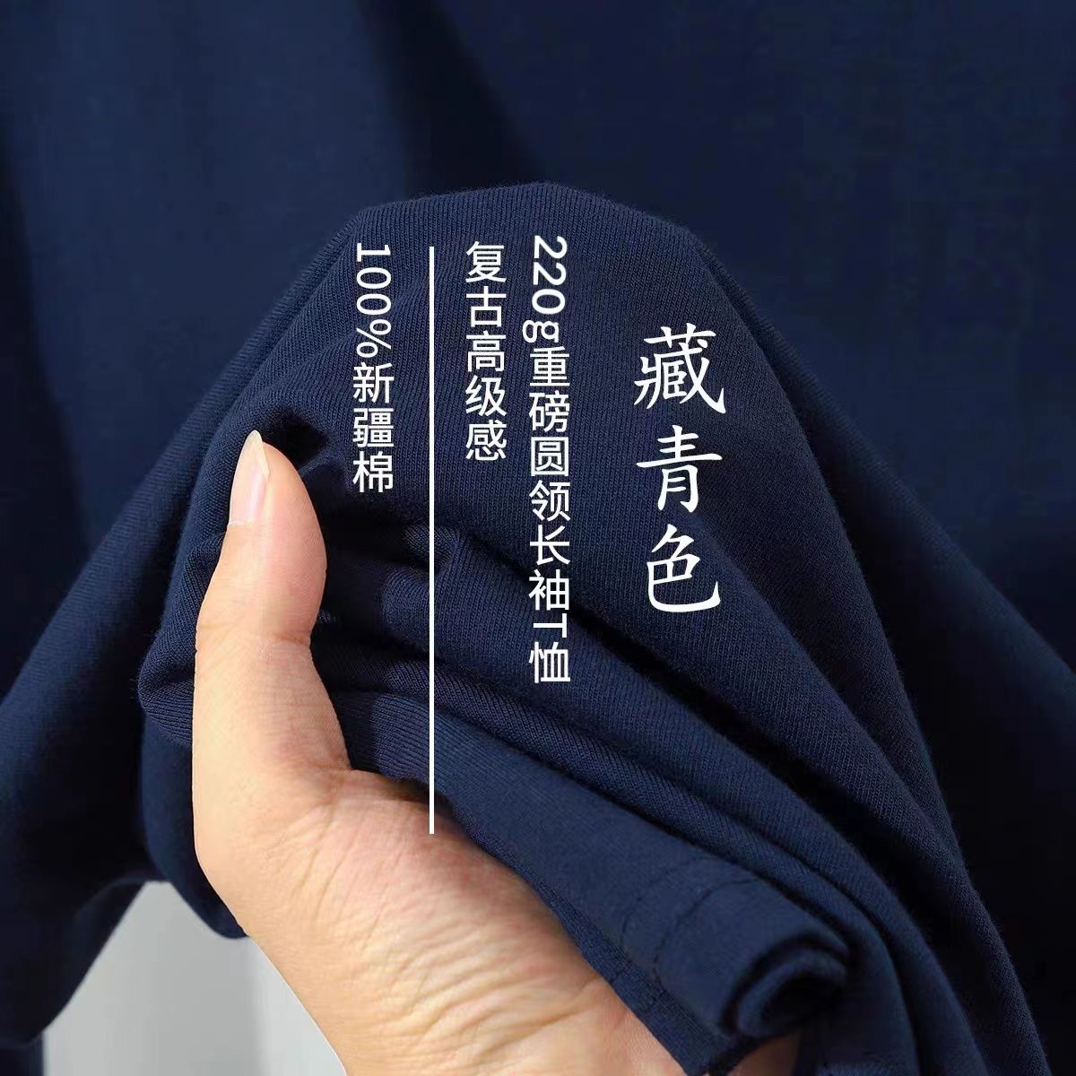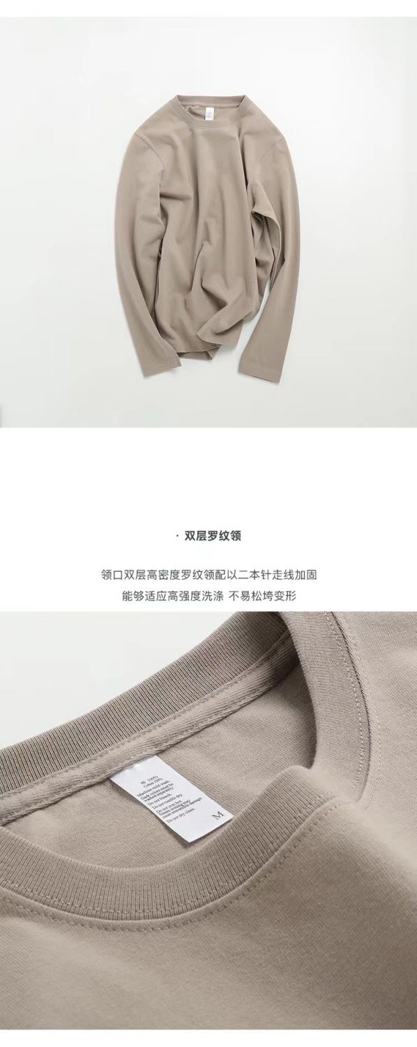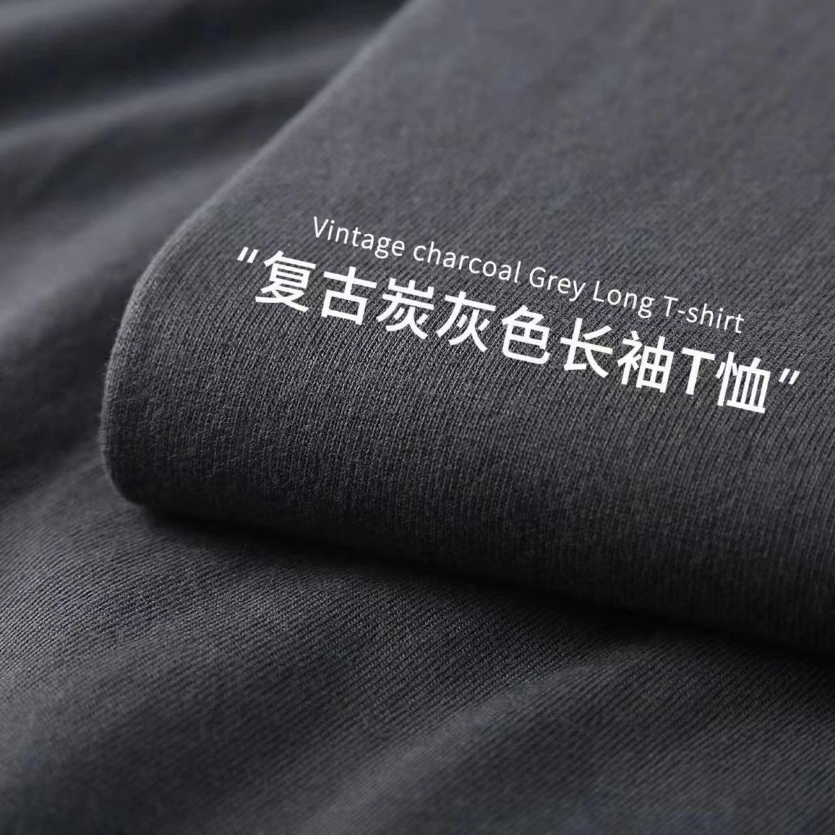 雾霾灰新疆棉300g重磅长袖T恤厚实不透纯棉打底衫纯色男女款品质T