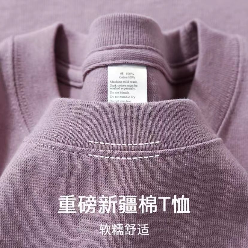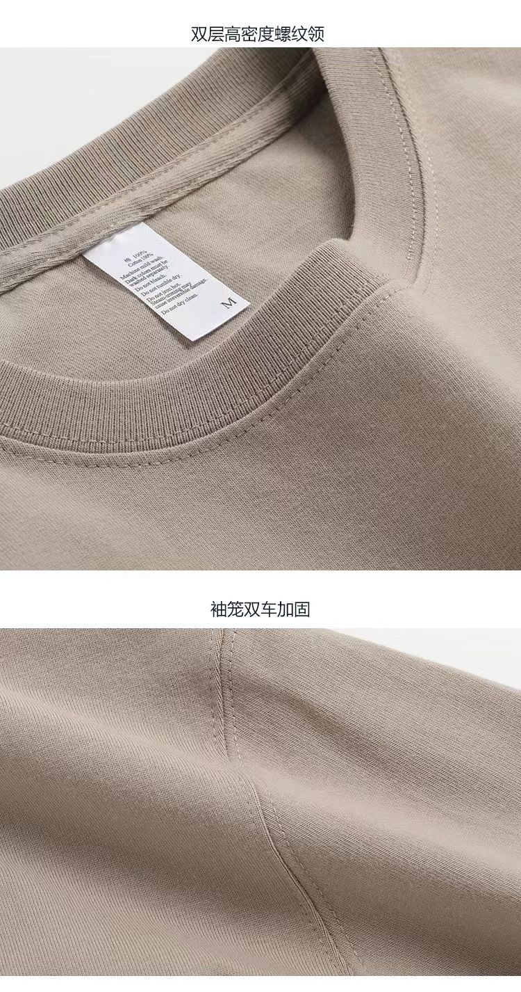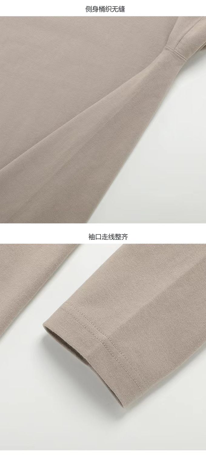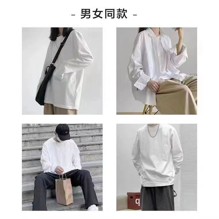 雾霾灰新疆棉300g重磅长袖T恤厚实不透纯棉打底衫纯色男女款品质T