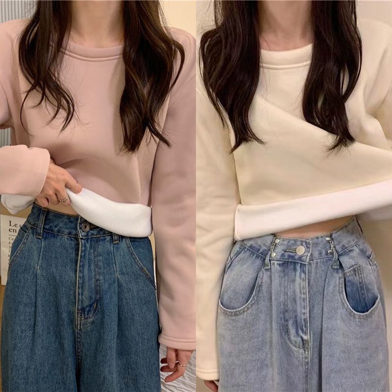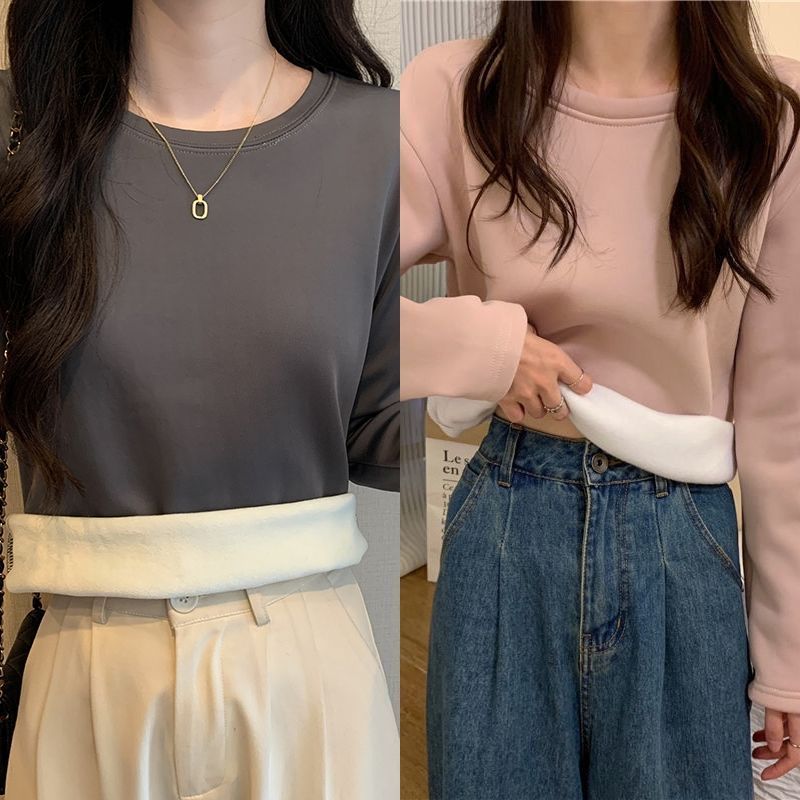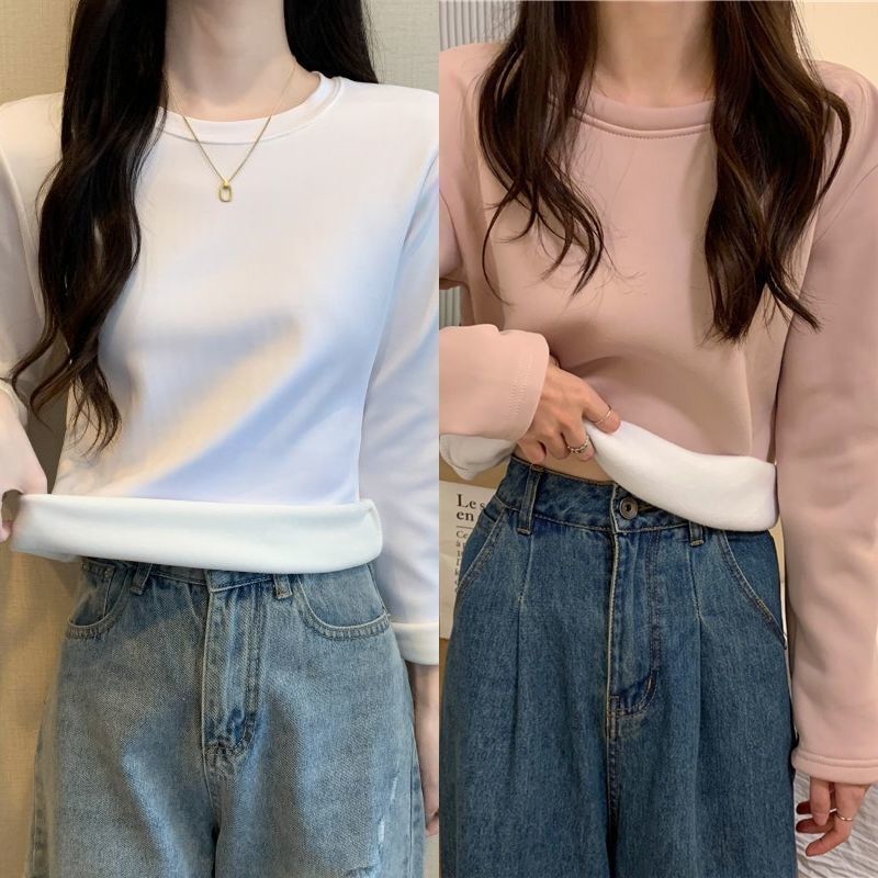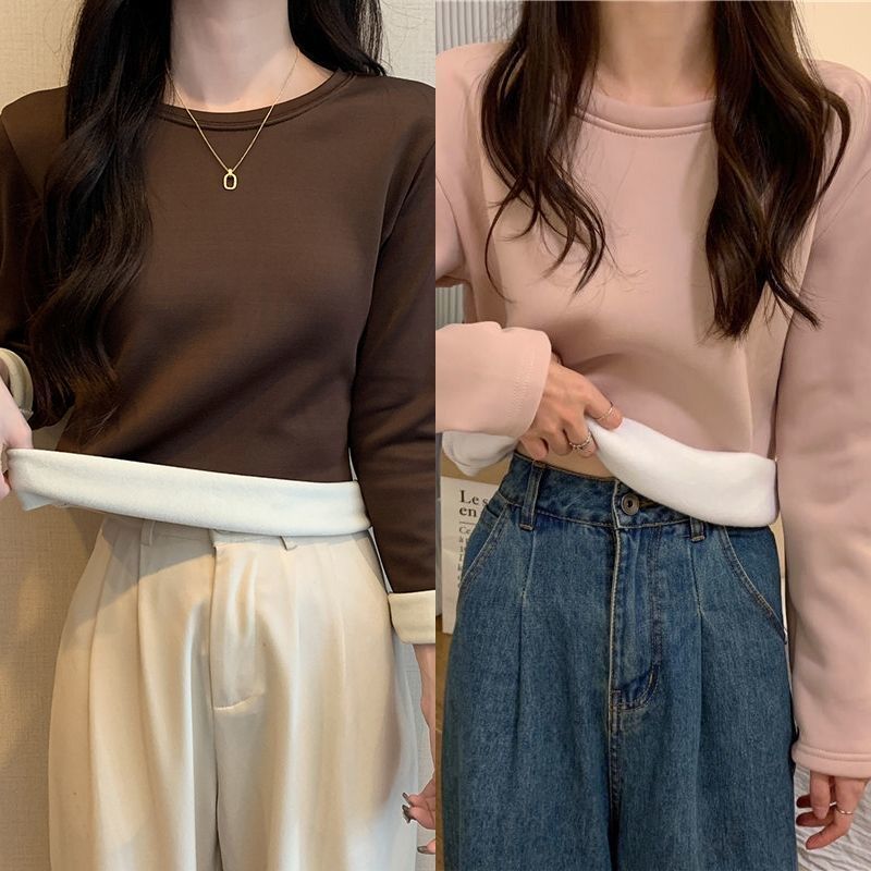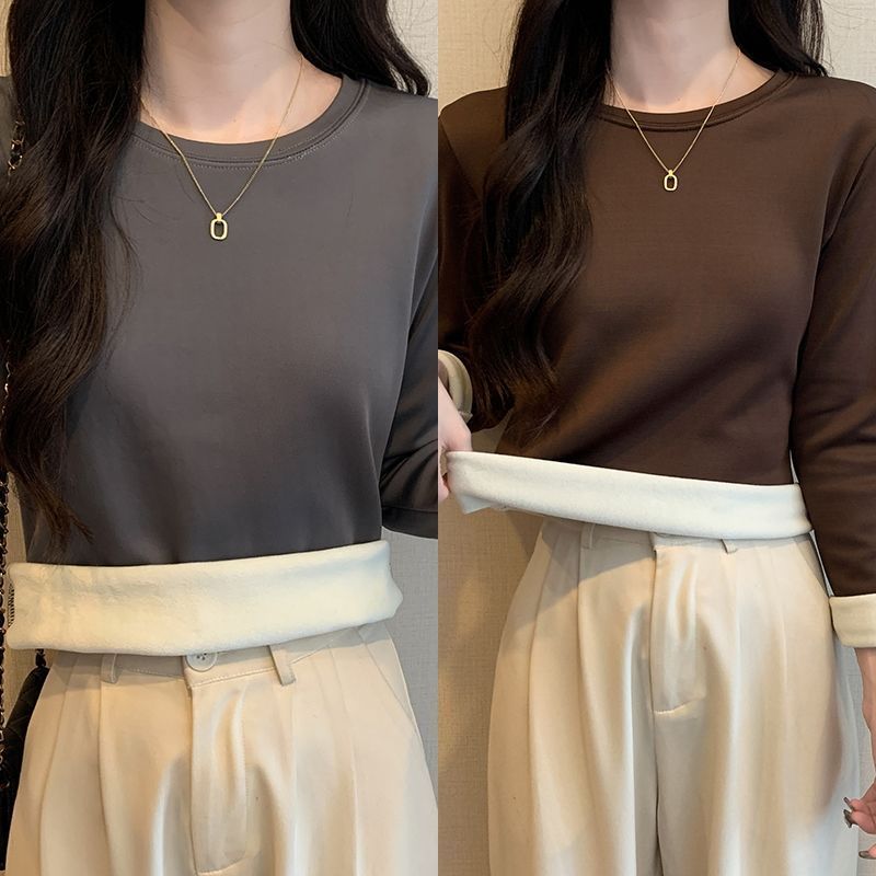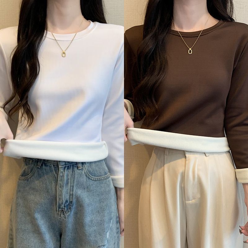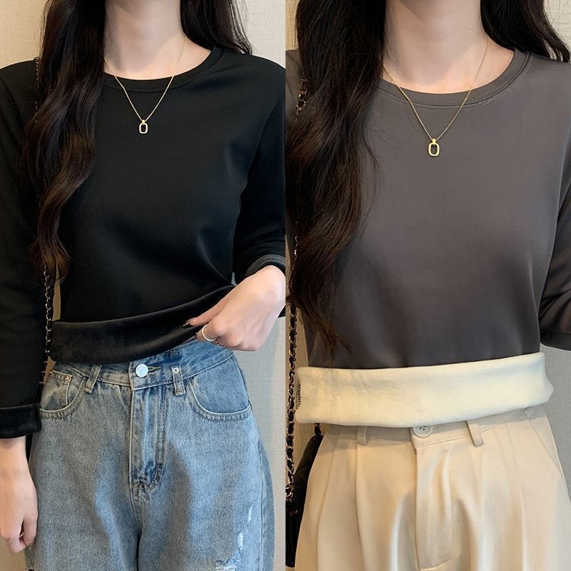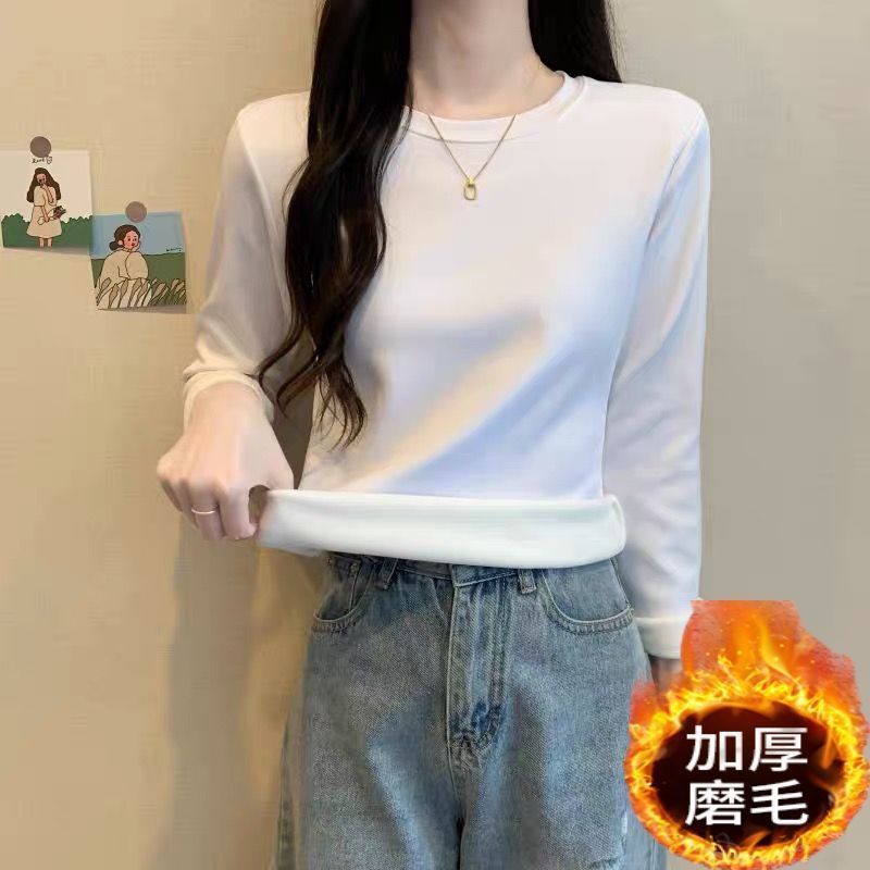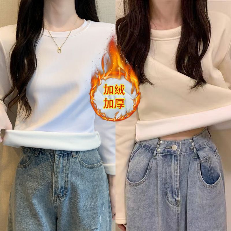 单/两件 加绒加厚打底衫女2024秋冬季内搭圆领长袖T恤保暖上衣潮