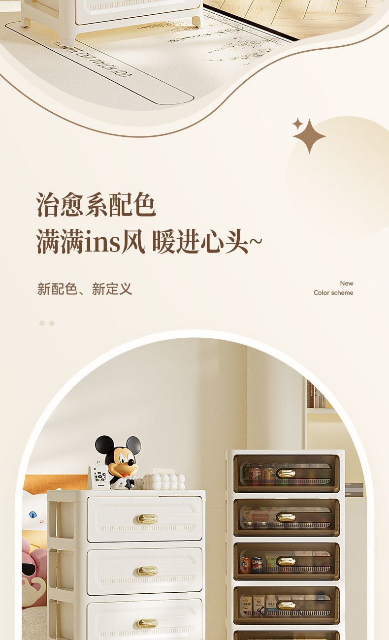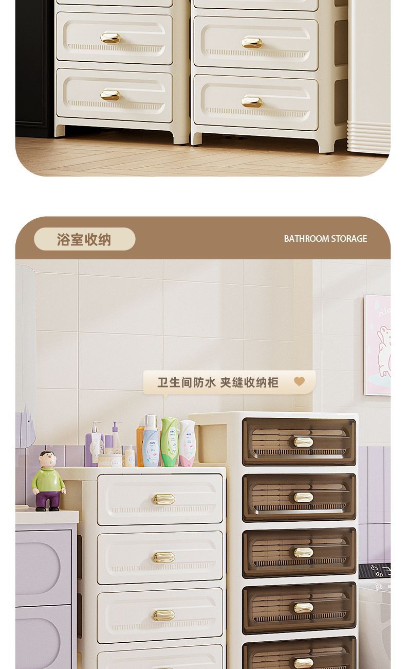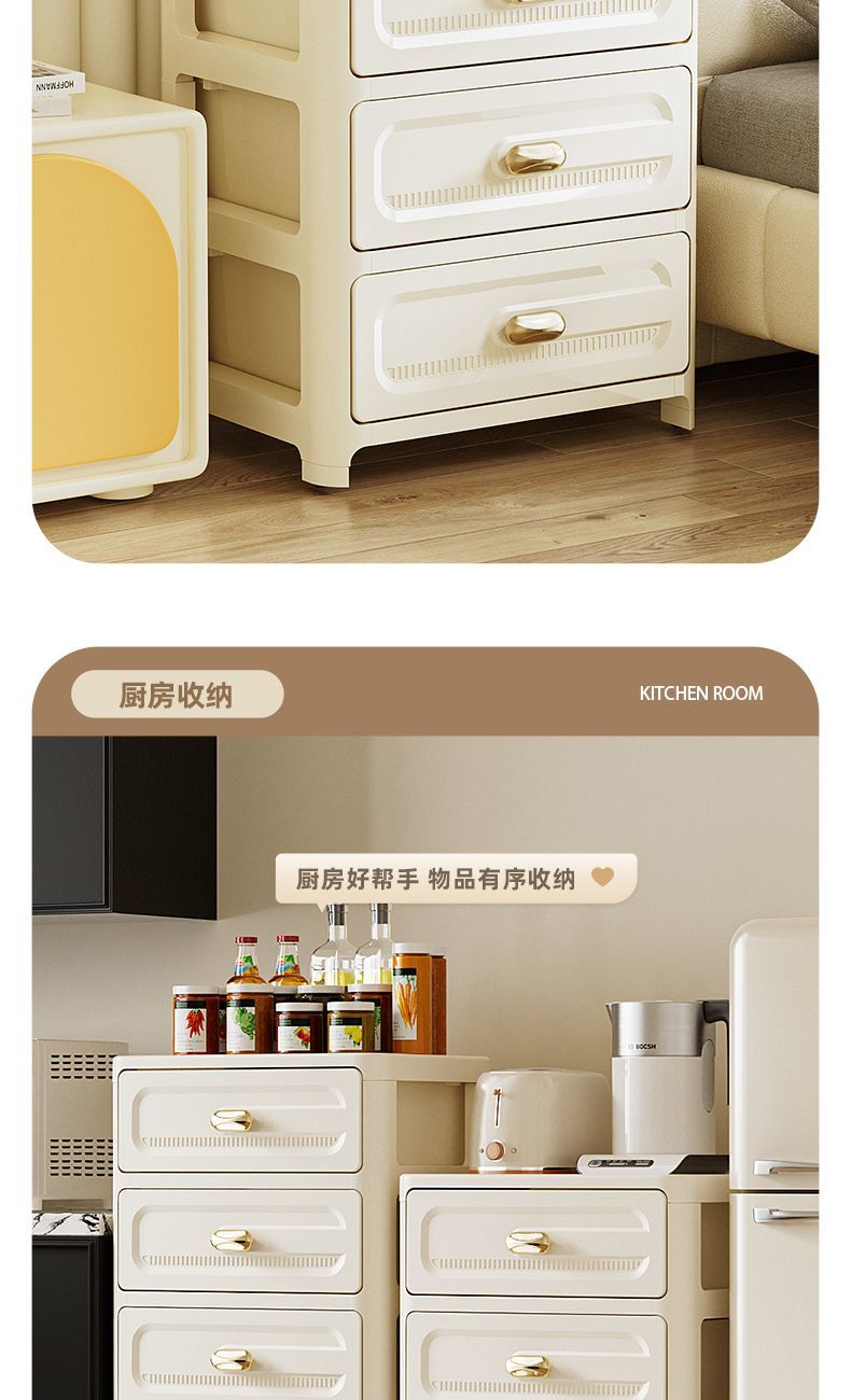 加厚抽屉式收纳柜家用客厅置物柜多层夹缝储物柜子日式卧室床头柜