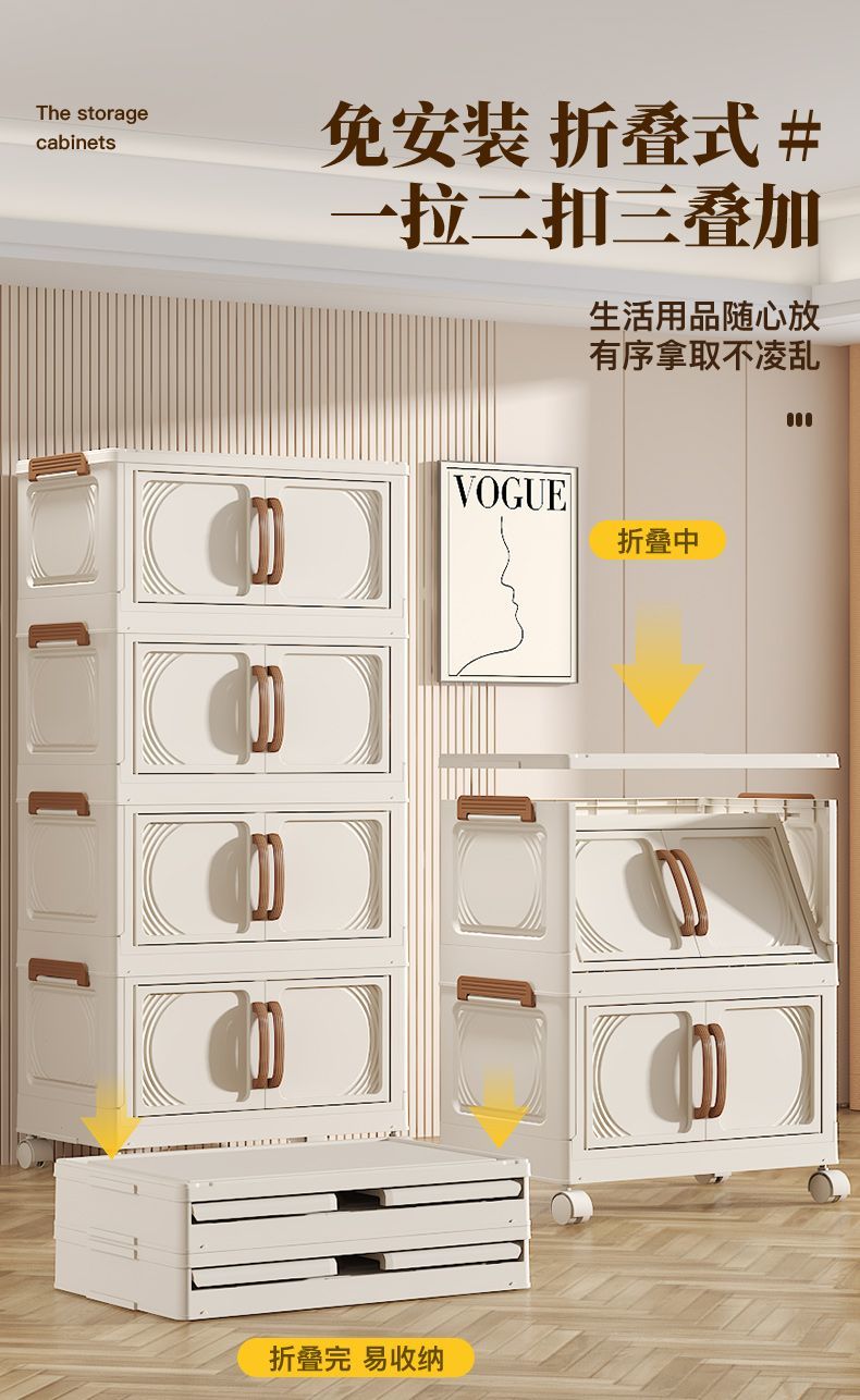 磁吸耐用折叠柜房间家用开门式多层大容量客厅厨房玩具杂物收纳架