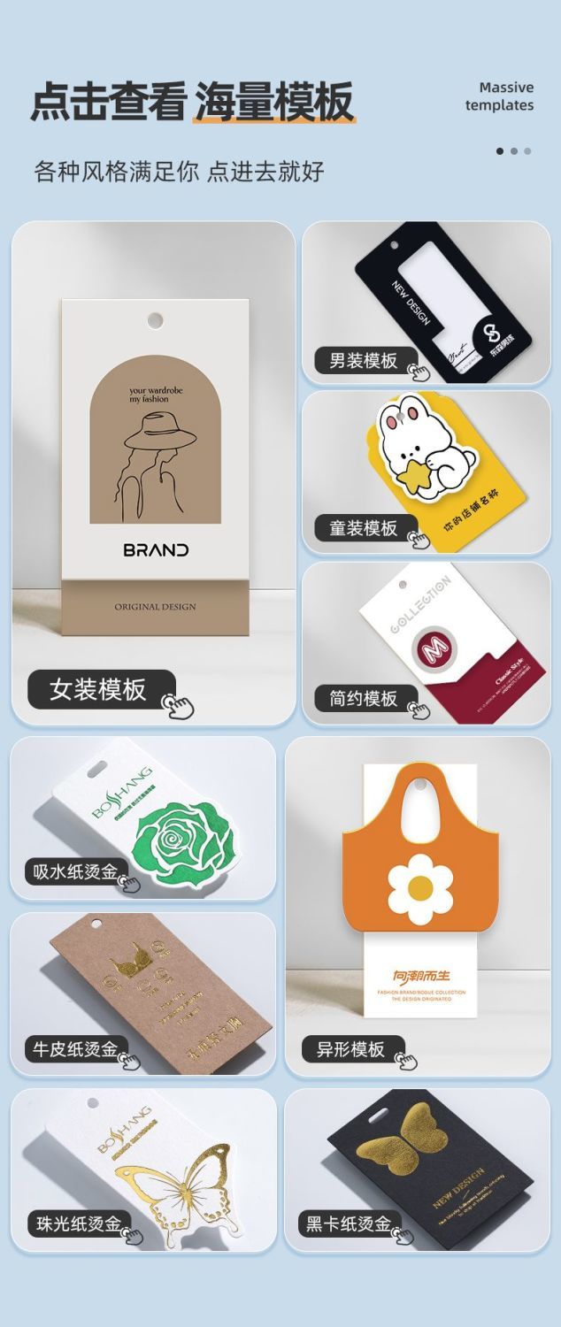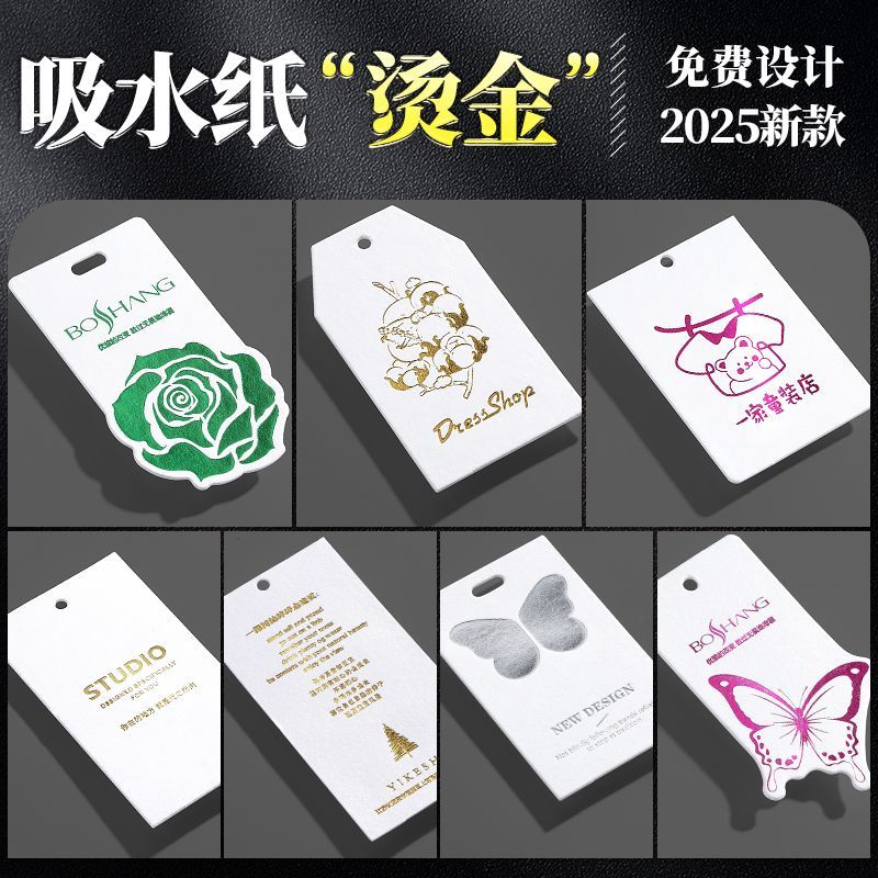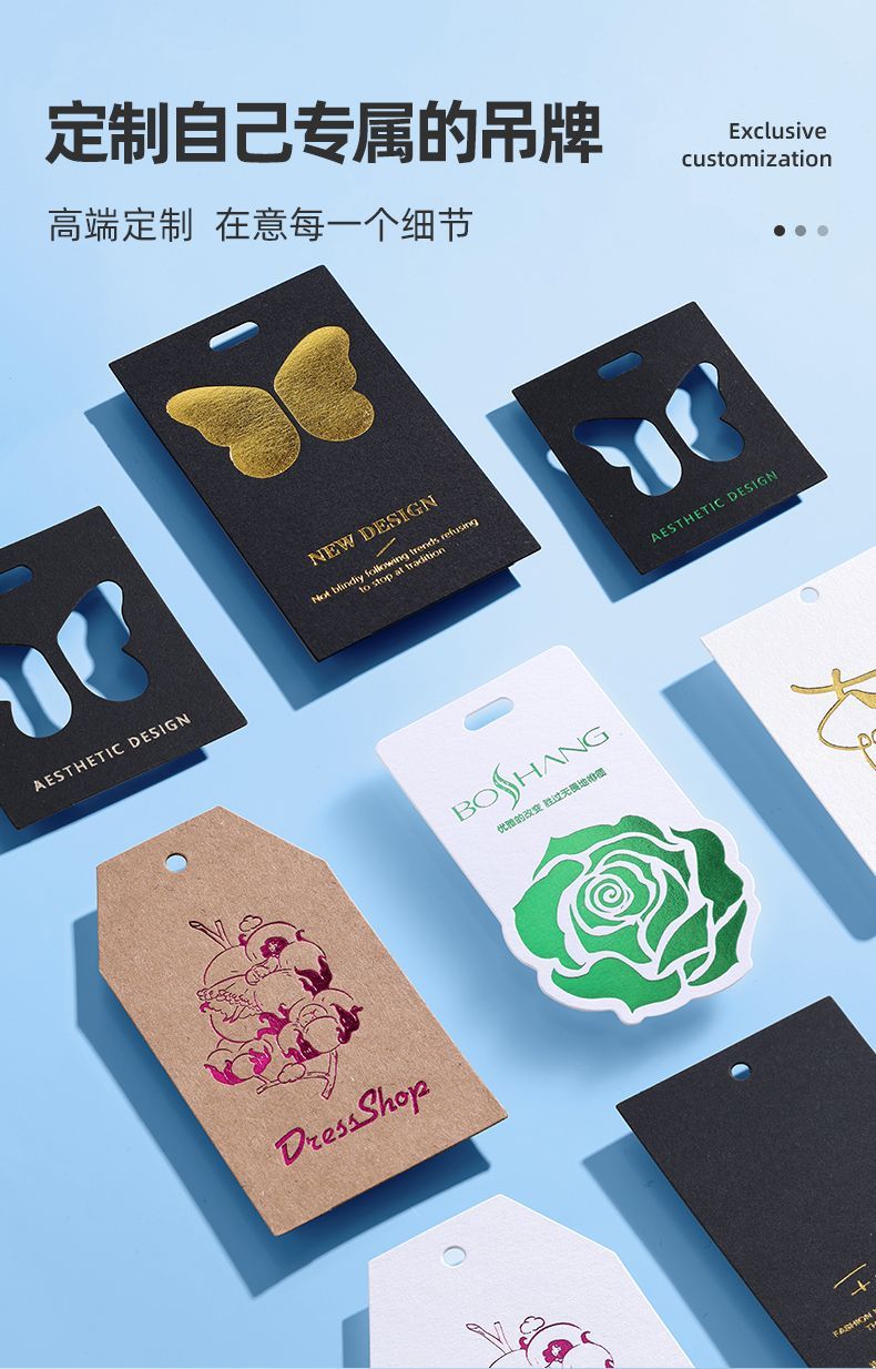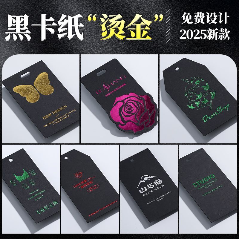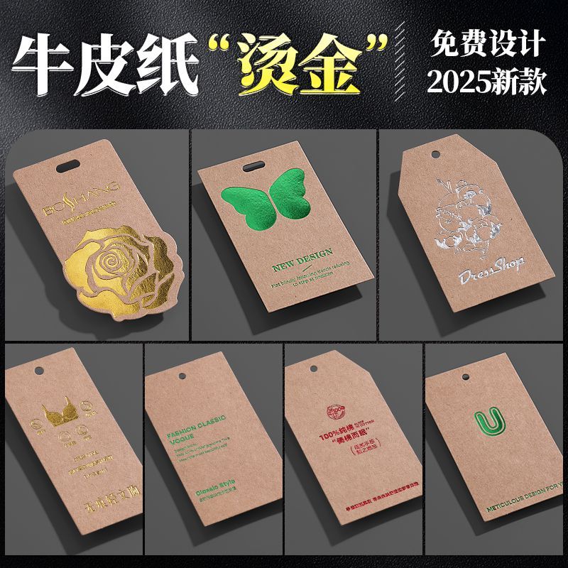 高档服装吊牌定制 衣服logo标签PVC软胶烫金凹凸包装盒定通用卡片