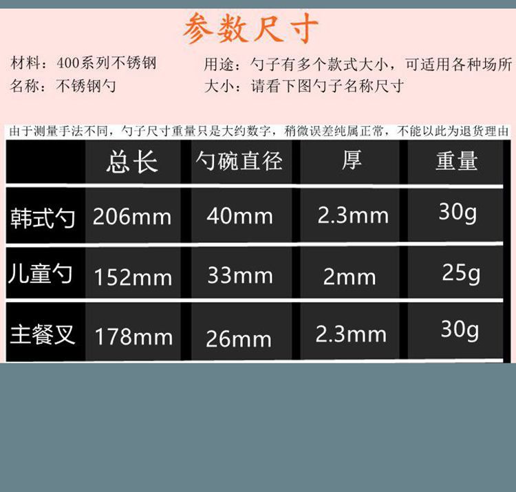 | 4 korean spoon +2 children spoon(4韩式勺+2儿童勺) | USD $1.92 | 999999 piece available |