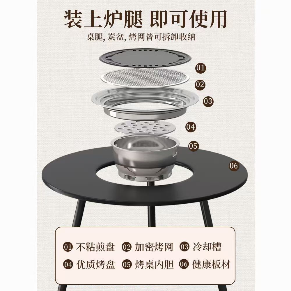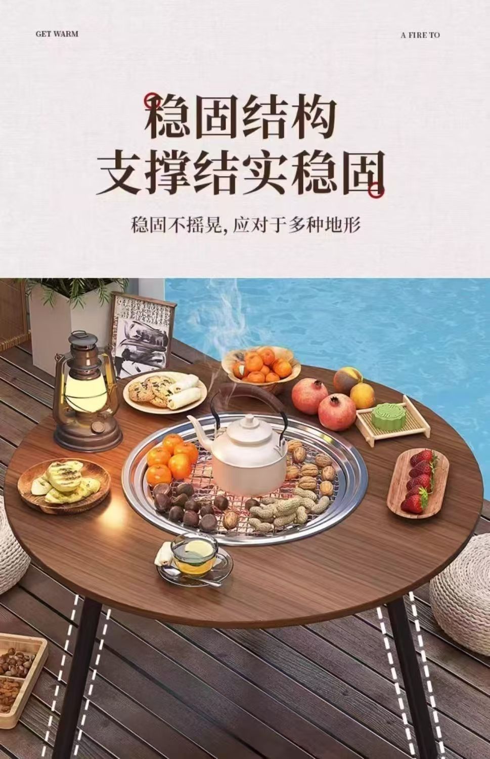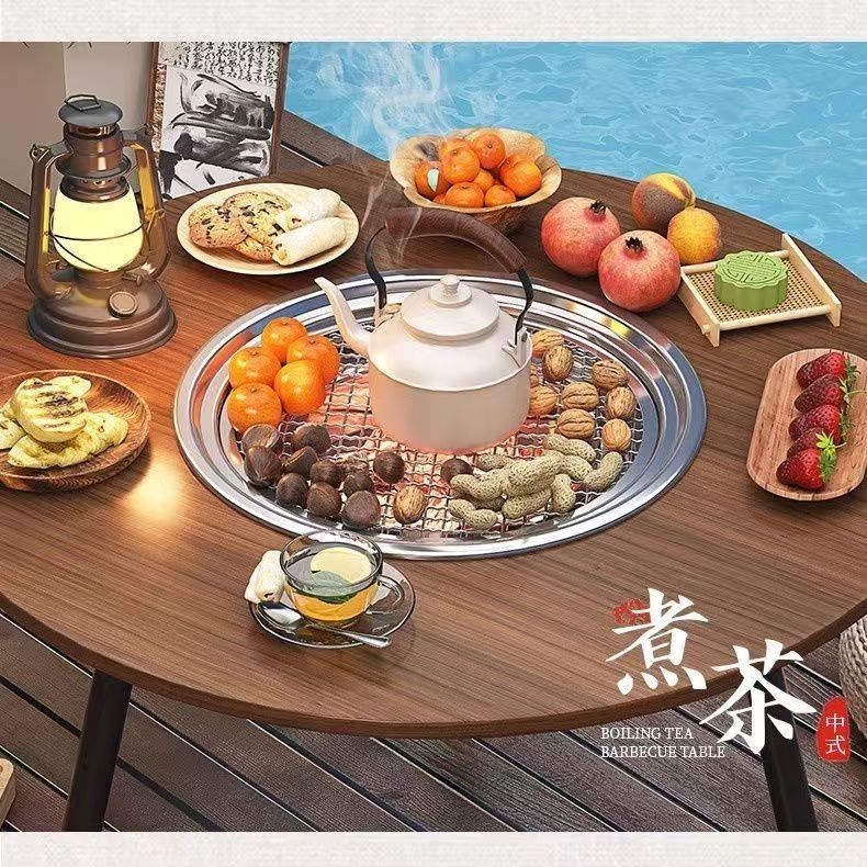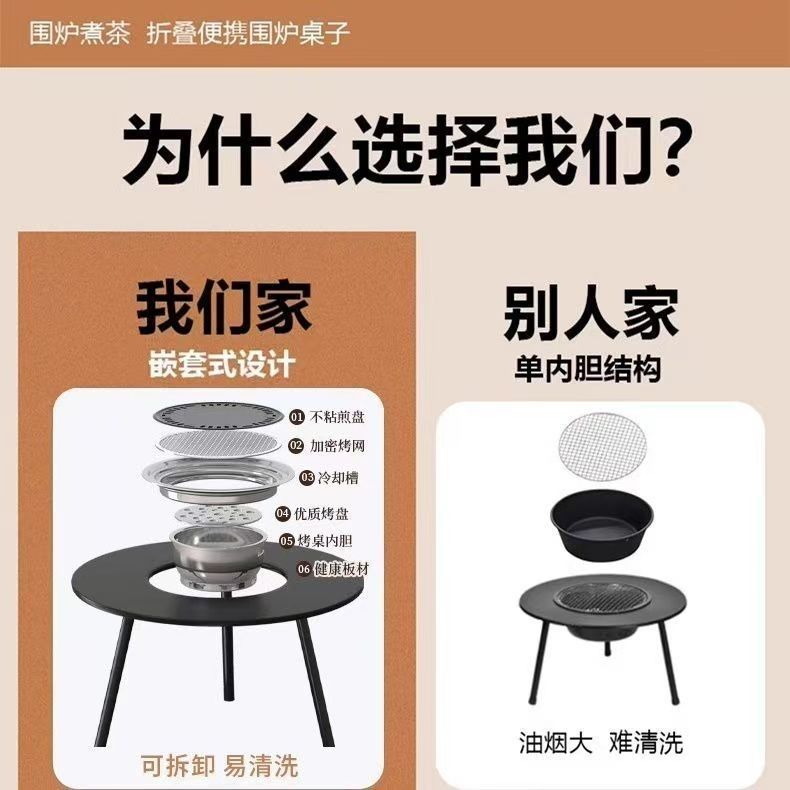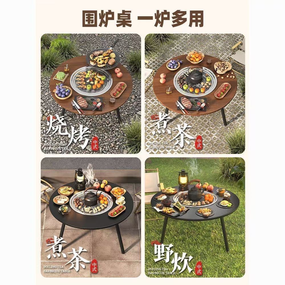 户外烧烤烧烤炉茶桌家用无烟便携折叠木炭烤肉野外庭院围炉煮茶