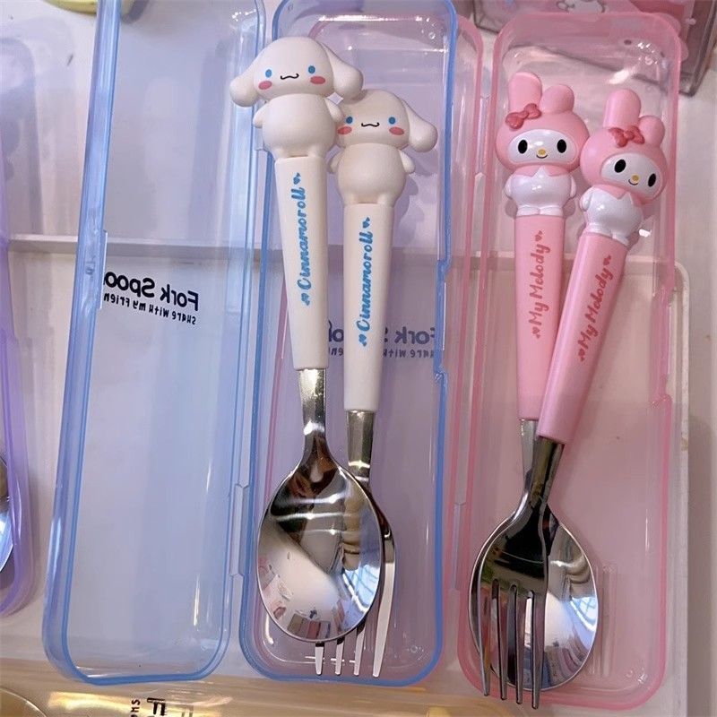 可爱造型不锈钢库洛米大耳狗勺叉子学生上班族带饭独立餐具收纳盒