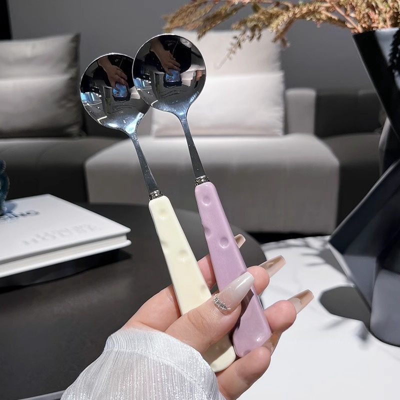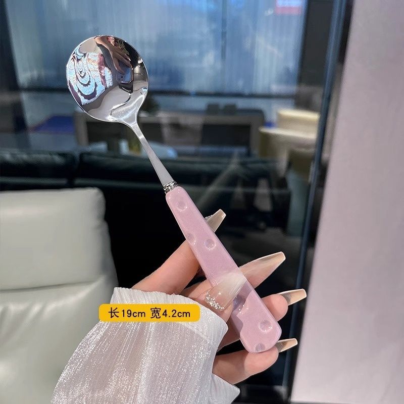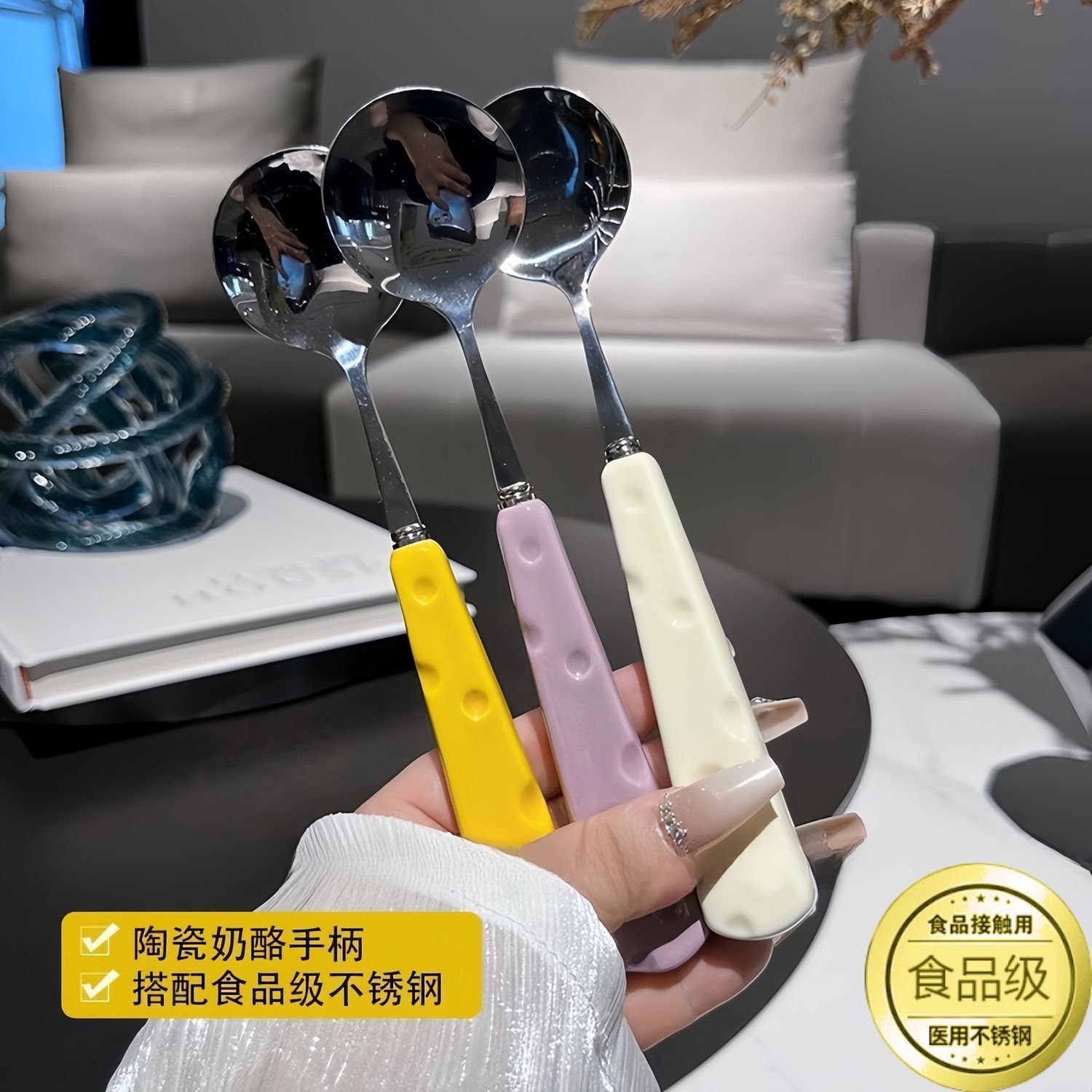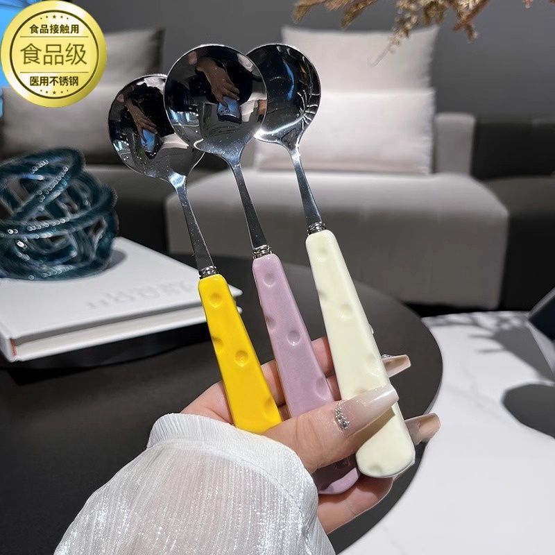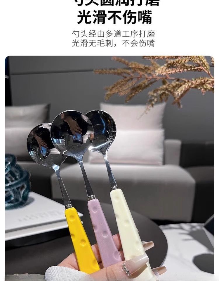 儿童高端精致304不锈钢甜品雪糕圆勺奶酪长柄家用儿童汤勺饭勺