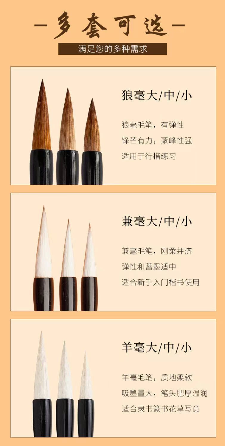 | sheep hair-moyun three large, medium and small + [featured set]]](羊毫-墨韵大中小三支+【精选套装】) | USD $5.76 | 999999 piece available |