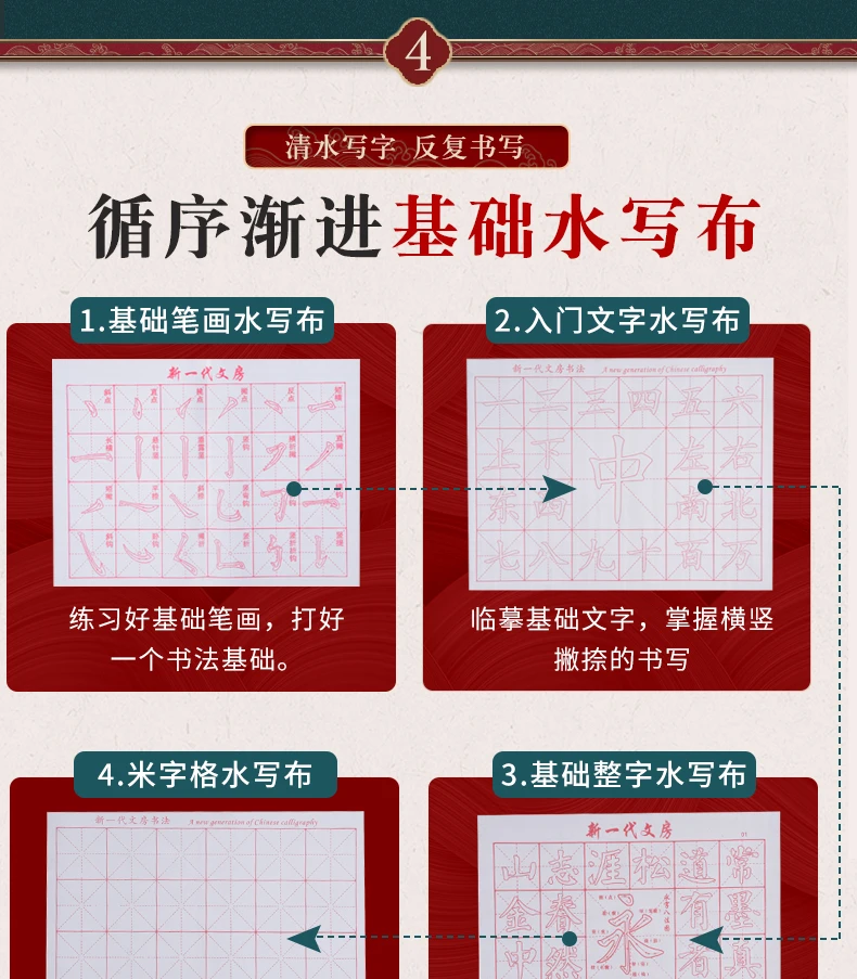 文房四宝全套小学生书法初学者毛笔套装字帖墨汁笔墨纸砚水写布