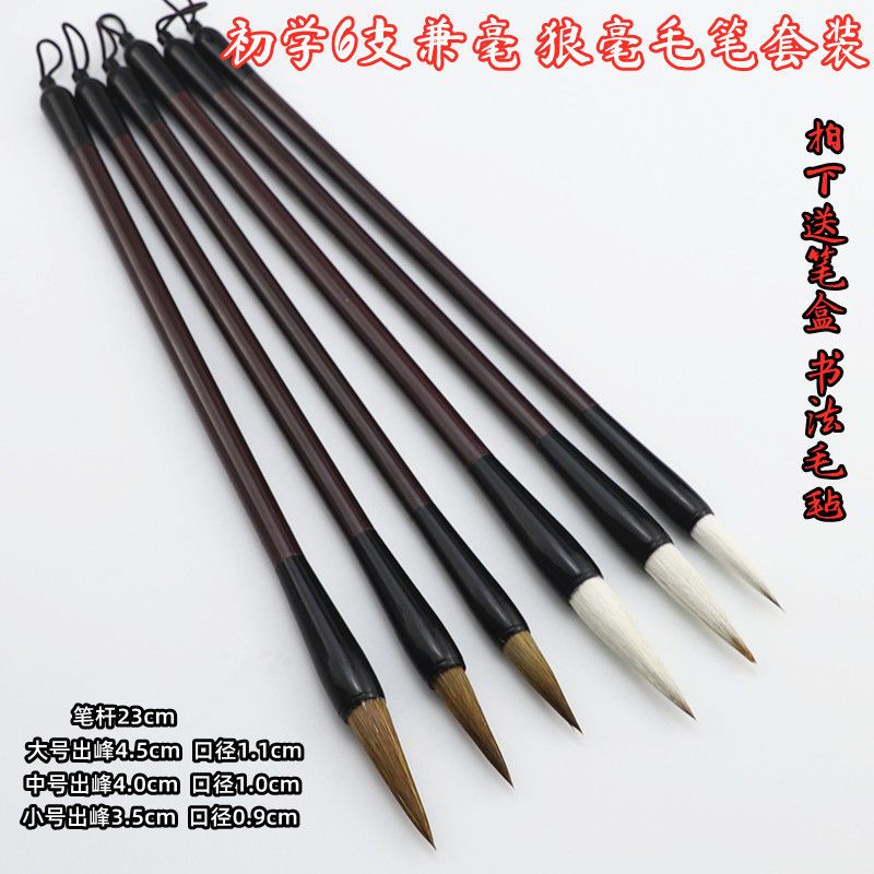 | 6 pieces mixed hair writing brush weasel's hair with pencil box kit free felt(6支兼毫 狼毫 带笔盒套装 送毛毡) | USD $3.23 | 999999 piece available |