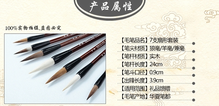 | 7 pieces writing brush set free felt(7支毛笔套装 送毛毡) | USD $7.25 | 999999 piece available |