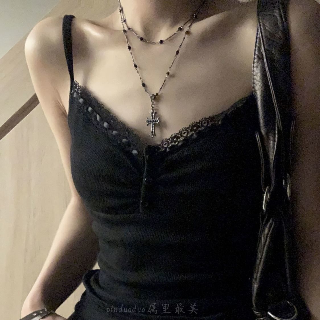黑色十字架choker女长款叠戴y2k项链女高级感锁骨链辣妹甜酷颈链