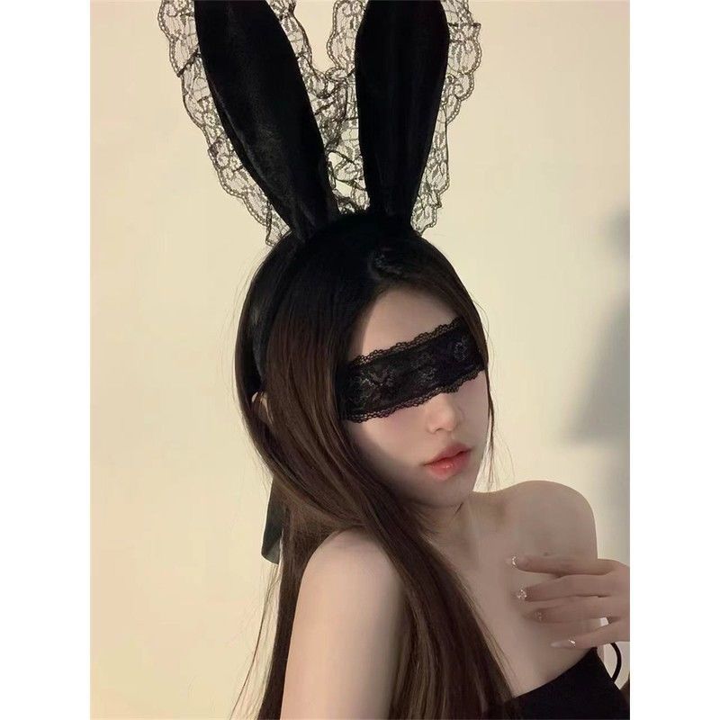 兔耳朵纯欲发箍禁欲系蕾丝边兔女郎头箍性感网红主播情侣配饰眼罩