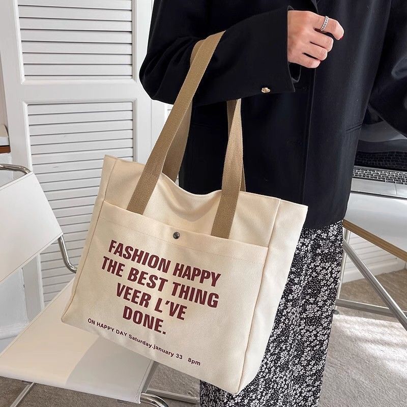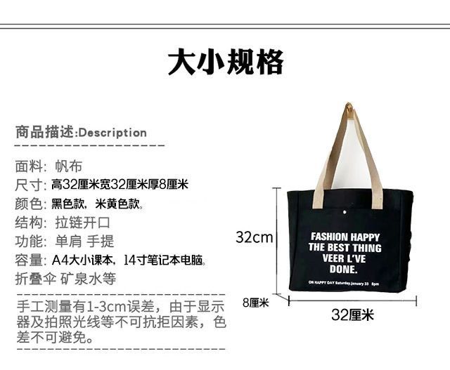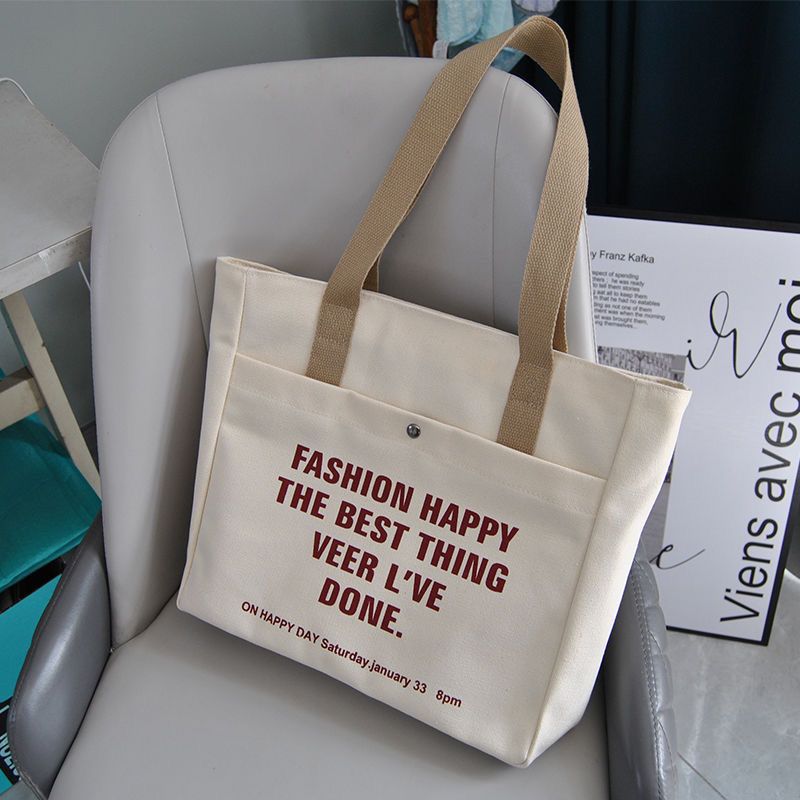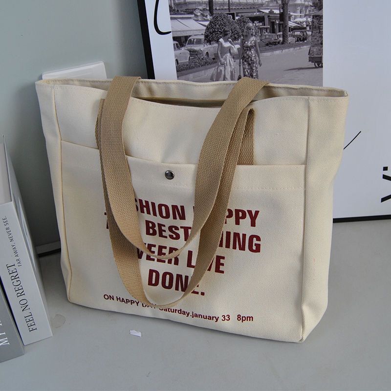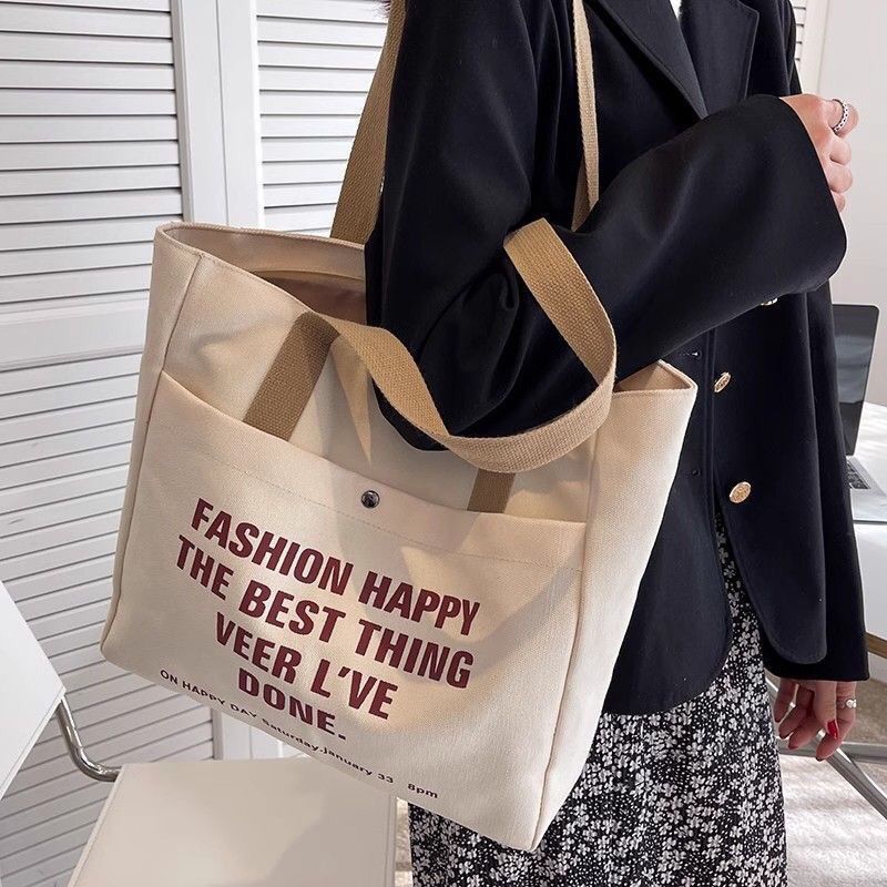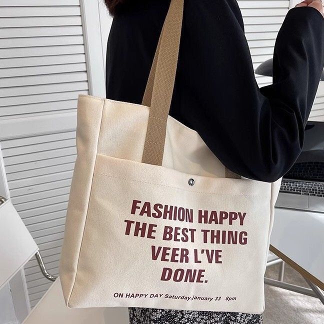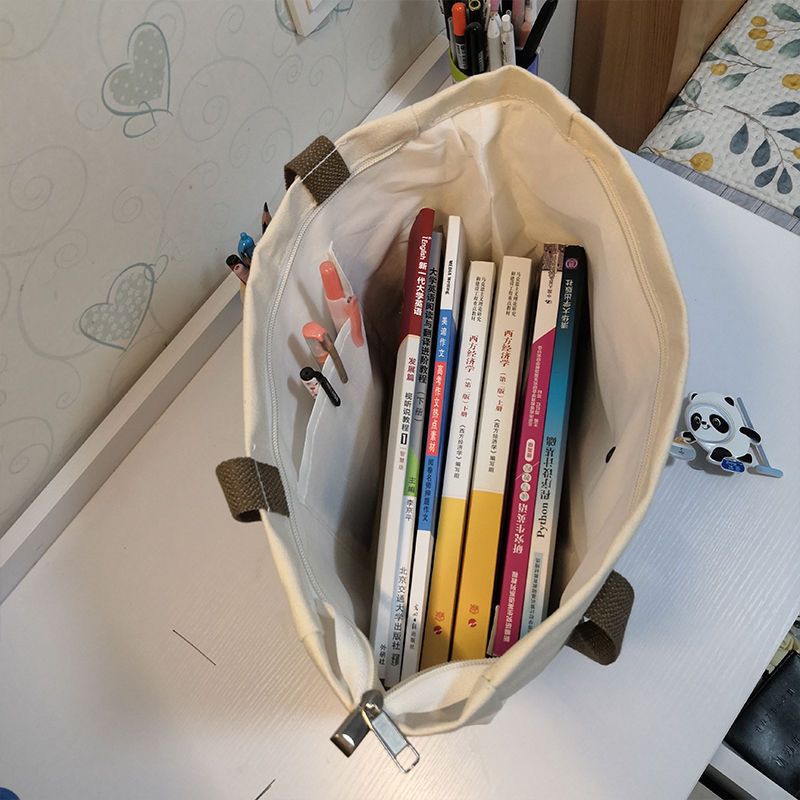 2024新款单肩帆布包托特韩版手提百搭学生上课通勤大容量补习