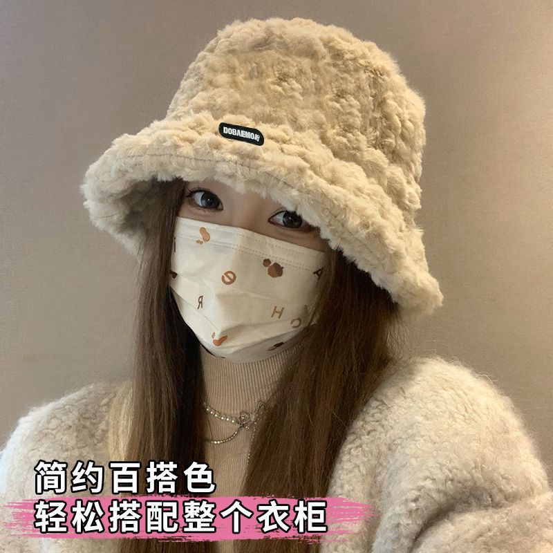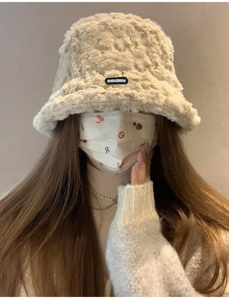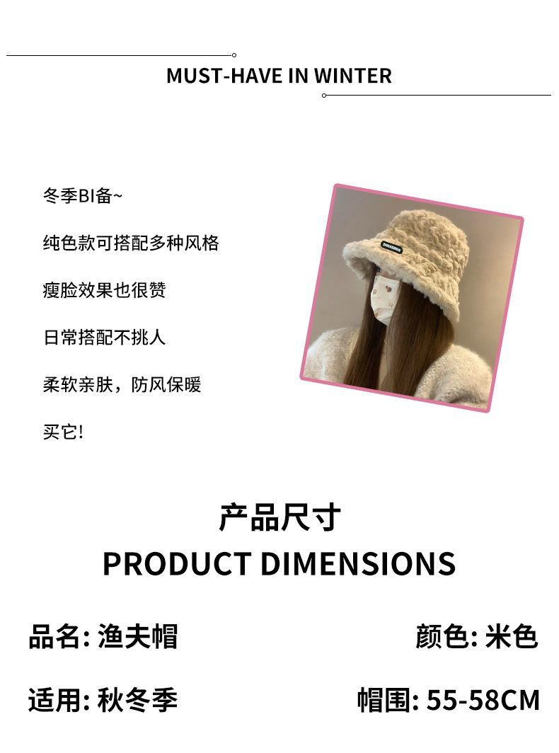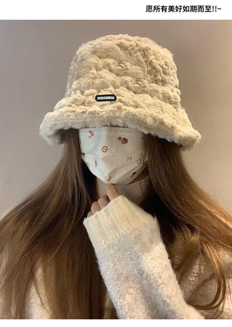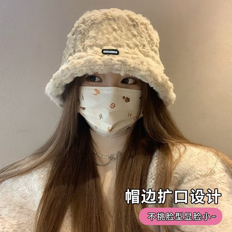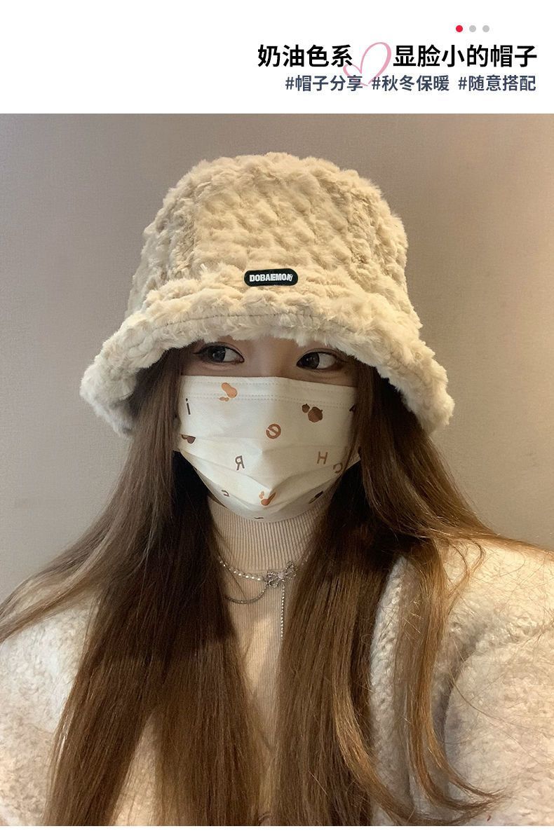 2024新款帽子女秋冬季加绒保暖毛绒绒渔夫帽大头围显脸小韩版盆帽