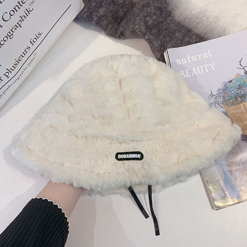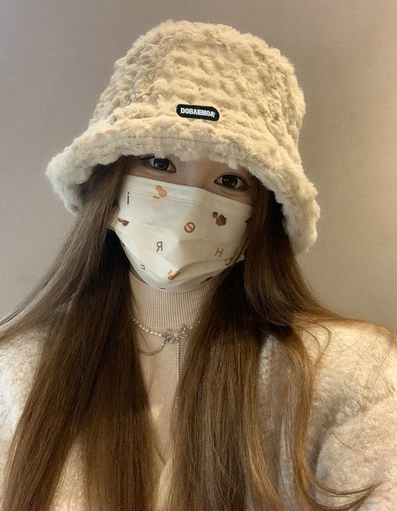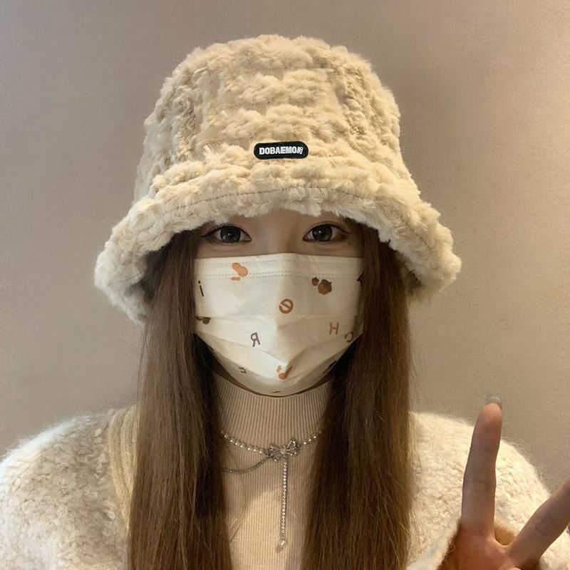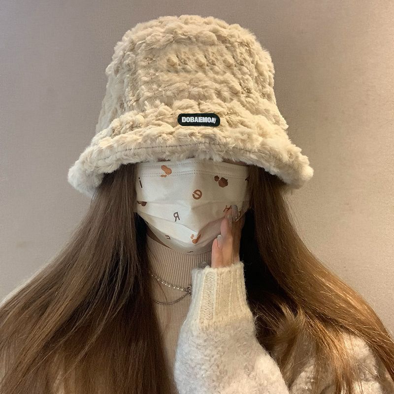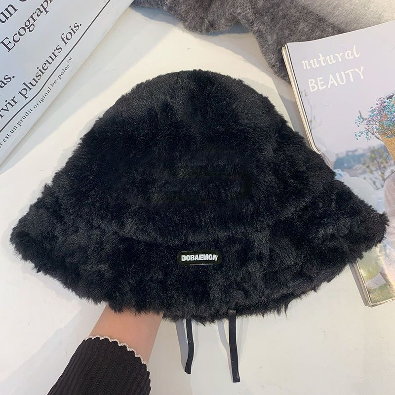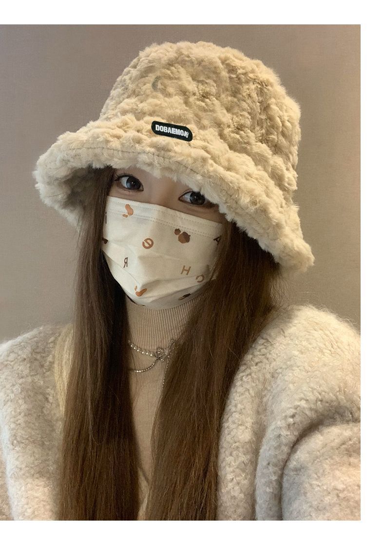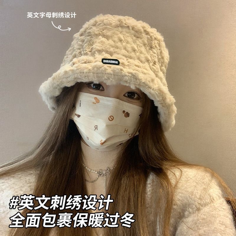 2024新款帽子女秋冬季加绒保暖毛绒绒渔夫帽大头围显脸小韩版盆帽