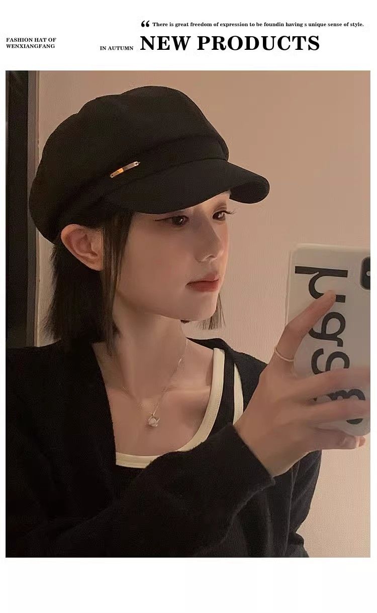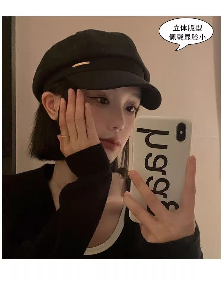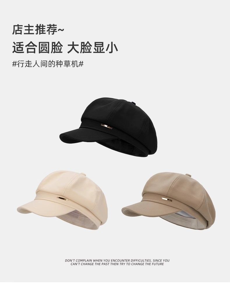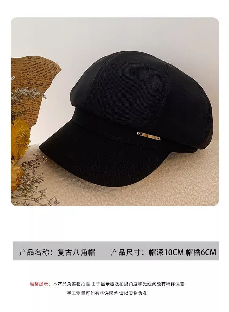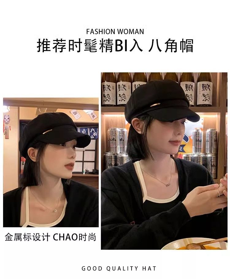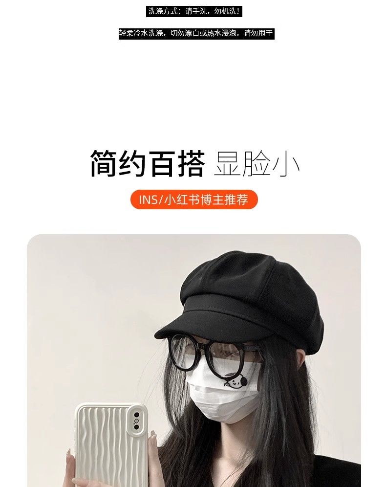 大头围黑色八角帽子女画家帽英伦复古新款显脸小鸭舌报童贝雷帽潮