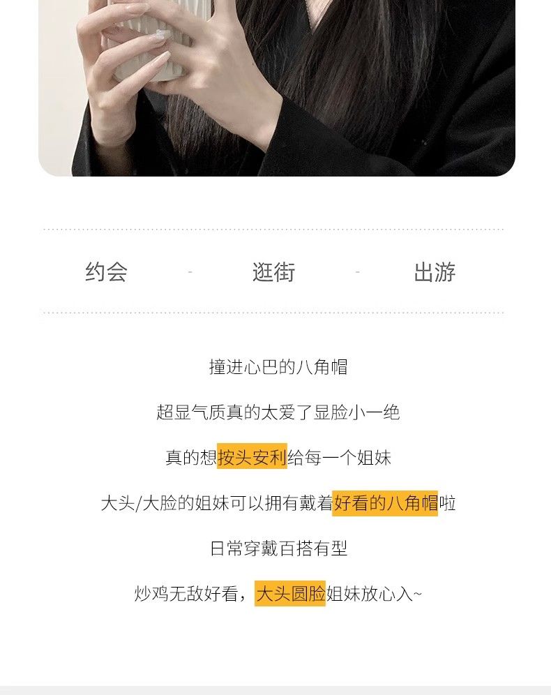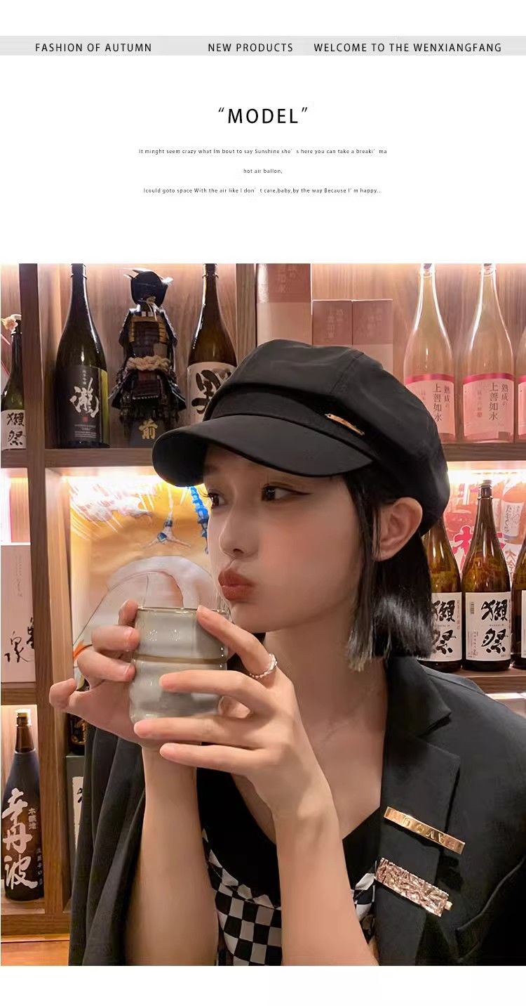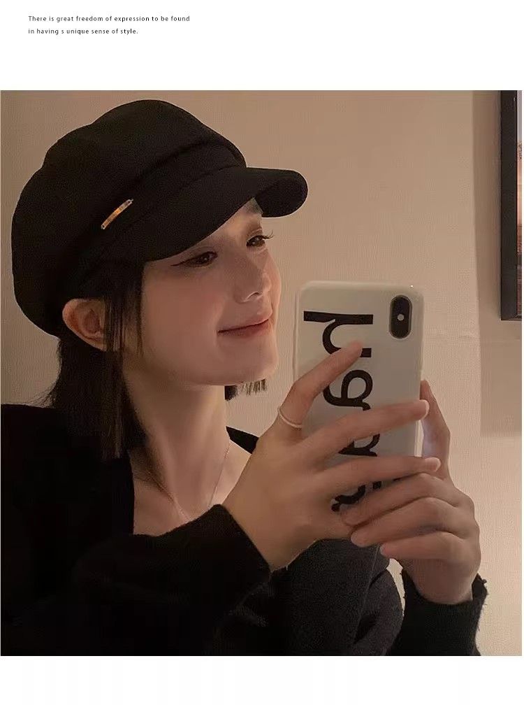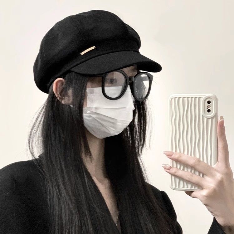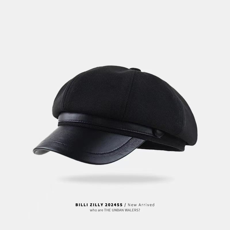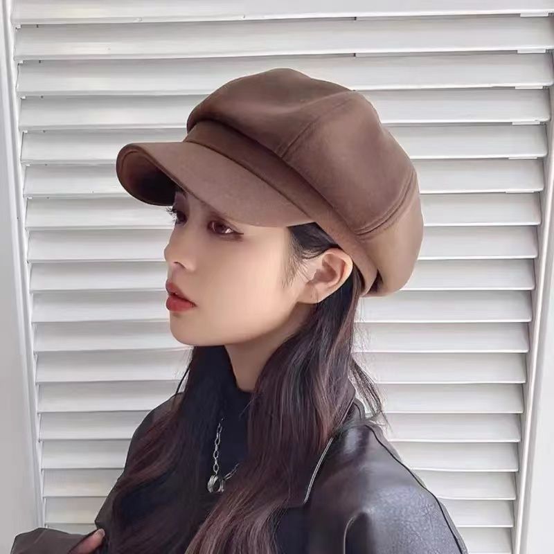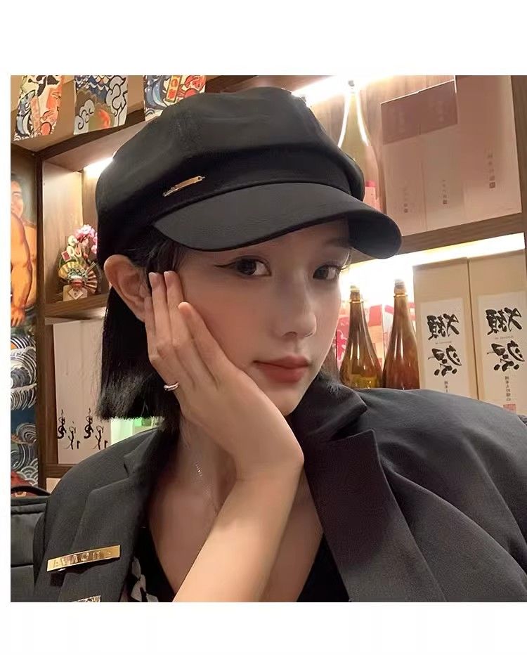 大头围黑色八角帽子女画家帽英伦复古新款显脸小鸭舌报童贝雷帽潮