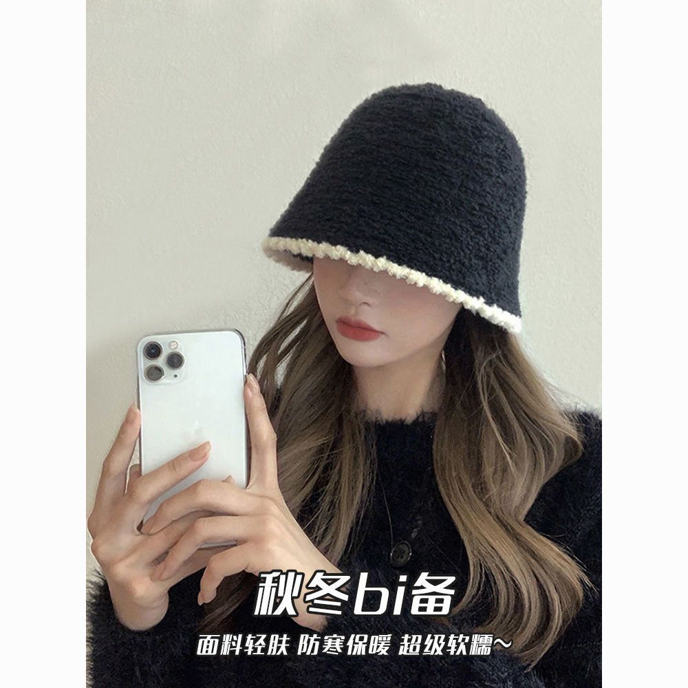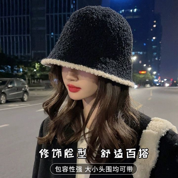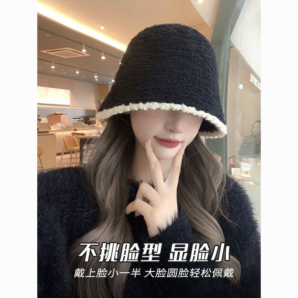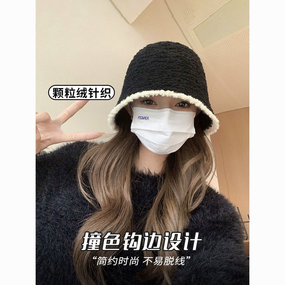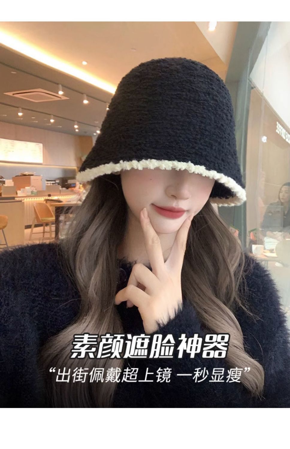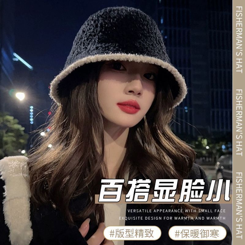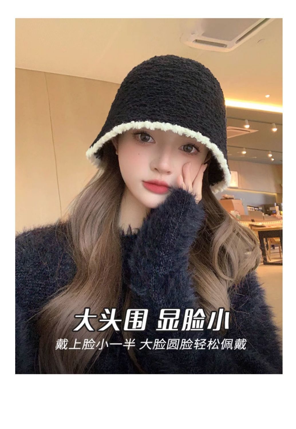 秋冬季渔夫帽子女秋冬季百搭保暖显脸小针织帽毛绒盆帽大头水桶帽