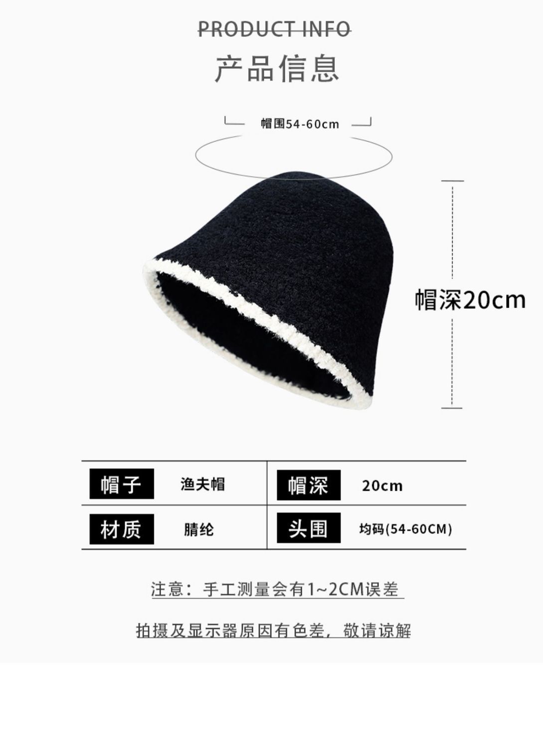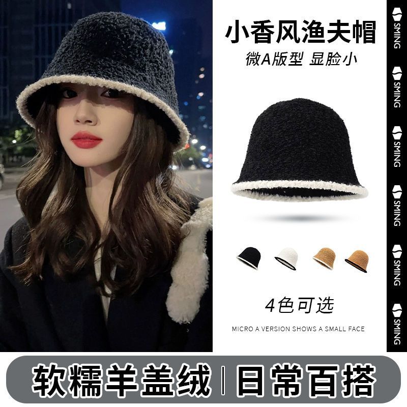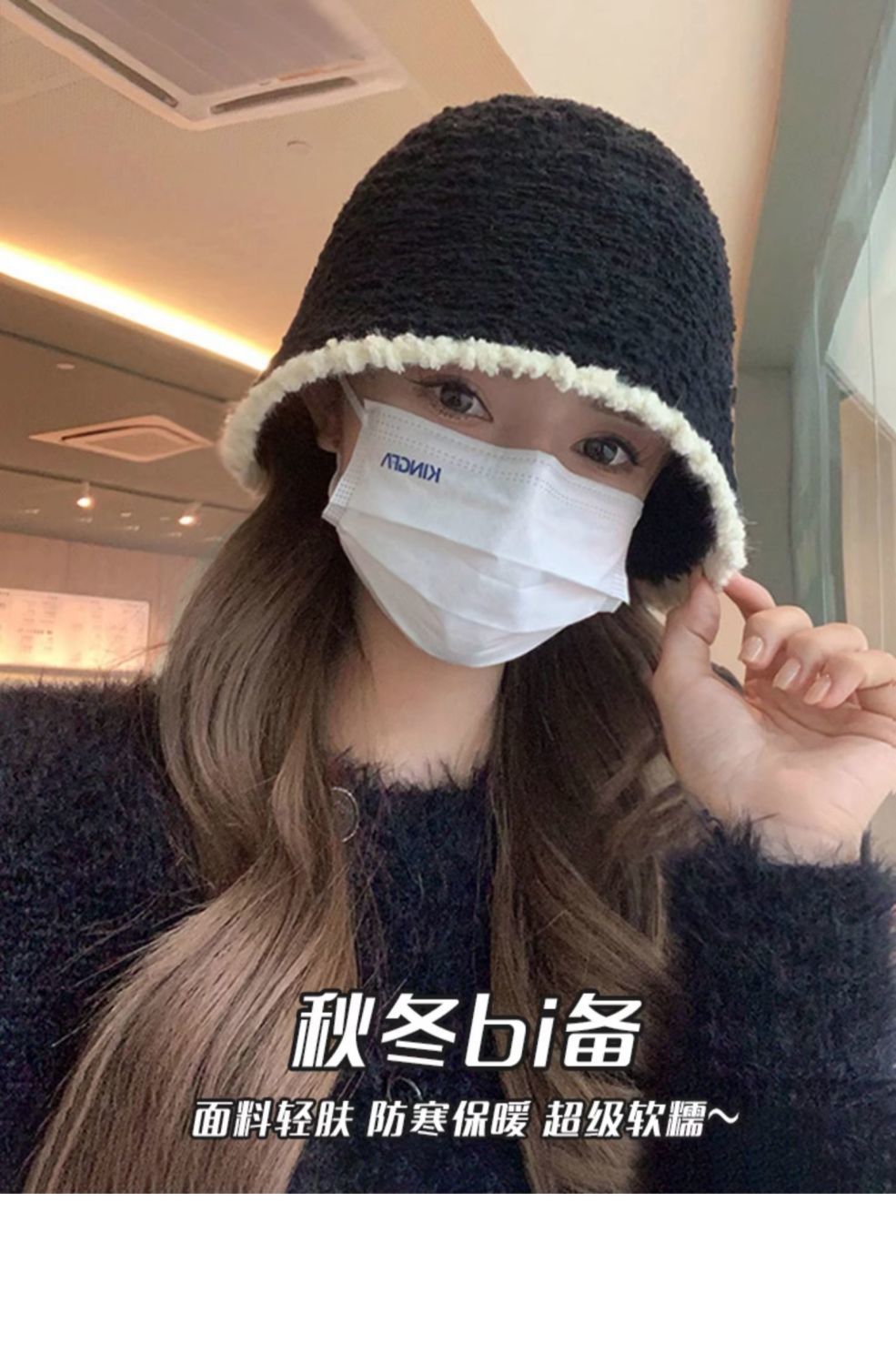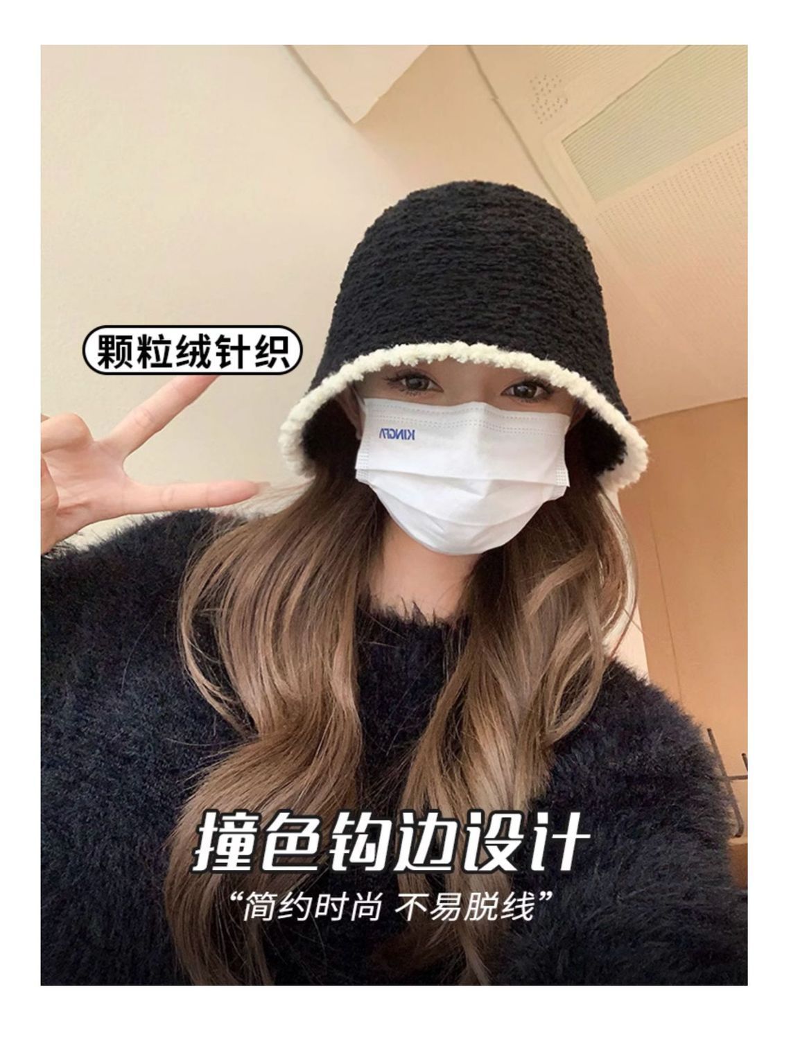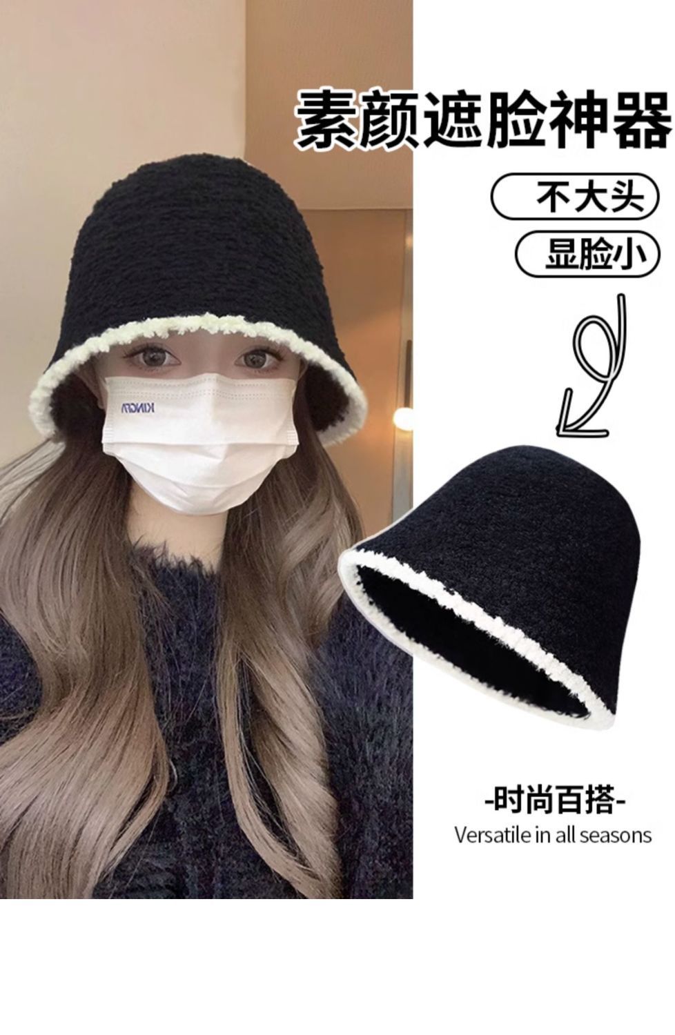 秋冬季渔夫帽子女秋冬季百搭保暖显脸小针织帽毛绒盆帽大头水桶帽