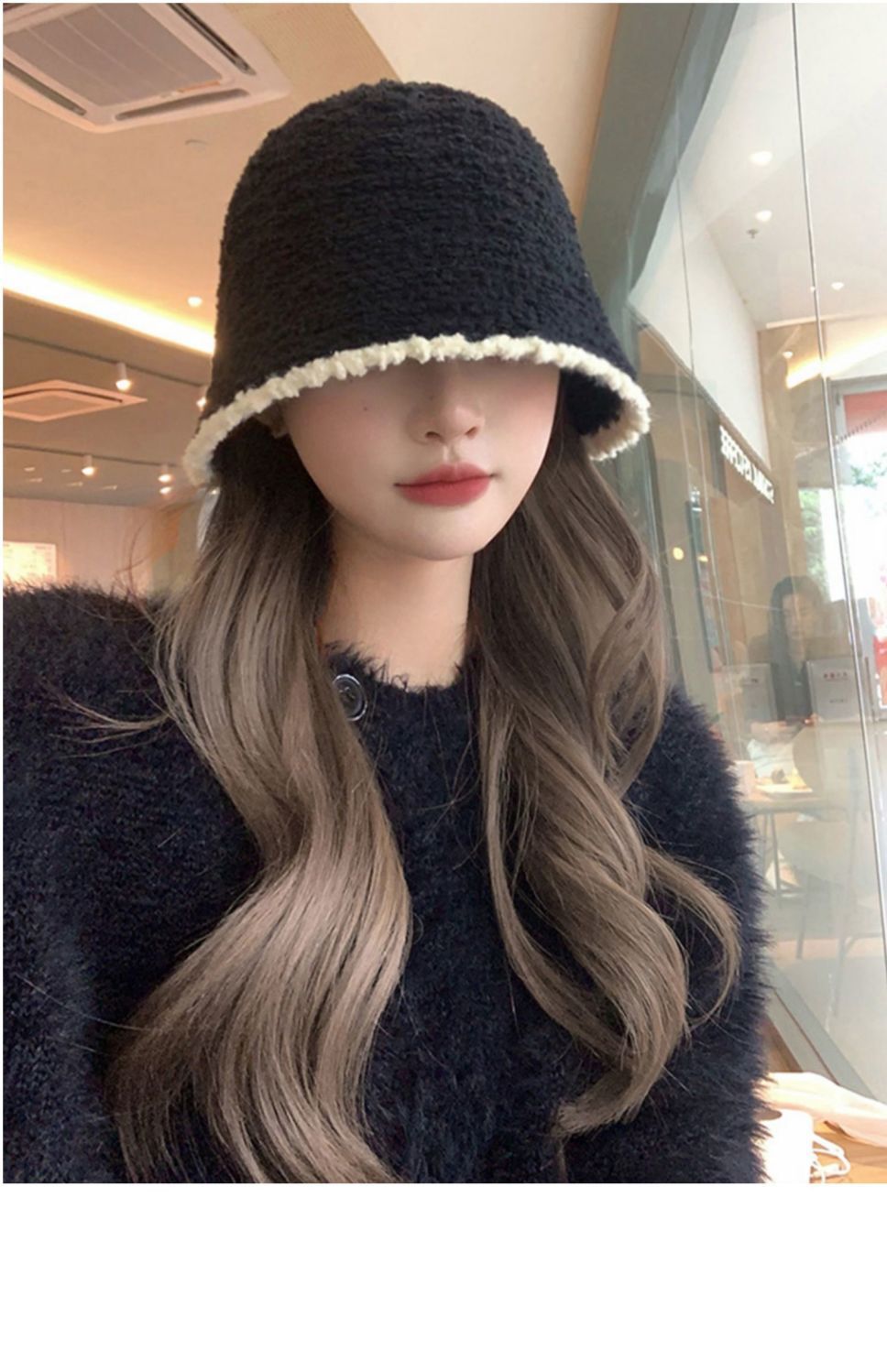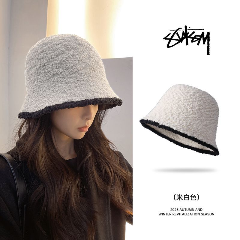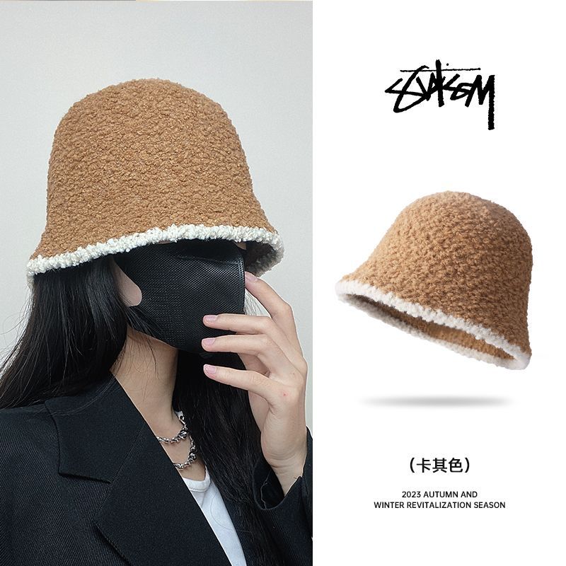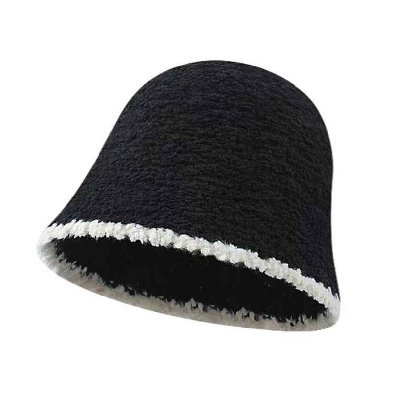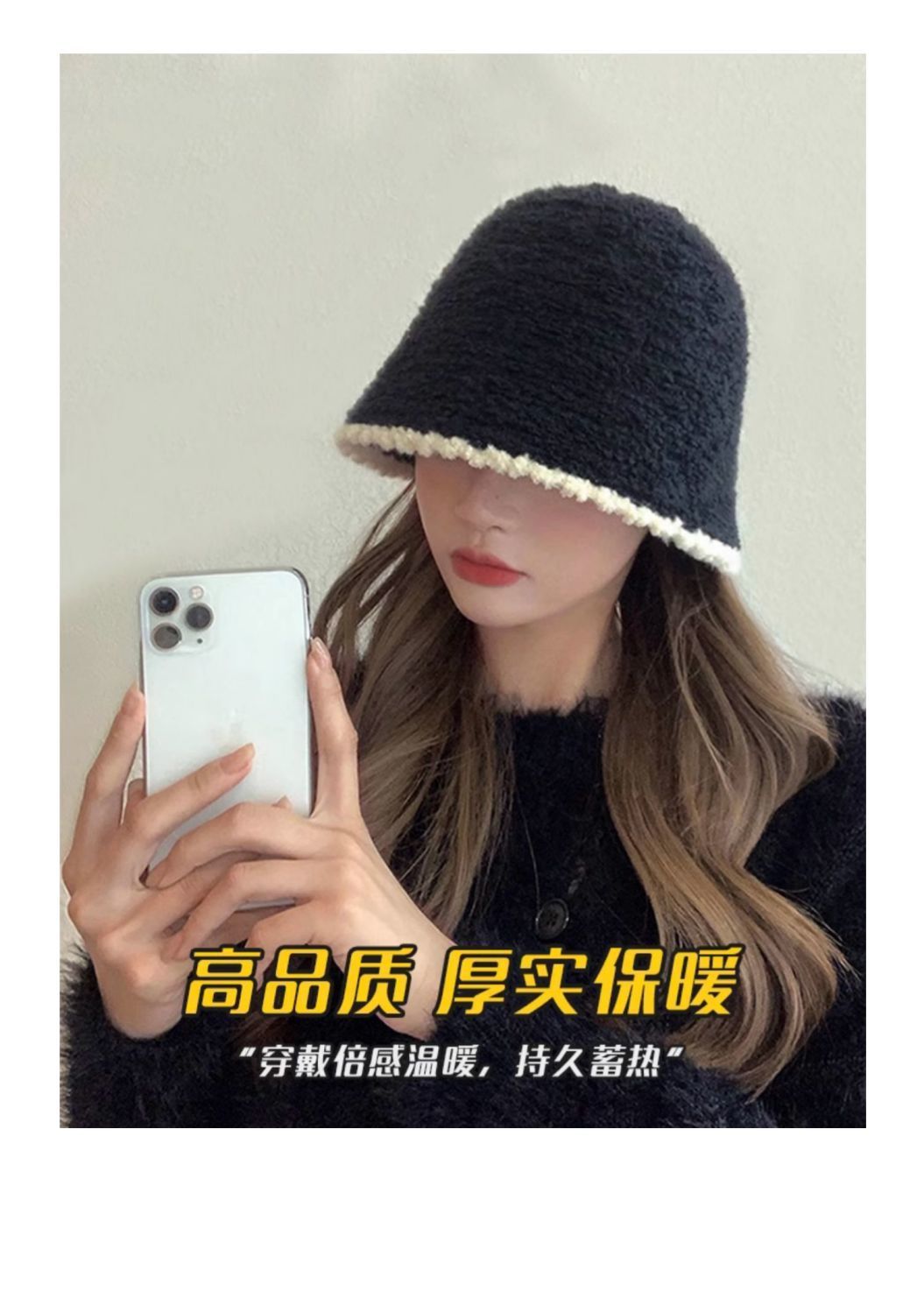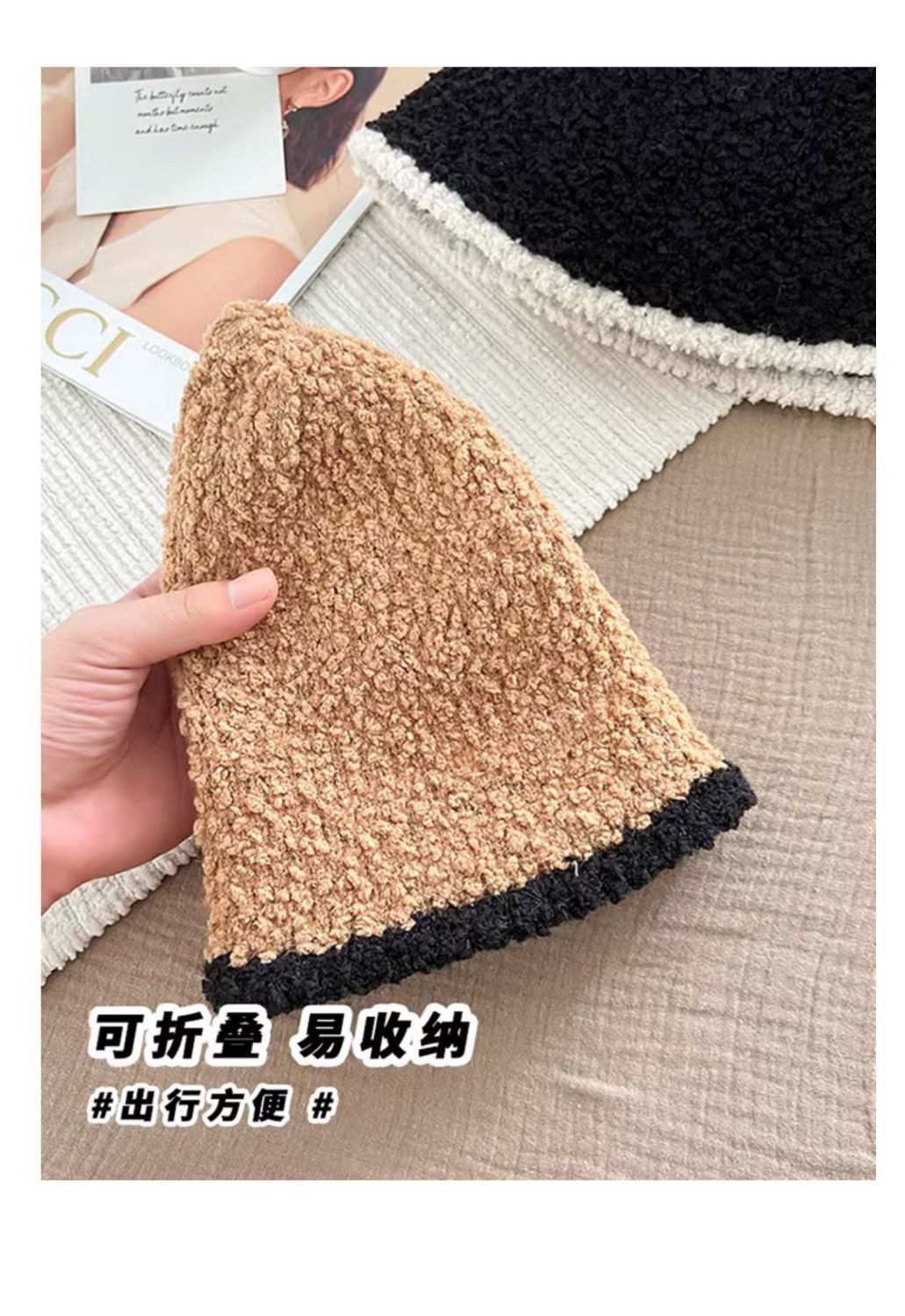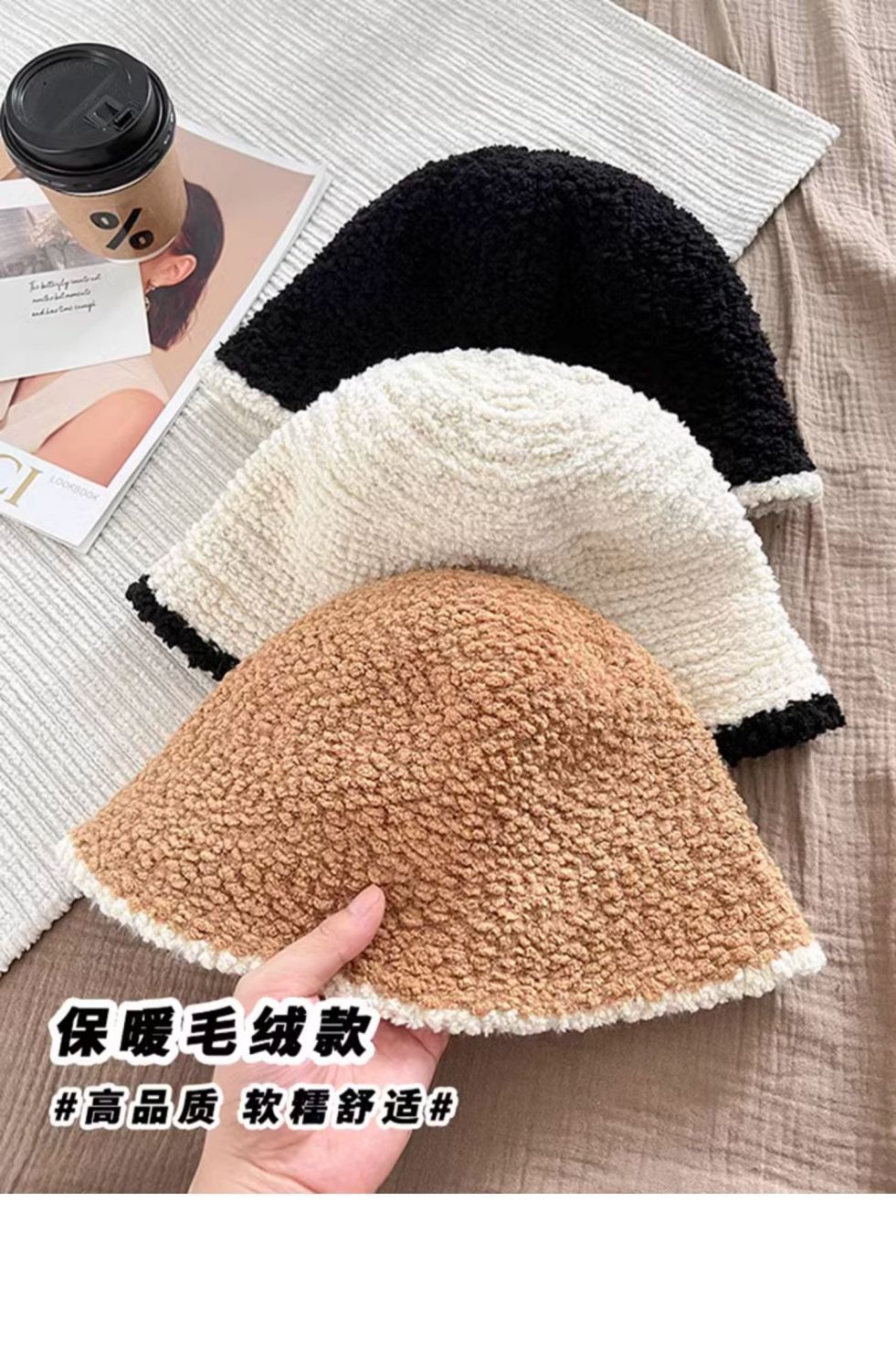 秋冬季渔夫帽子女秋冬季百搭保暖显脸小针织帽毛绒盆帽大头水桶帽