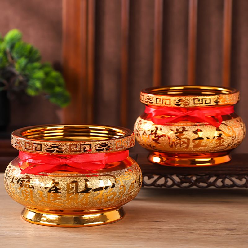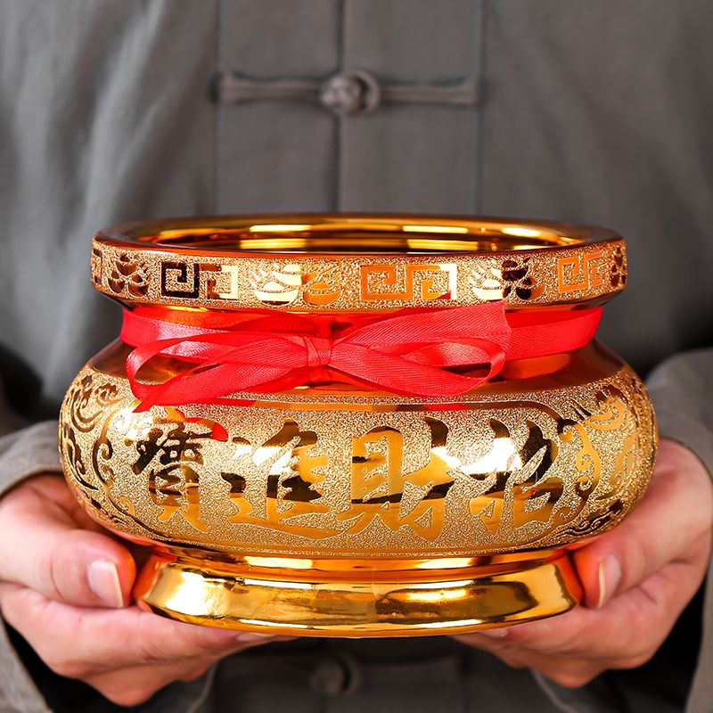 香炉家用供奉陶瓷烧香炉室内财神桌面摆件用品家庭插香沙金小香碗