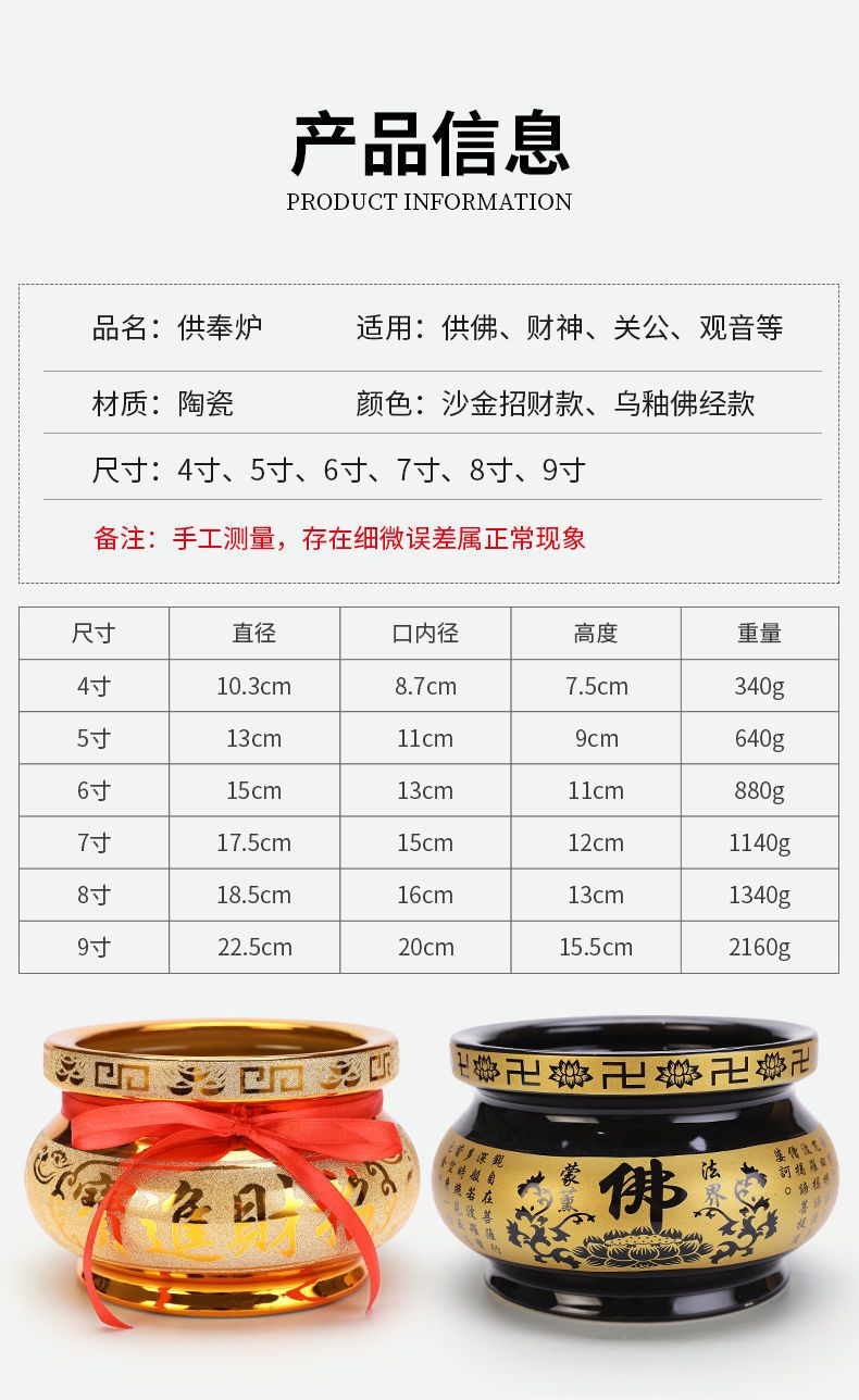 | [recommend pack] 6-inch incense burner +6 packs of golden sand(【推荐装】六寸香炉+6包金沙) | USD $6.53 | 999999 piece available |