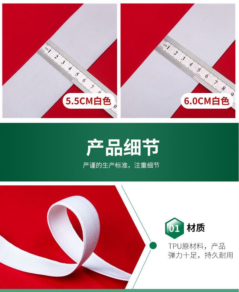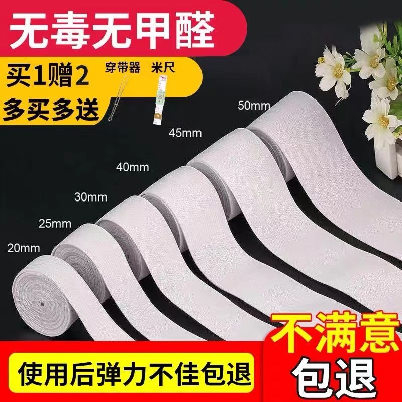【高弹】加厚松紧带高弹力耐用宽细橡皮筋扁服装裤腰裤子专用白色