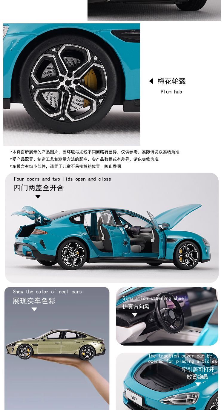 1/24小米su7合金车模优质版海湾蓝仿真合金汽车模型摆件男孩礼物