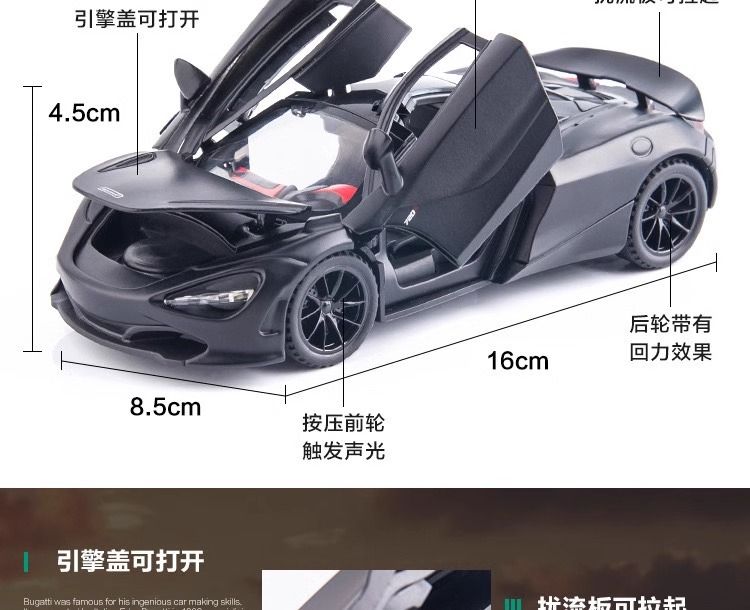 迈凯仑720S超跑尾翼可升降合金车模男孩玩具摆件仿真汽车模型
